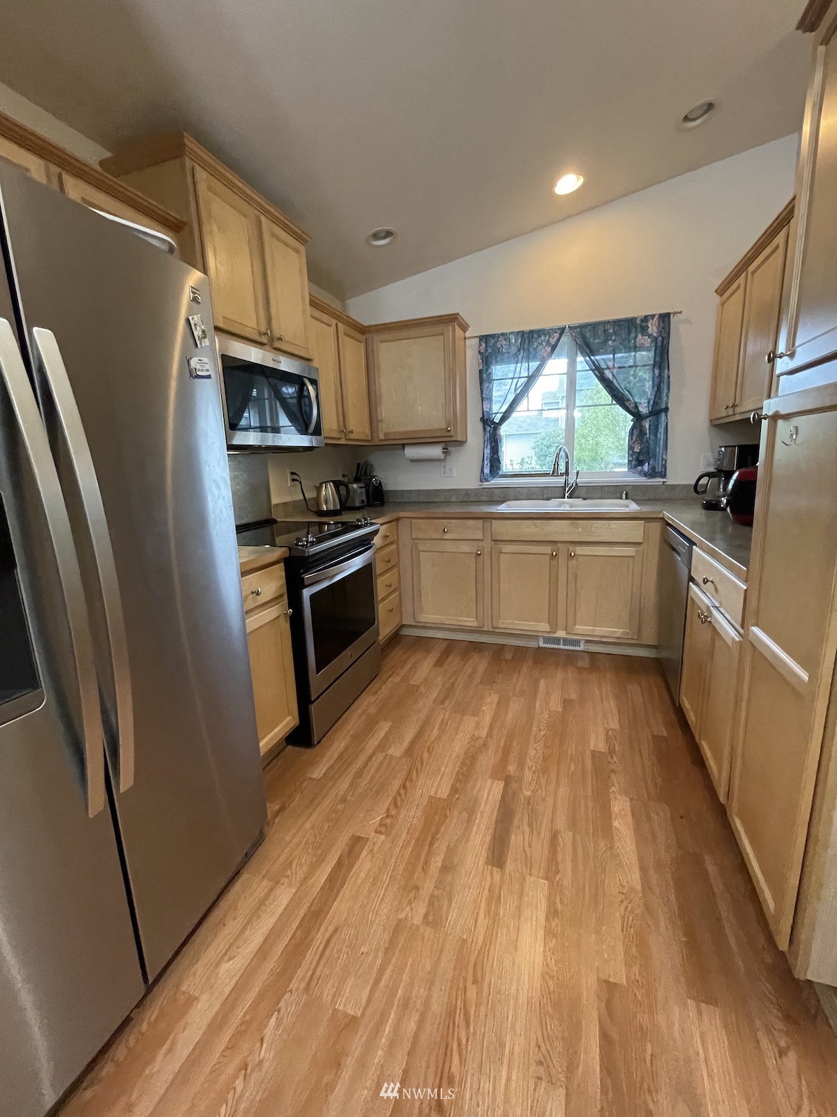 Beautiful 3-bedroom Rambler, Spacious layout to entire house, Walk into large living room with vaulted ceiling, Gas fireplace, Primary bedroom with walk-in closet and 5 piece bathroom set, low maintenance yard, entertaining deck to backyard, Close to shopping and JBLM, MUST SEE!!!