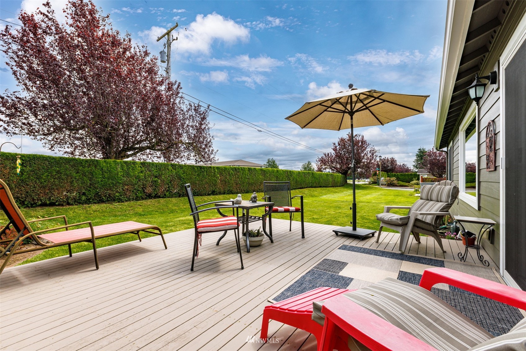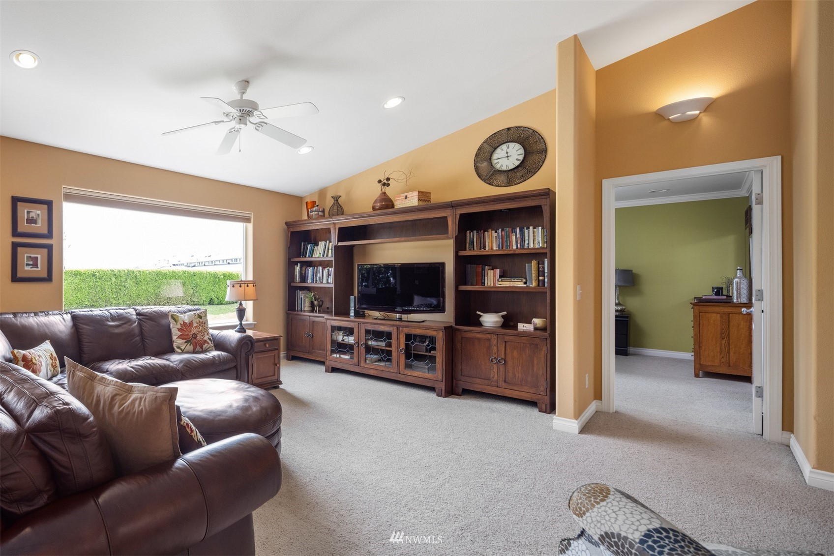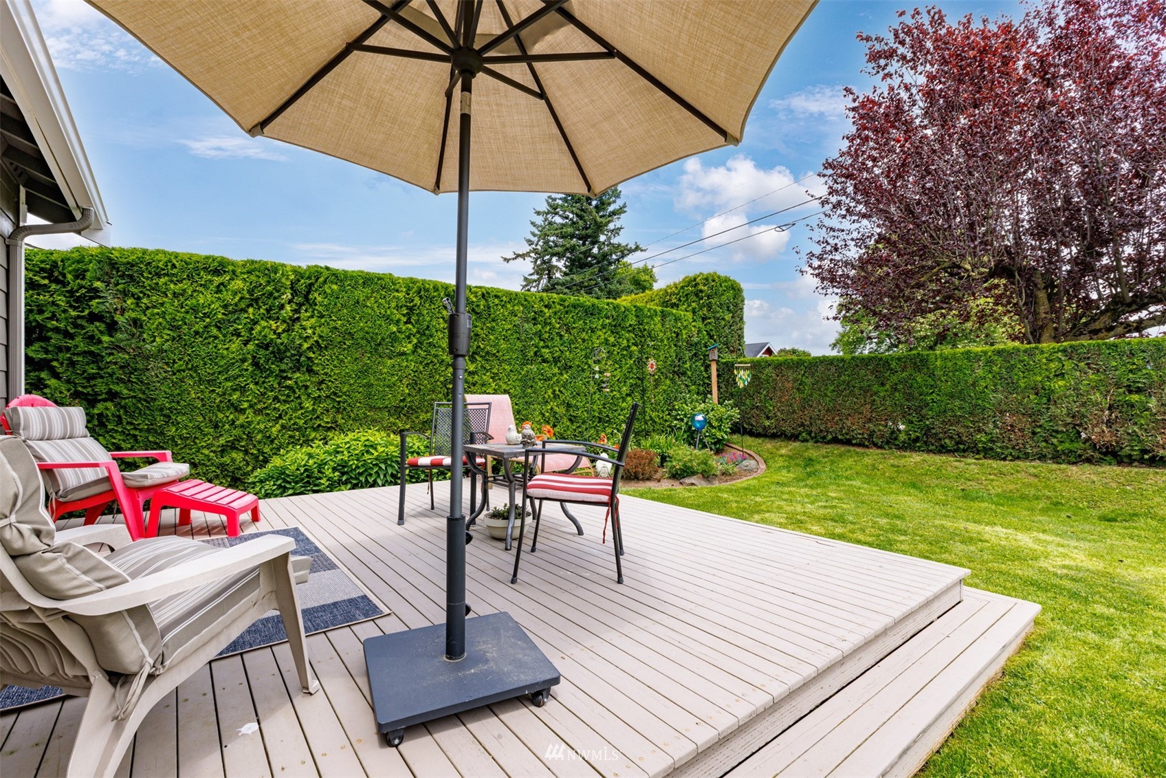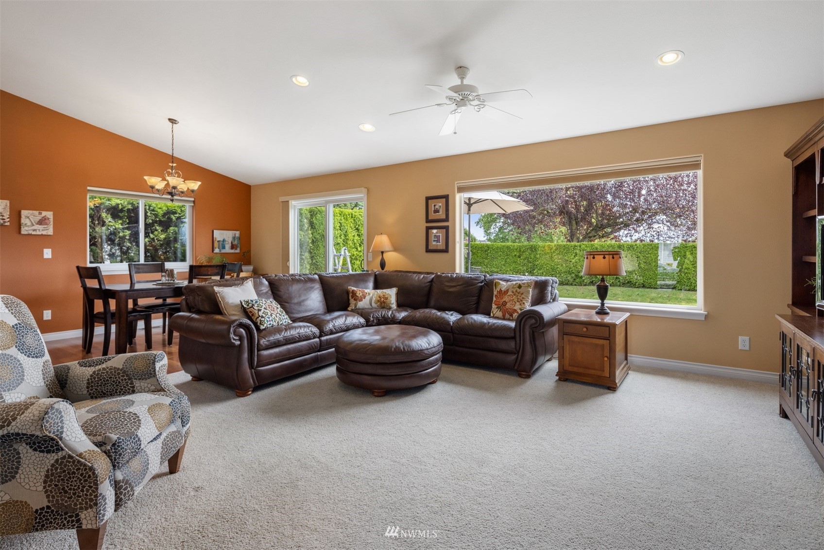 This pristine single level home has an open floor plan with magnificent Mount Baker views, and is on a large level lot with easily maintained landscaping surrounded by a private hedge. The living room is open to the dining and kitchen and has vaulted ceilings and large windows looking out to the views of Mt Baker and the Twin Sisters. The master is very spacious and also takes in those views, while the other two bedrooms are on the opposite side of the home giving privacy. There is an attached, oversized 2 car garage with pull-down stairs and attic storage. The kitchen has a large eating bar and an abundance of cabinets and counter space. This home has been meticulously maintained and there's secured RV parking available in this community.