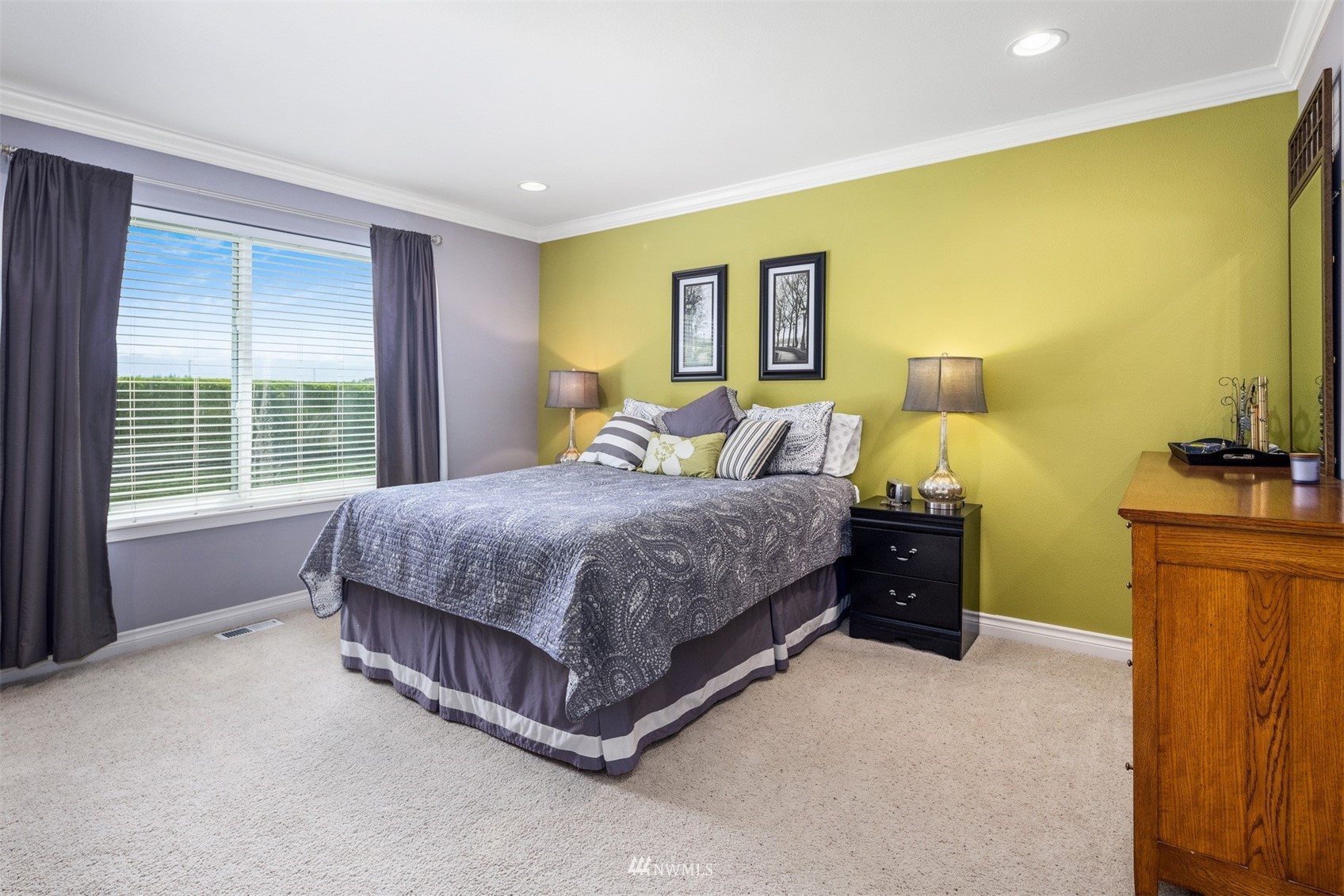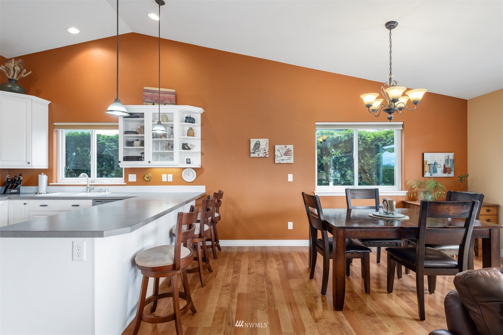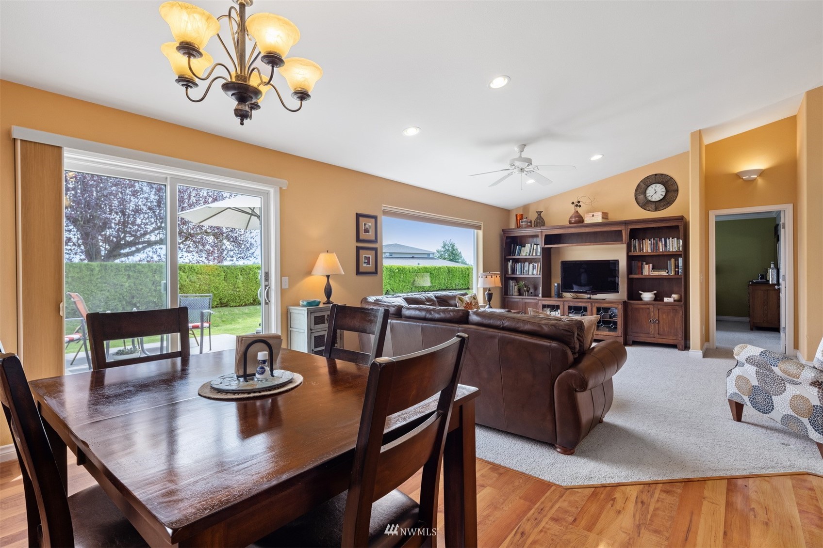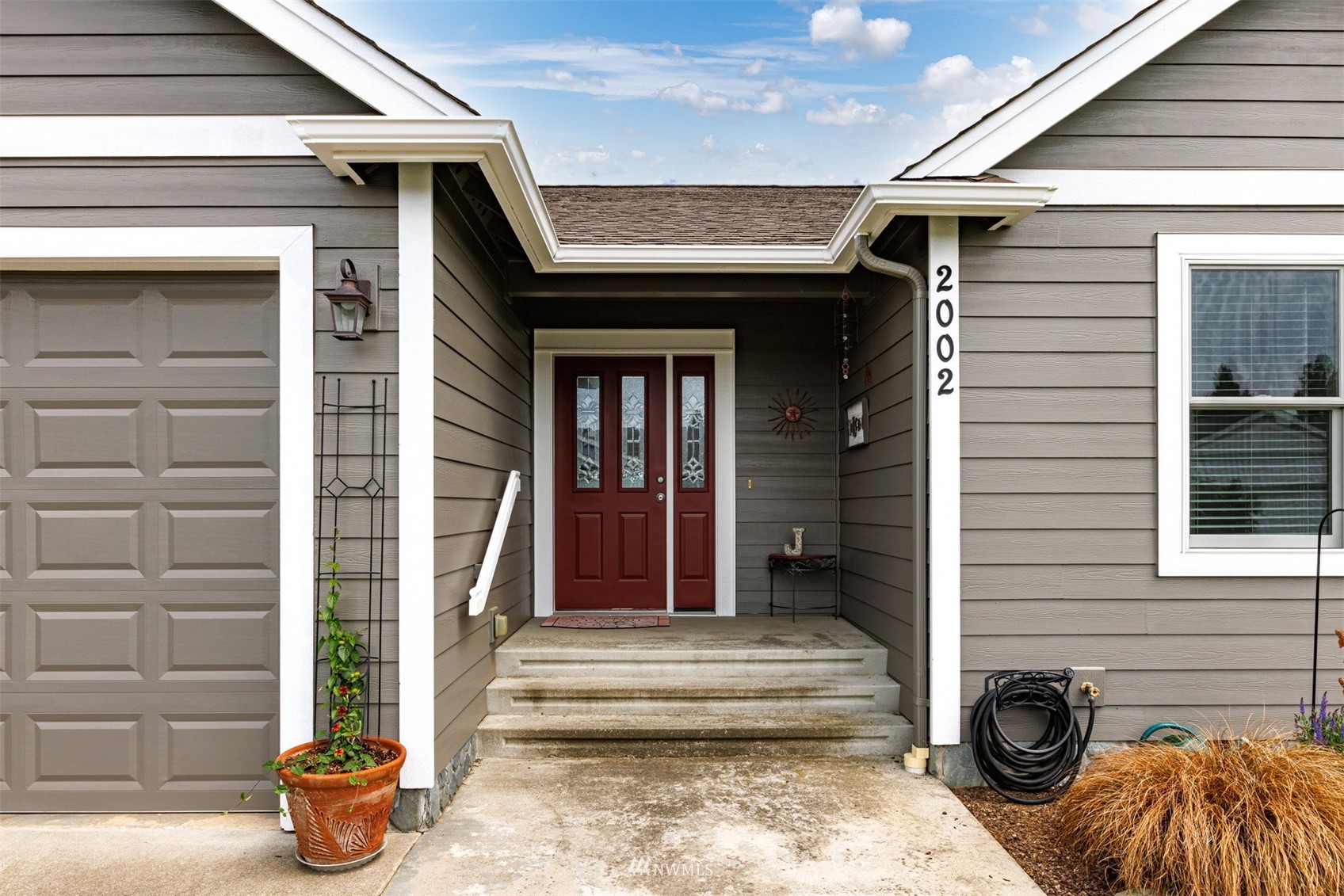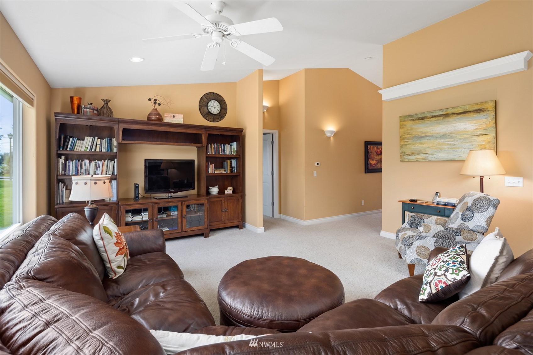 This pristine single level home has an open floor plan with magnificent Mount Baker views, and is on a large level lot with easily maintained landscaping surrounded by a private hedge. The living room is open to the dining and kitchen and has vaulted ceilings and large windows looking out to the views of Mt Baker and the Twin Sisters. The master is very spacious and also takes in those views, while the other two bedrooms are on the opposite side of the home giving privacy. There is an attached, oversized 2 car garage with pull-down stairs and attic storage. The kitchen has a large eating bar and an abundance of cabinets and counter space. This home has been meticulously maintained and there's secured RV parking available in this community.
