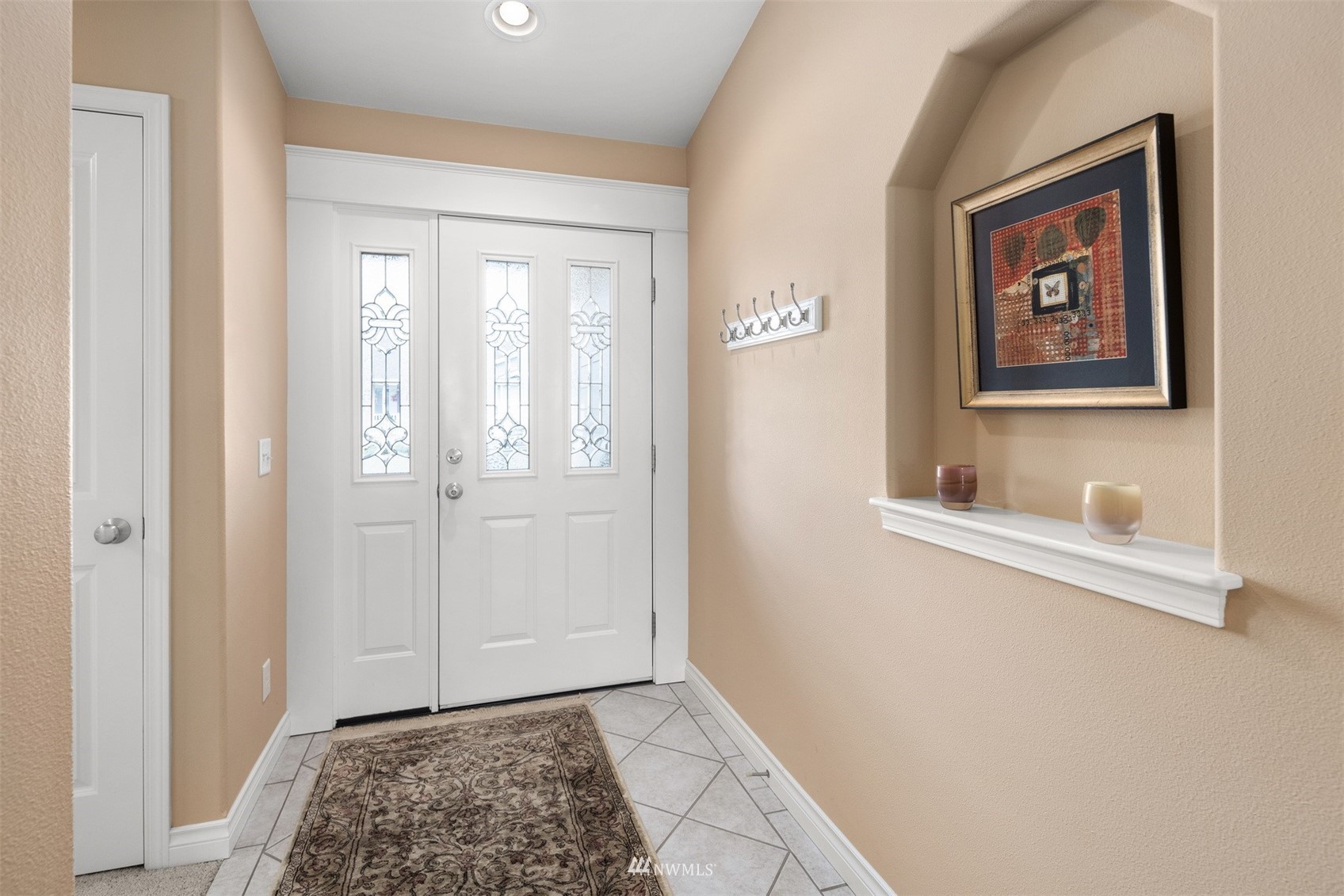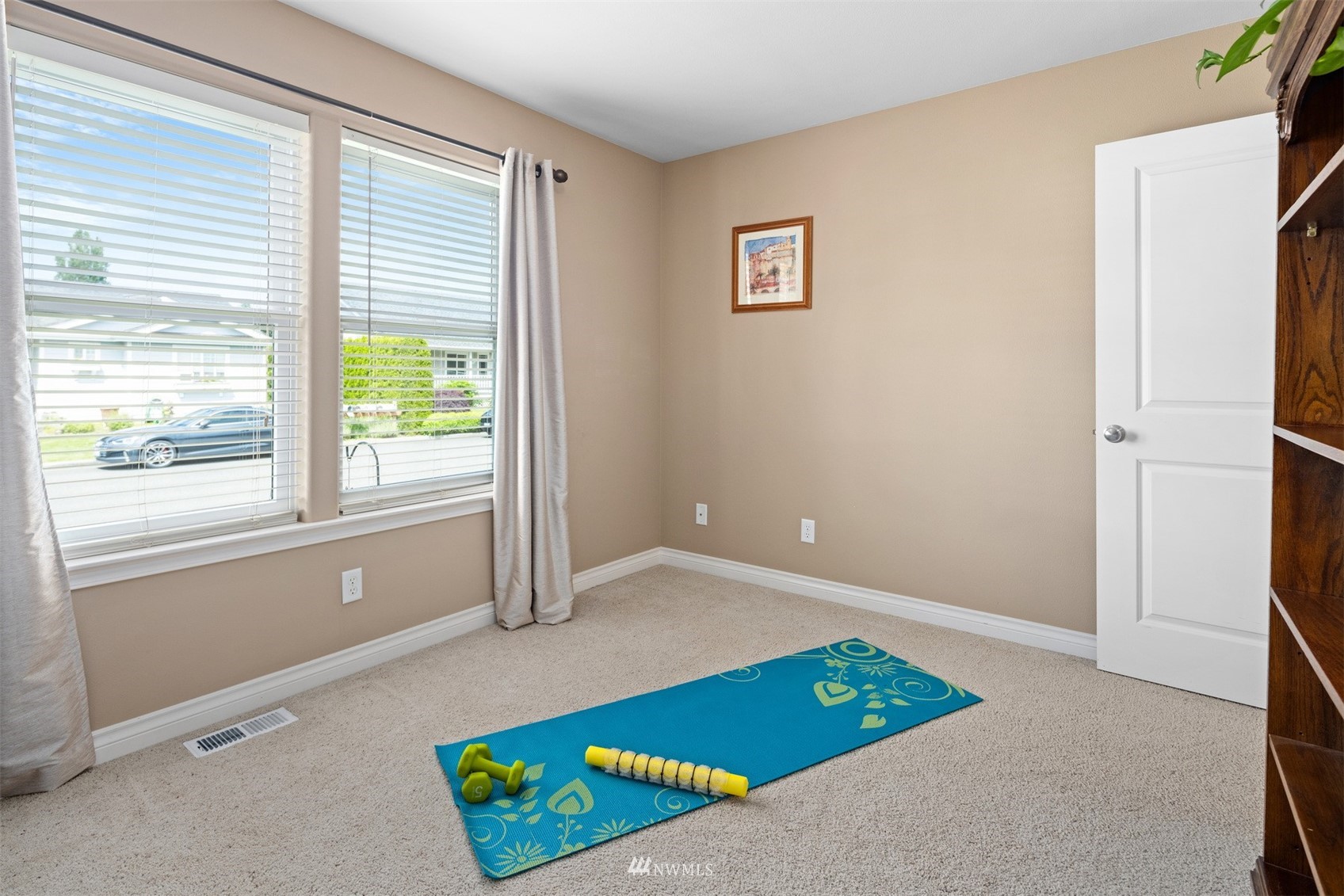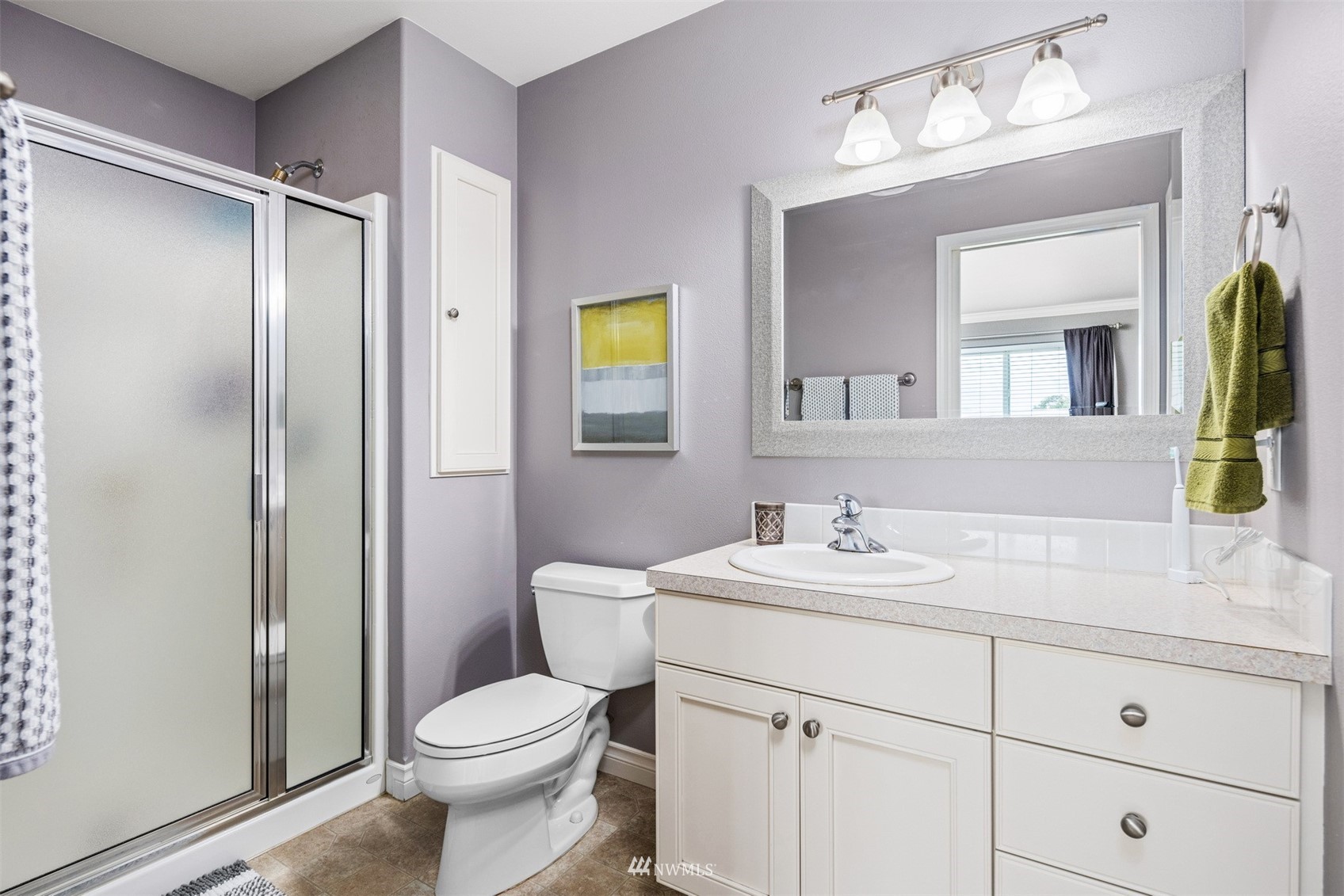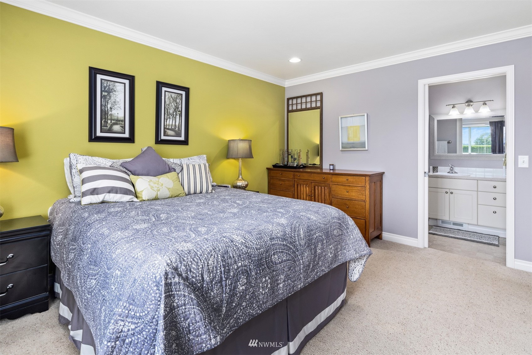 This pristine single level home has an open floor plan with magnificent Mount Baker views, and is on a large level lot with easily maintained landscaping surrounded by a private hedge. The living room is open to the dining and kitchen and has vaulted ceilings and large windows looking out to the views of Mt Baker and the Twin Sisters. The master is very spacious and also takes in those views, while the other two bedrooms are on the opposite side of the home giving privacy. There is an attached, oversized 2 car garage with pull-down stairs and attic storage. The kitchen has a large eating bar and an abundance of cabinets and counter space. This home has been meticulously maintained and there's secured RV parking available in this community.
