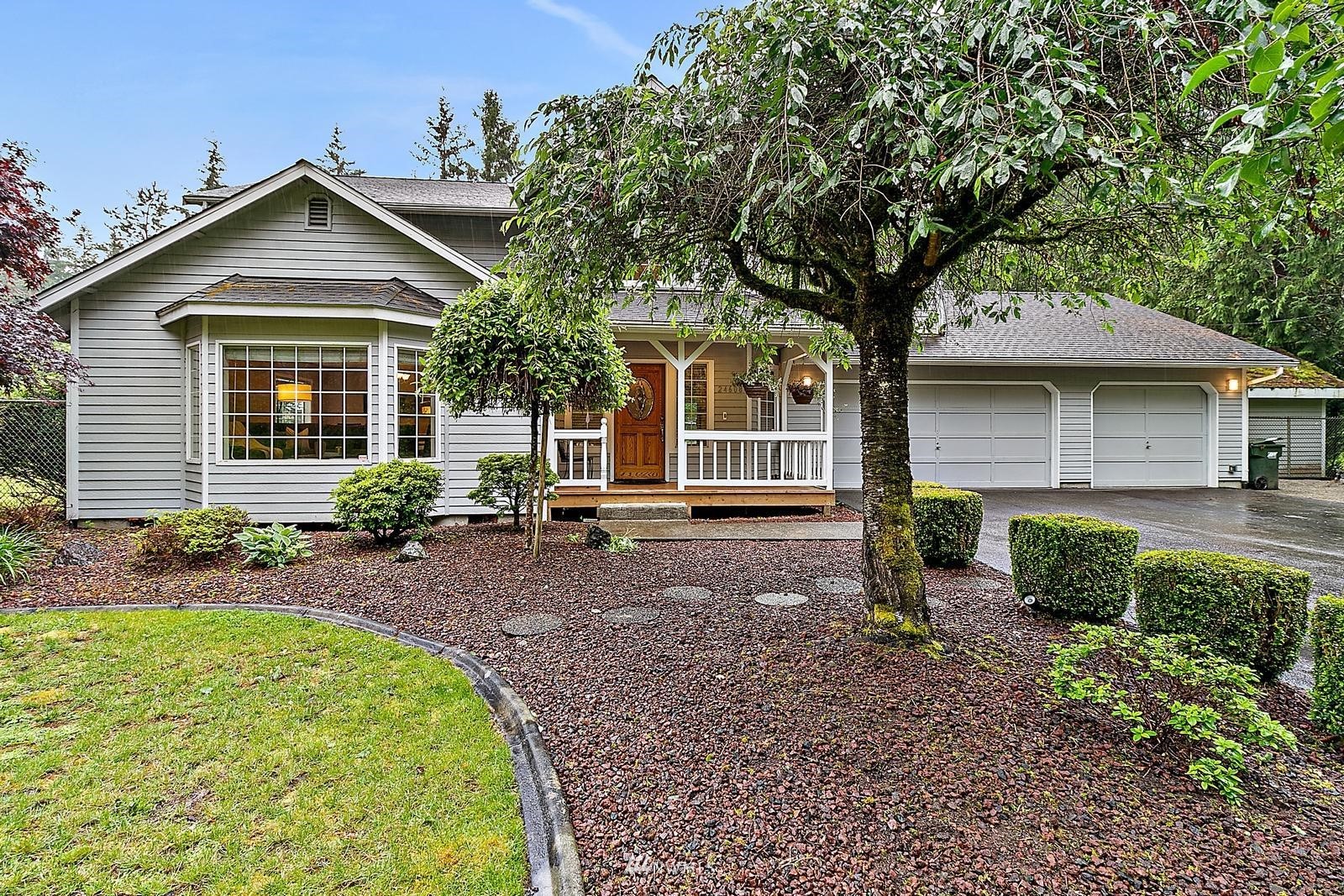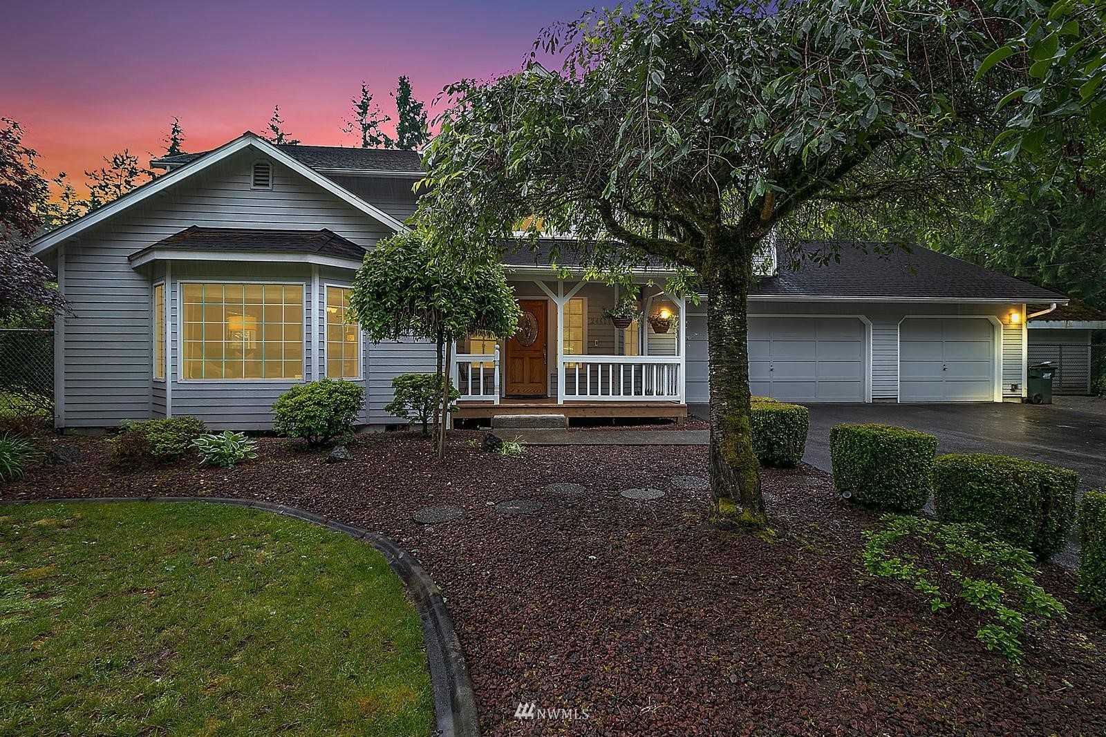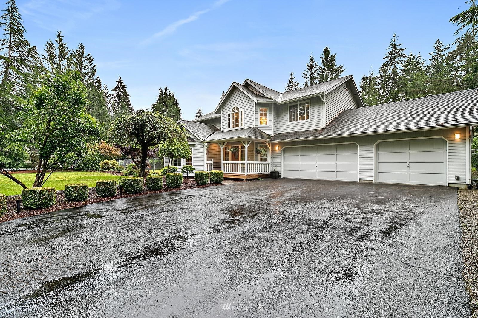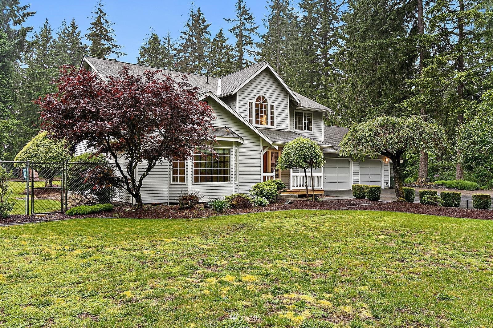 Highly Sought Maple Valley Home situated on over an acre of land with Park-like setting including garden space, Fruit Trees, Sport Court, & RV Parking. This light & bright Sophisticated design features meticulous craftsmanship with pride of ownership. Home boasts 4 generously sized rooms +Bonus off Garage & 2.25 bths. Stunning light and bright formal living rm w/vaulted ceilings & wainscoting leading into the formal dining. Well-appointed Kitchen looking out to your stunning landscaped yard & open to your casual dining & Family room. Spa-like master suite w/ luxuriously remodeled bth including a huge designer Shower w/bench. NEW CARPET! Home is wired for Generator & Security. 3* Car garage + ample Parking for RV/Boat/Trailer.Tahoma Schools!