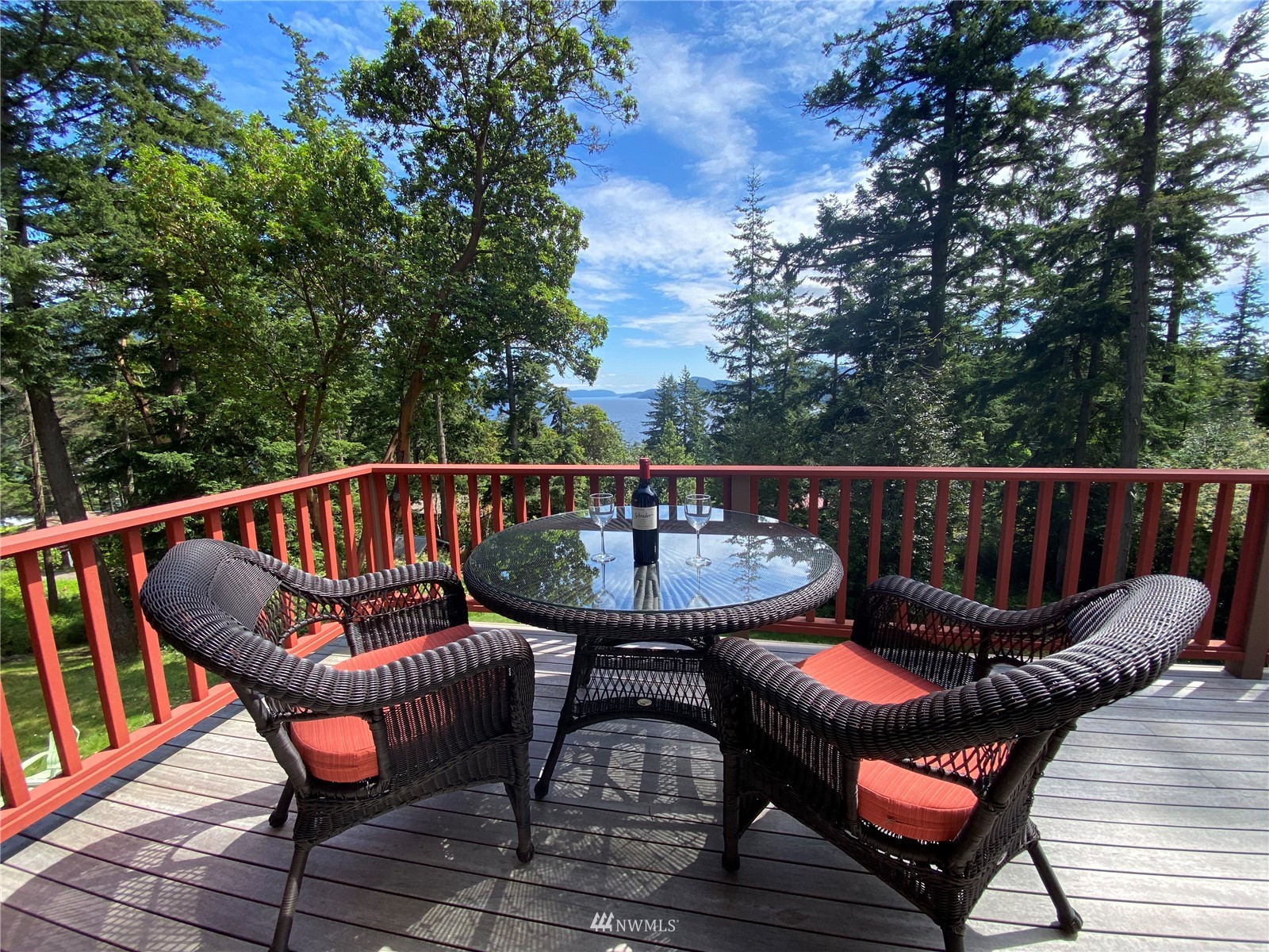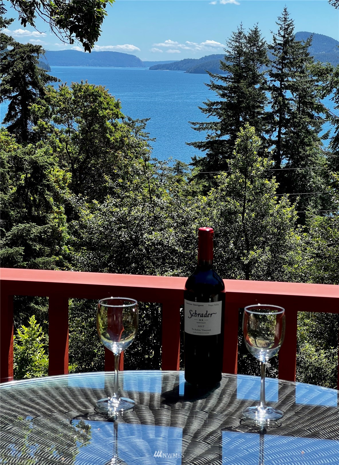 Spectacular southern marine views down East Sound towards Blakely Island from this immaculate & turn-key, fully furnished, 3BR/2BA home. Main floor features primary bedroom w/ensuite full bath w/radiant heat in porcelain tile floors, spacious Chef's kitchen, great room, laundry & entry. Lower level features 2 additional BR's & full bath. Expansive Ironwood deck spans width of house for taking in the water views & entertaining. Chef's kitchen features stainless appliances, ample counter space (granite), warm brown mahogany floors. New generator (2021) heat pump, water softener, & recirculating hot water. Recently remodeled w/new carpeting, appliances, tile. Rock Island LTE, Current SJC Transient/Vacation Rental Permit. Eastsound Water/Sewer.