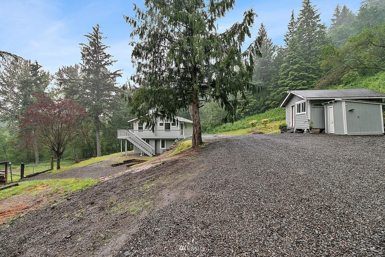 Serene country living at it's finest! Situated on 4+ acres of privacy, this home is ready to be yours! New flooring, interior painting & millwork throughout showcase the scenery around the grounds. Main floor has open concept w/ wrap around deck- perfect for entertainment! Both levels have full baths w/ the downstairs plumbed for a salon, wet bar or MIL. Wood burning FP acts as secondary heating. Exterior & decking is freshly painted. Chicken coop, wood shed & outbuildings provide ample storage. House backs to endlessly wildlife & seclusion. Room for a shop, barn, equestrian lifestyle, or simply bring your imagination! This is a must see!