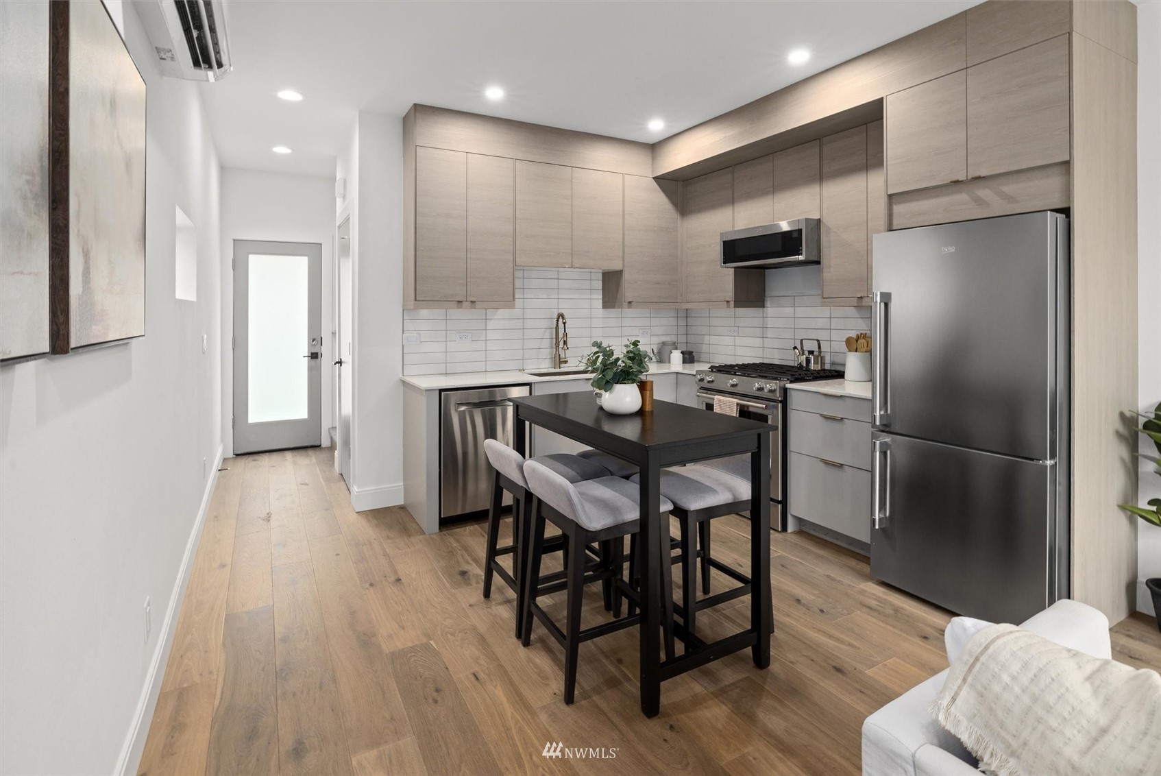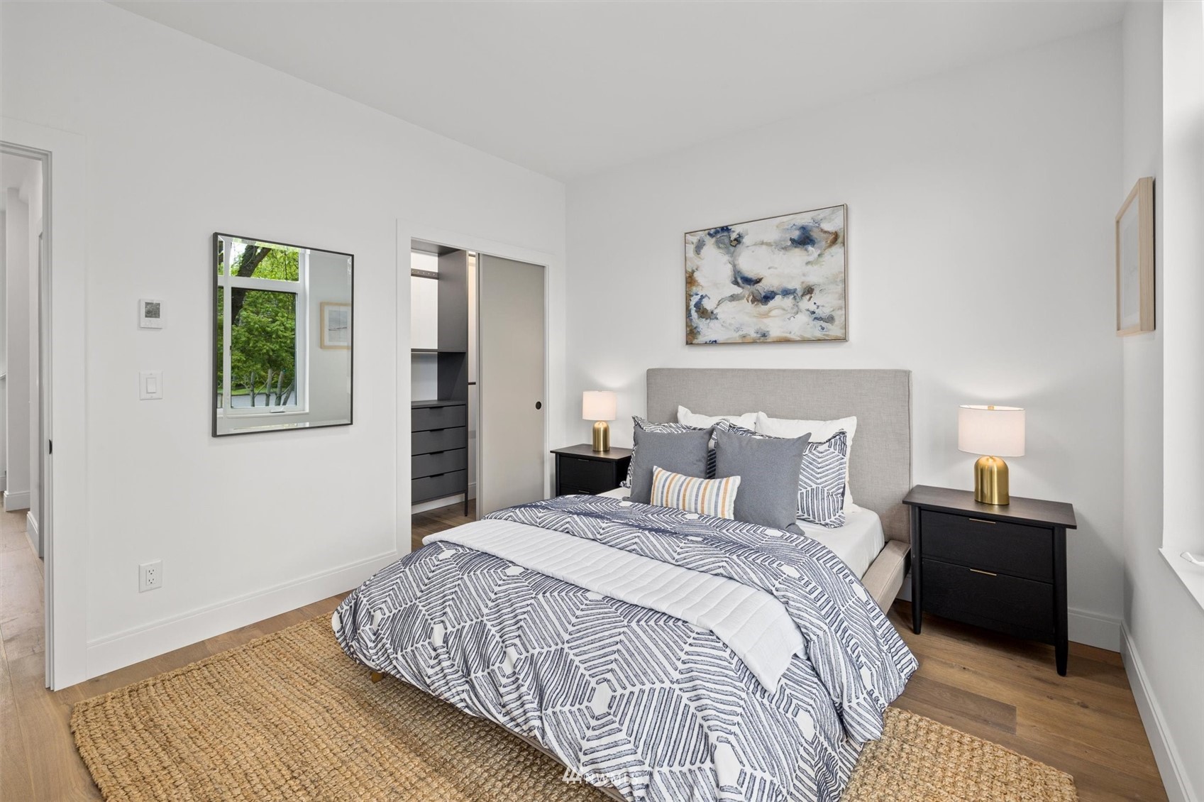 Another amazing project by Roland Development! Location does not get much better than this! Modern, classic aesthetics, with functionality clean lines, and high quality finishes. Spacious end unit with custom elements and light filled spaces. Hardwood floors, custom tile work and thoughtful design, with a well appointed kitchen that features high end appliance package, quartz countertops and fine cabinetry. Generous primary suite with 2 walk in closets and a lovely primary bath, as well as a 2nd bedroom and bathroom on the upper floors. Both baths feature heated floors. Don't miss the views from the rooftop deck!! Street will be completed out front soon!