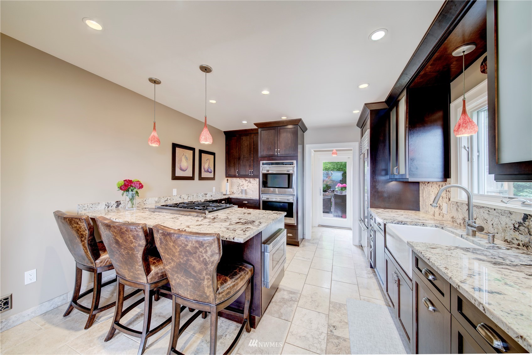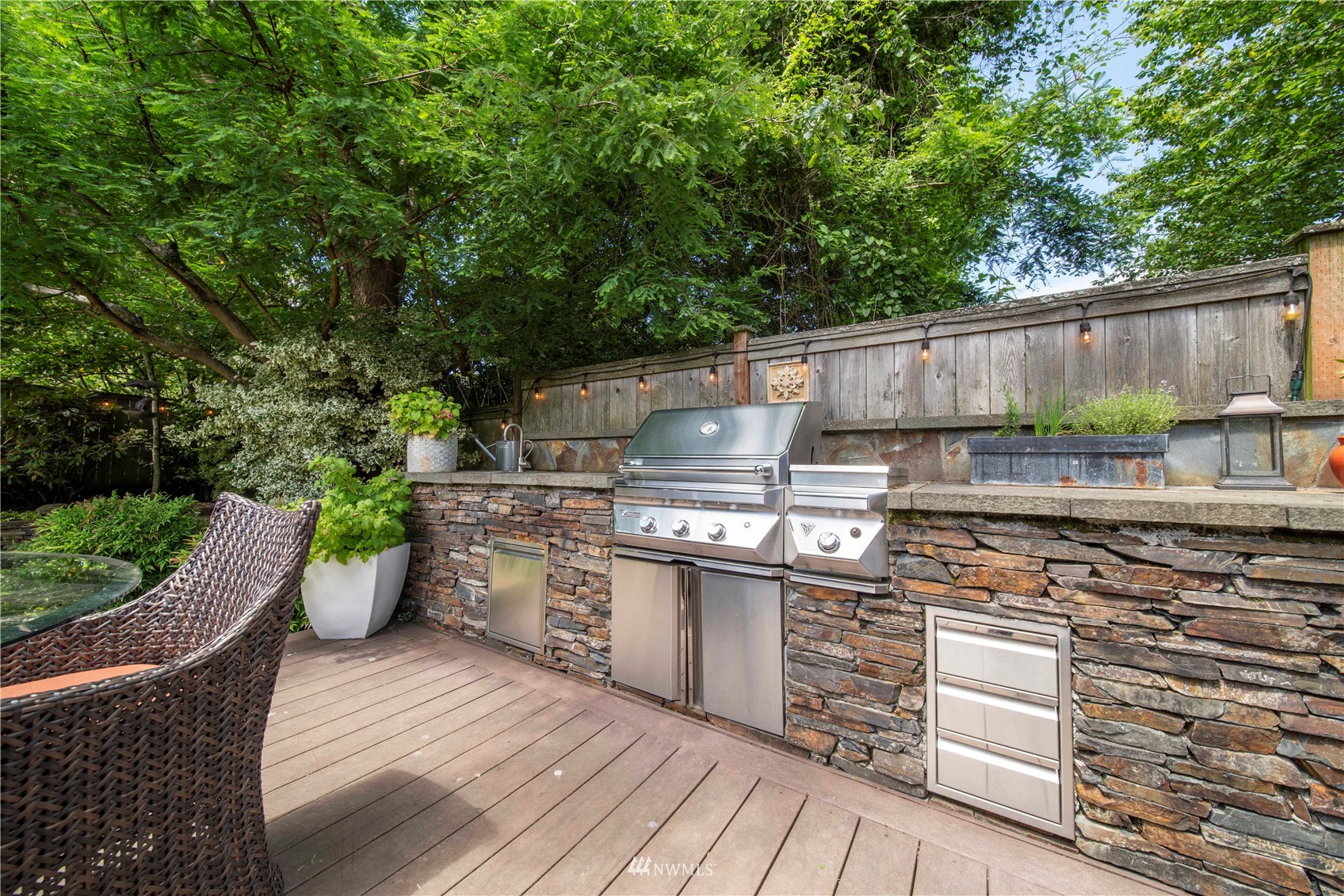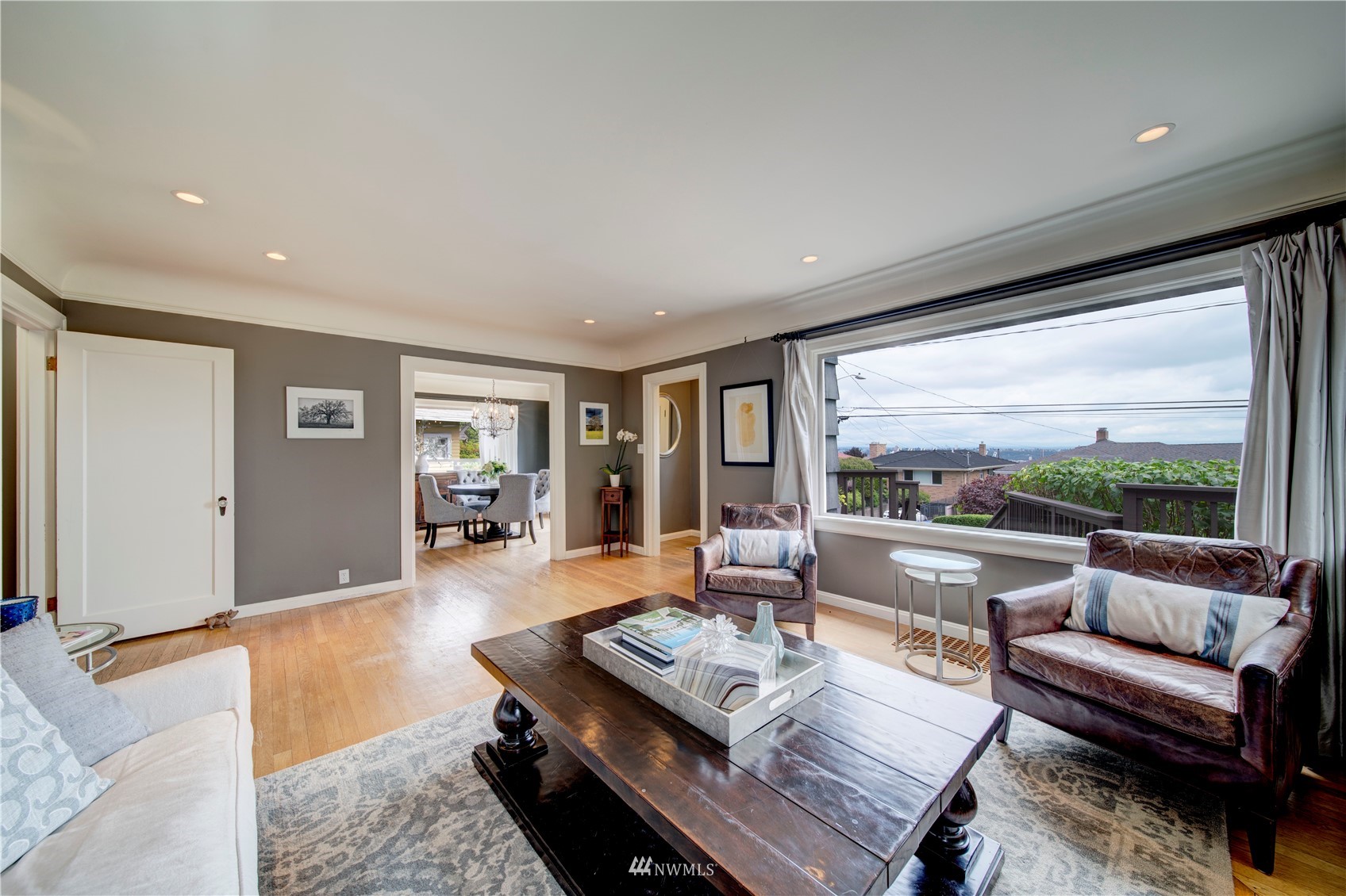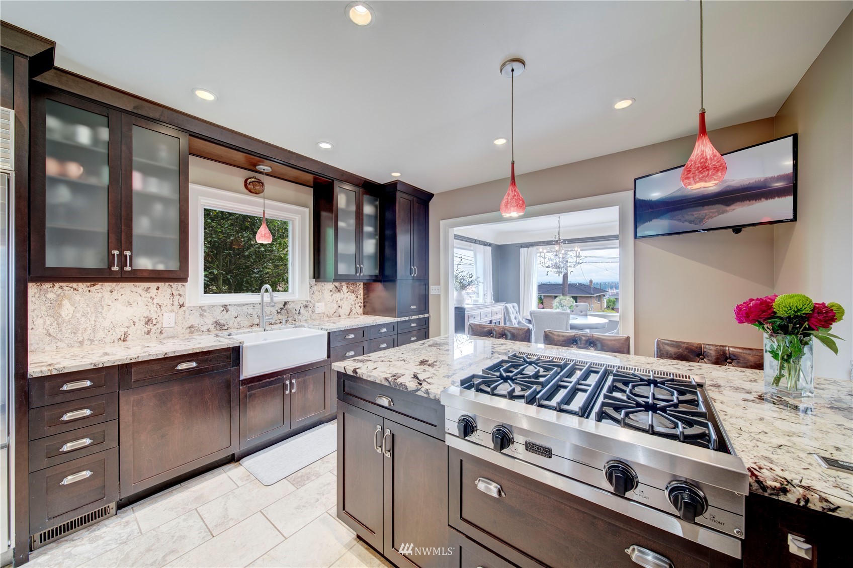 A West Seattle Oasis with city, sound, and mountain views for days. Set in the heart of the Belvidere neighborhood and handsomely updated. This classic 4 bedroom 2.25 bath Dutch Colonial has everything you have been looking for. Let's start with the chef's kitchen. Open layout, Subzero fridge, Viking range, Wolf double-oven, Shaw apron sink, and wet-bar to round it off. Views from dining room, living room and upper bedrooms. Full Primary suite with sitting room. Lower level recently remodeled with bedroom, 3/4 bath and laundry. 1 car garage + parking off st. The back yard is divine! Professionally designed with fountain, gas fire-pit, and custom outdoor kitchen. Get lost in the tranquility of this stunning home.