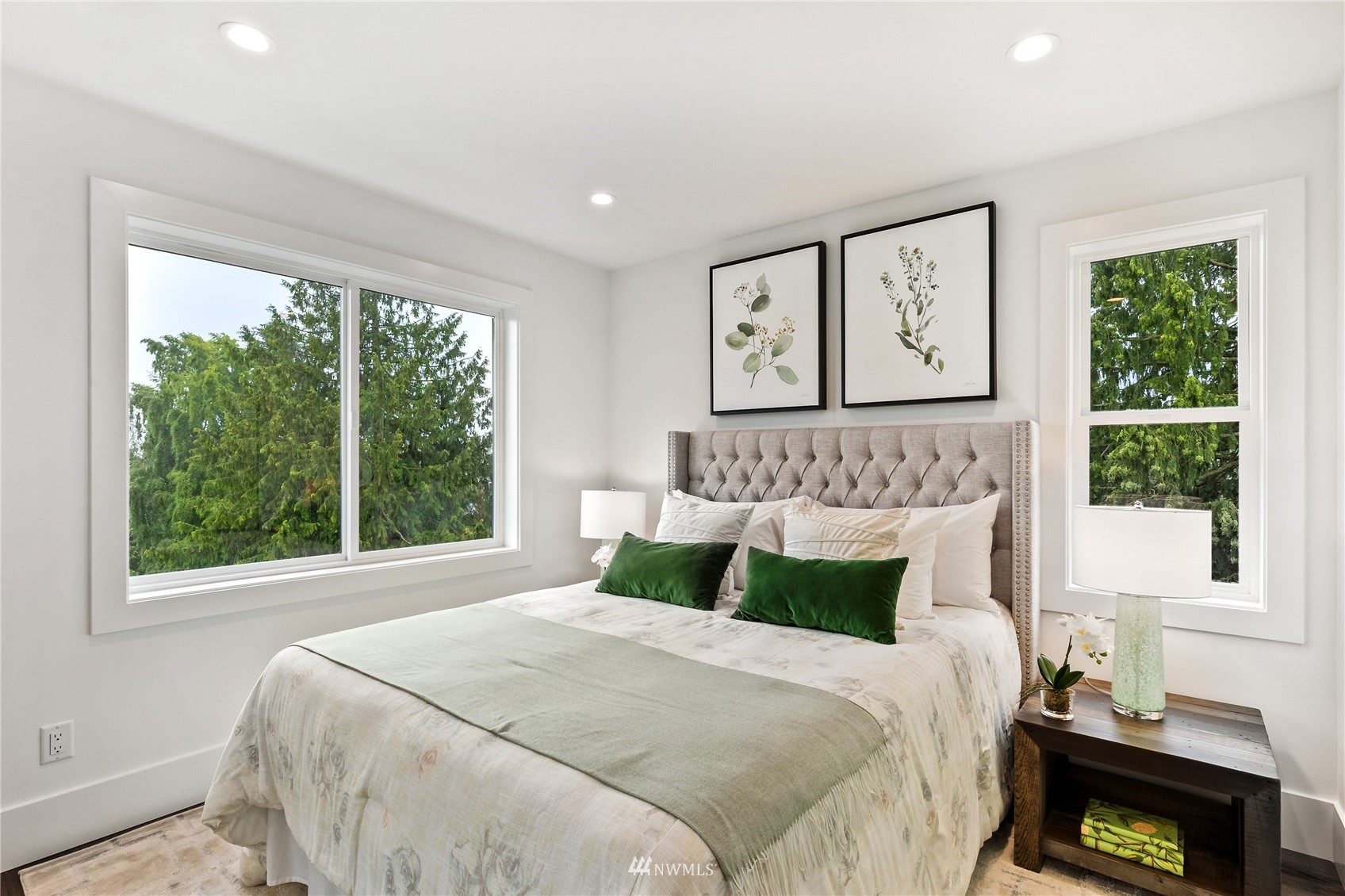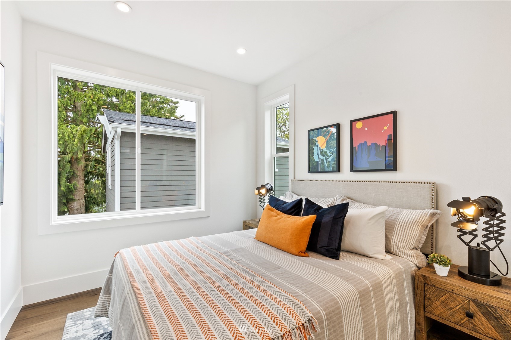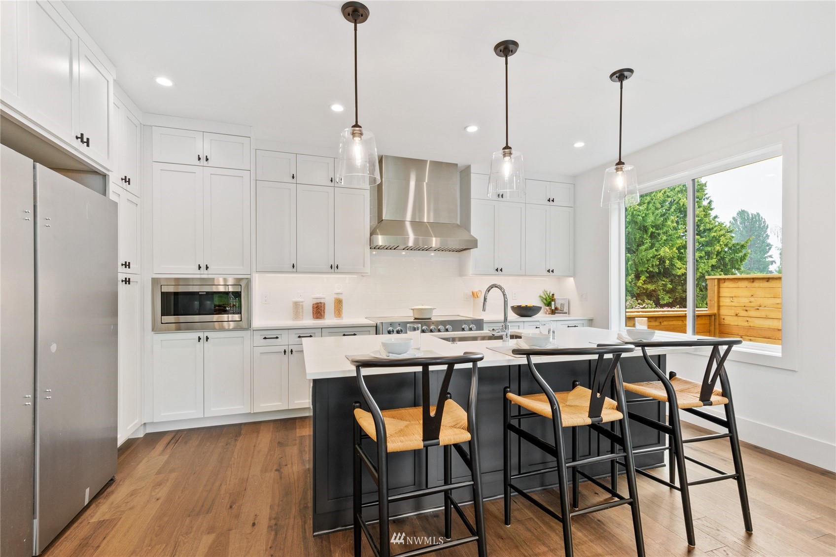 Built by Thomas James Homes, this brand new home has been professionally designed to fit your needs & comes with a full 10 yr new home construction warranty +smart home tech. Sought-after Loyal Heights living in this 3 story, home boasting stunning Rainier/Space Needle views, 4 bed/3.5 bath/1-car gar. Flex spaces include: office, large loft & huge bonus rm. The extra bdrm + full bath on the 3rd floor makes hosting short term/long term guests a breeze. The gourmet kitchen w/SS-appl + island w/bar seating, open to the great rm + stacking doors to back patio. Deluxe grand suite w/dual sink vanity & large WIC. Heated/covered roof deck can be enjoyed yr round. Superior location near Loyal Heights Playfield, Golden Gardens, restaurants & more.