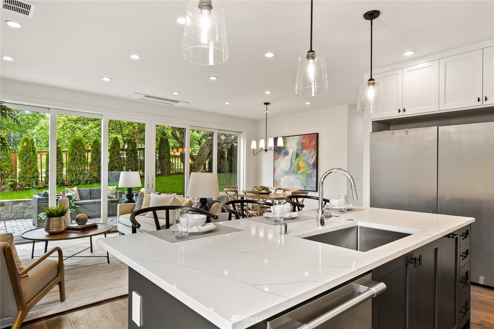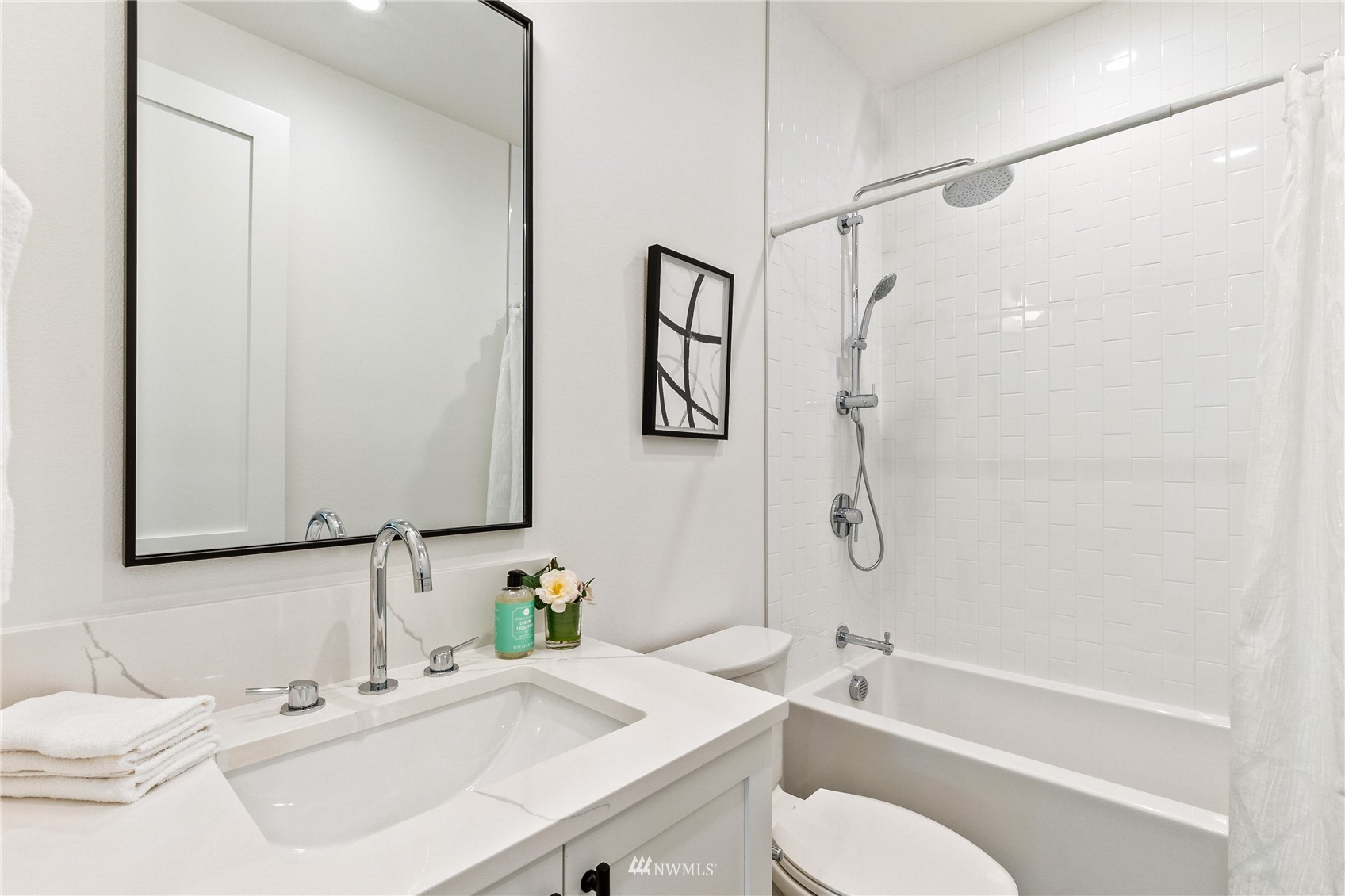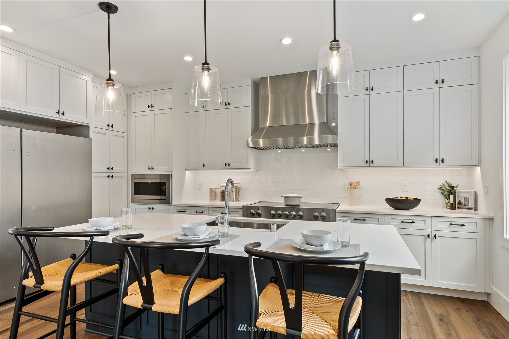 Built by Thomas James Homes, this brand new home has been professionally designed to fit your needs & comes with a full 10 yr new home construction warranty +smart home tech. Sought-after Loyal Heights living in this 3 story, home boasting stunning Rainier/Space Needle views, 4 bed/3.5 bath/1-car gar. Flex spaces include: office, large loft & huge bonus rm. The extra bdrm + full bath on the 3rd floor makes hosting short term/long term guests a breeze. The gourmet kitchen w/SS-appl + island w/bar seating, open to the great rm + stacking doors to back patio. Deluxe grand suite w/dual sink vanity & large WIC. Heated/covered roof deck can be enjoyed yr round. Superior location near Loyal Heights Playfield, Golden Gardens, restaurants & more.