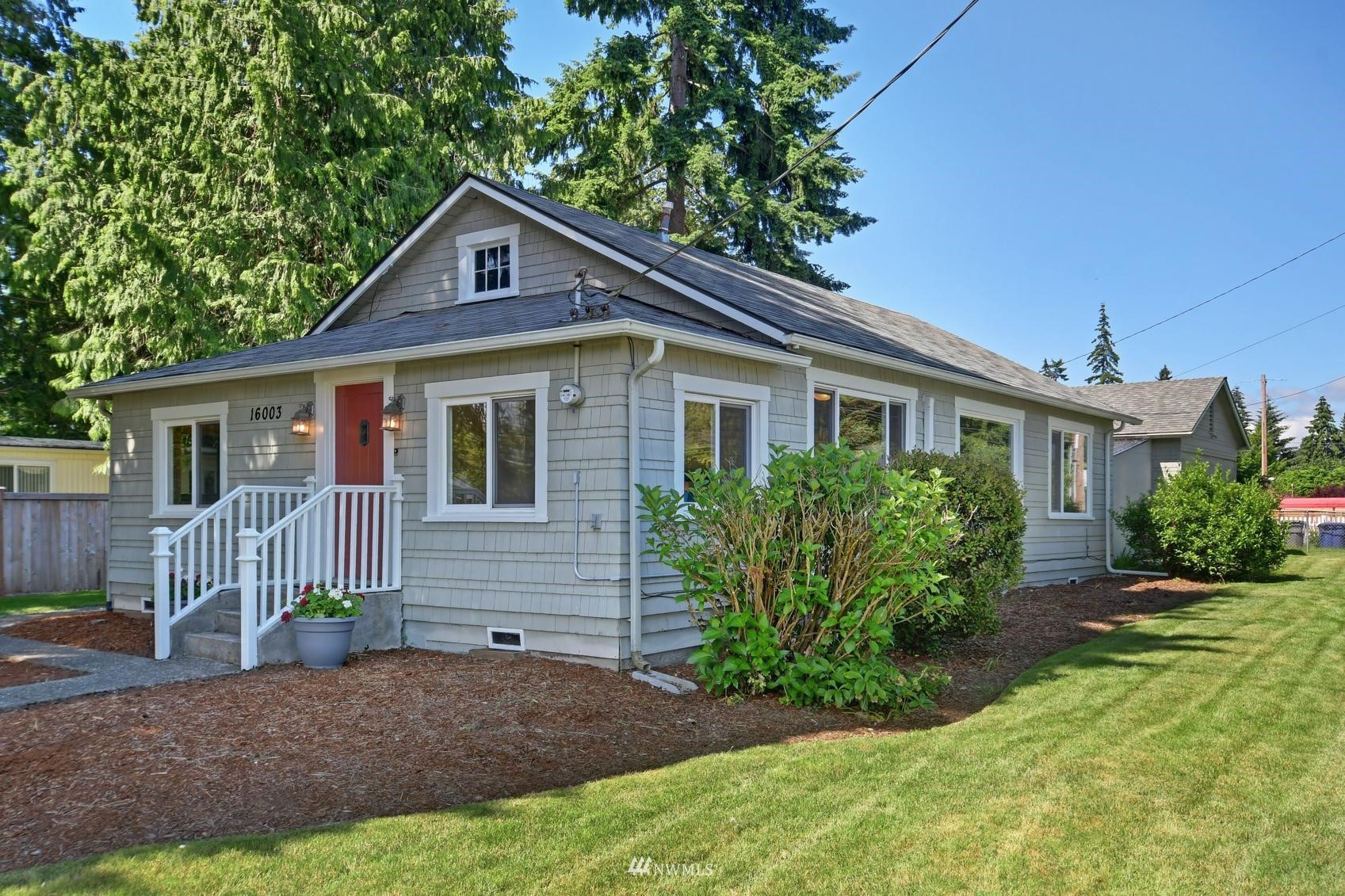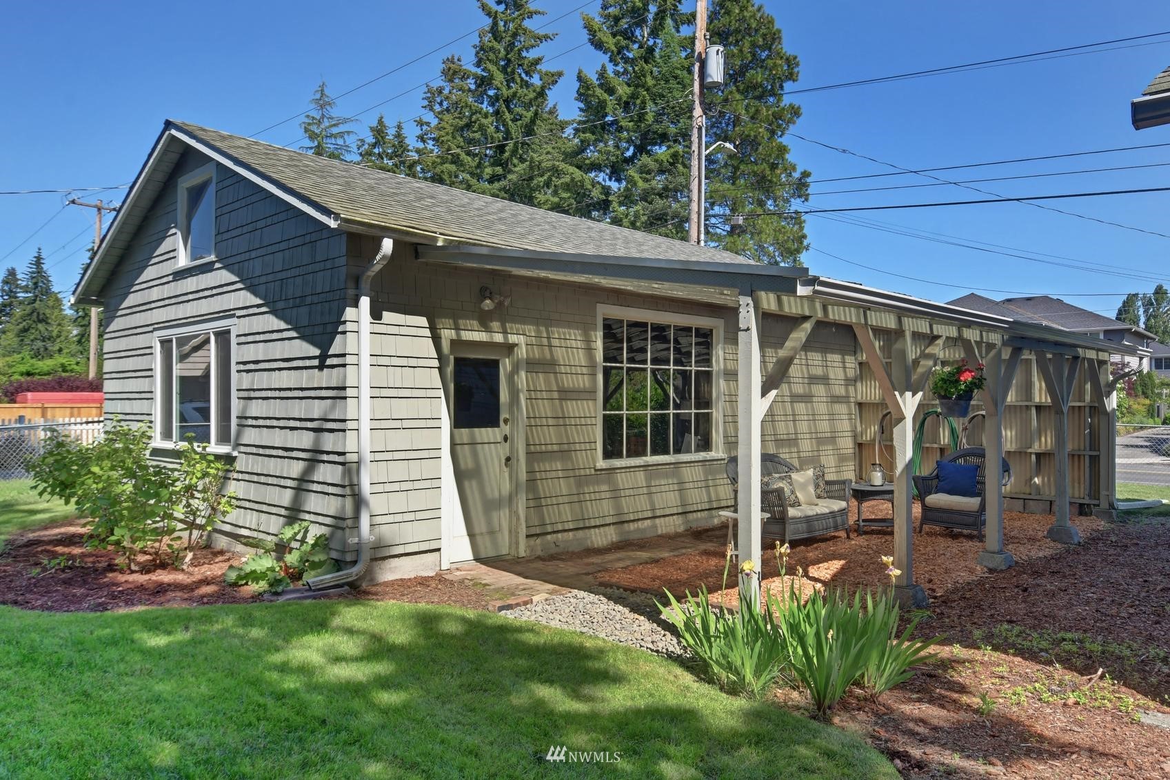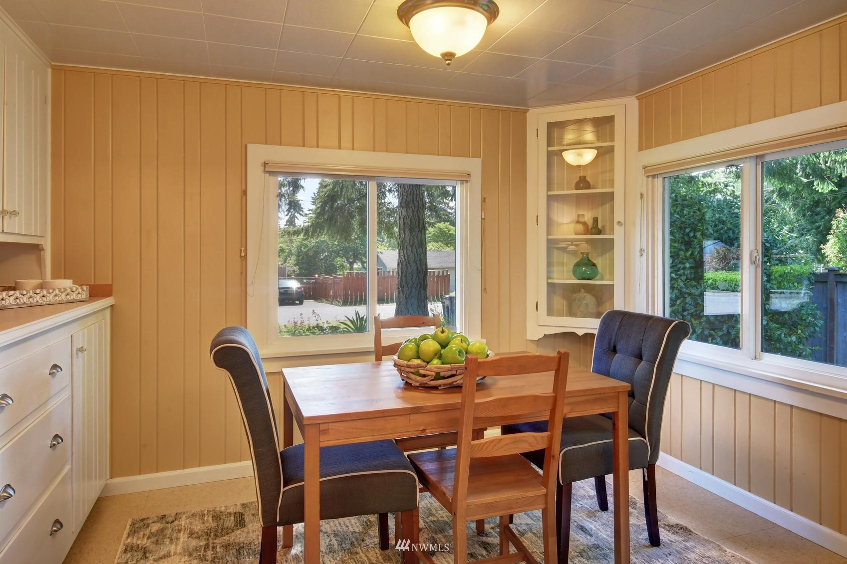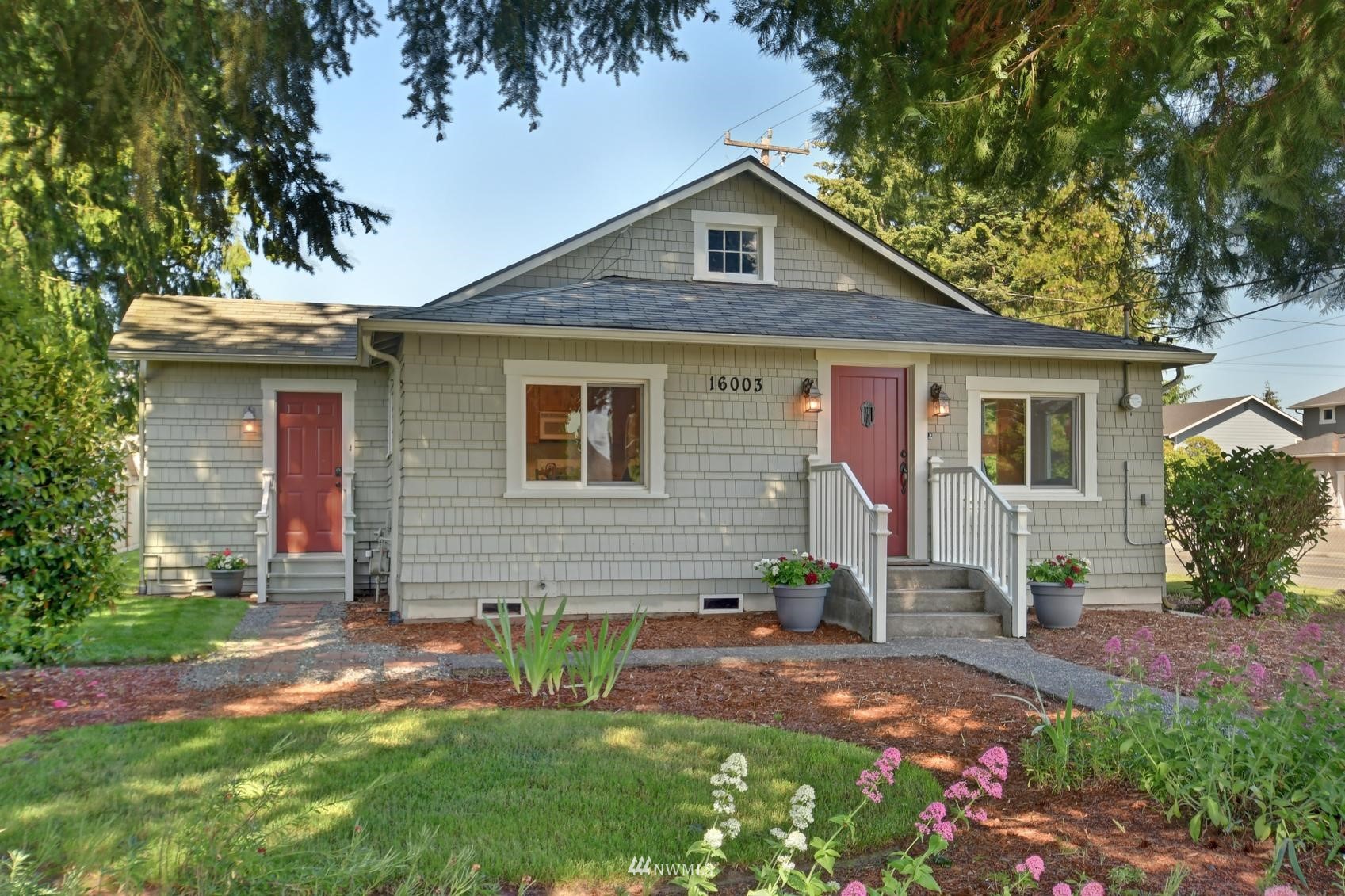 Charming 1937 Craftsman bungalow with a fresh price! Open, light, spacious, living room easily accommodates multiple seating areas. Original fir floors, Mini split for heat and AC, big updated country kitchen, adjacent dining, built-in buffet & glass front cabinets. Laundry room/mud room has counters for work space or crafting & great storage. Full, updated bath with ample cabinets, den with built-in desk, & two generous bedrooms complete this home. One level living with a very spacious feel. Detached, 600 sq. ft, 2 car garage with DADU possibilities! Covered outdoor patio area, fenced corner lot with mature landscape and alley access. Great Gregory Heights location near Trader Joes, PCC, hospital, Old Burien & freeway access. A rare find!