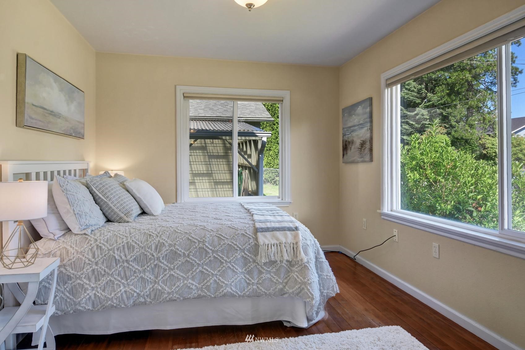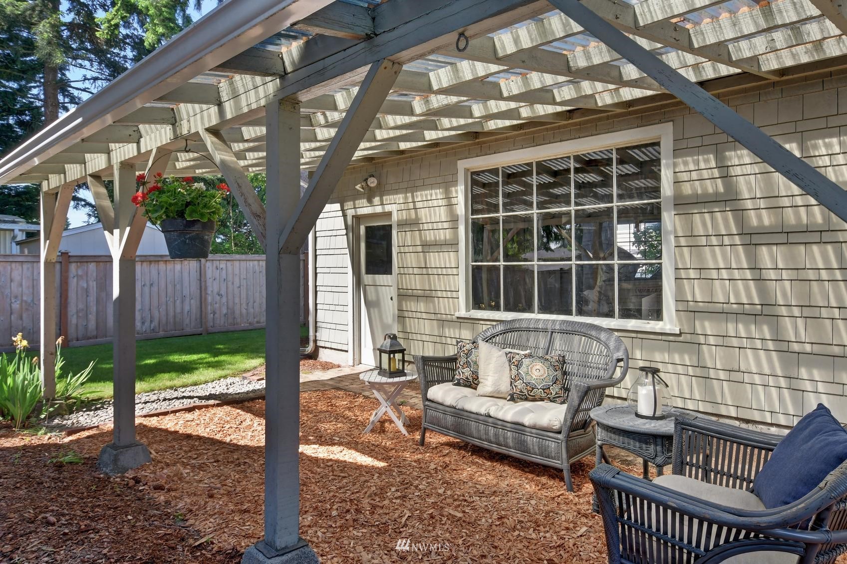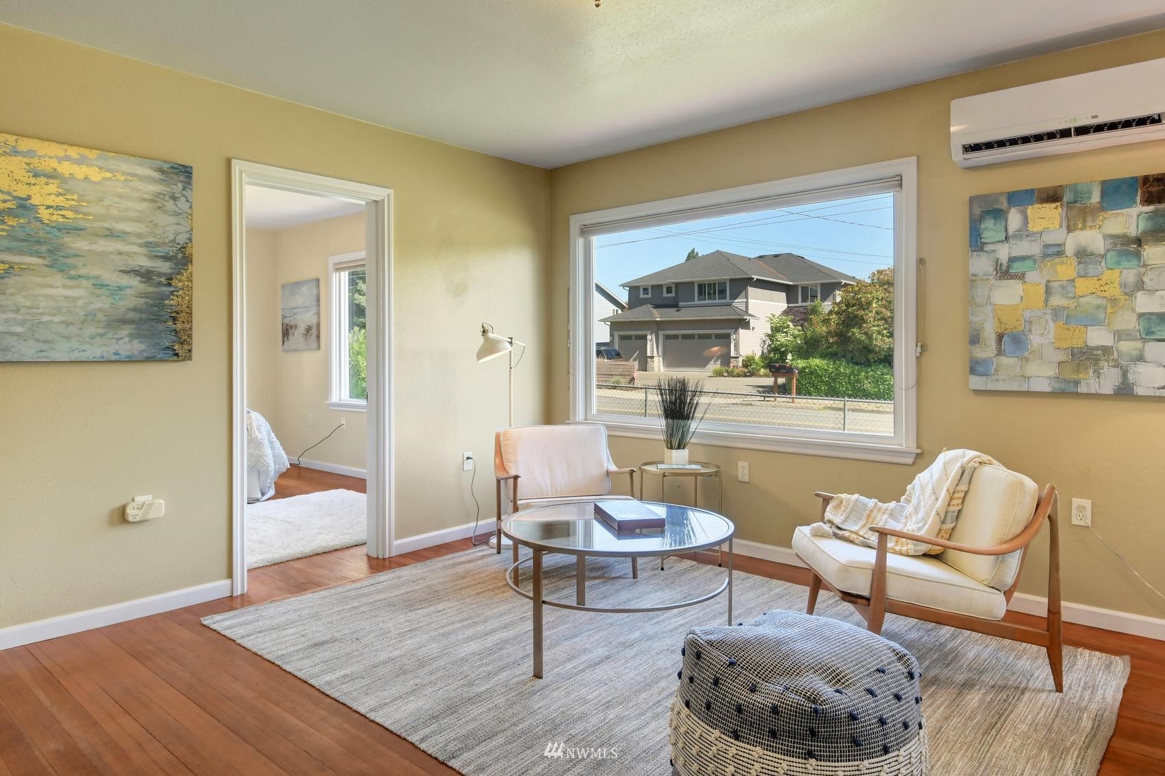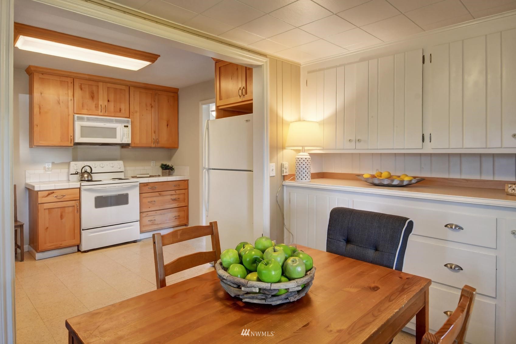 Charming 1937 Craftsman bungalow with a fresh price! Open, light, spacious, living room easily accommodates multiple seating areas. Original fir floors, Mini split for heat and AC, big updated country kitchen, adjacent dining, built-in buffet & glass front cabinets. Laundry room/mud room has counters for work space or crafting & great storage. Full, updated bath with ample cabinets, den with built-in desk, & two generous bedrooms complete this home. One level living with a very spacious feel. Detached, 600 sq. ft, 2 car garage with DADU possibilities! Covered outdoor patio area, fenced corner lot with mature landscape and alley access. Great Gregory Heights location near Trader Joes, PCC, hospital, Old Burien & freeway access. A rare find!