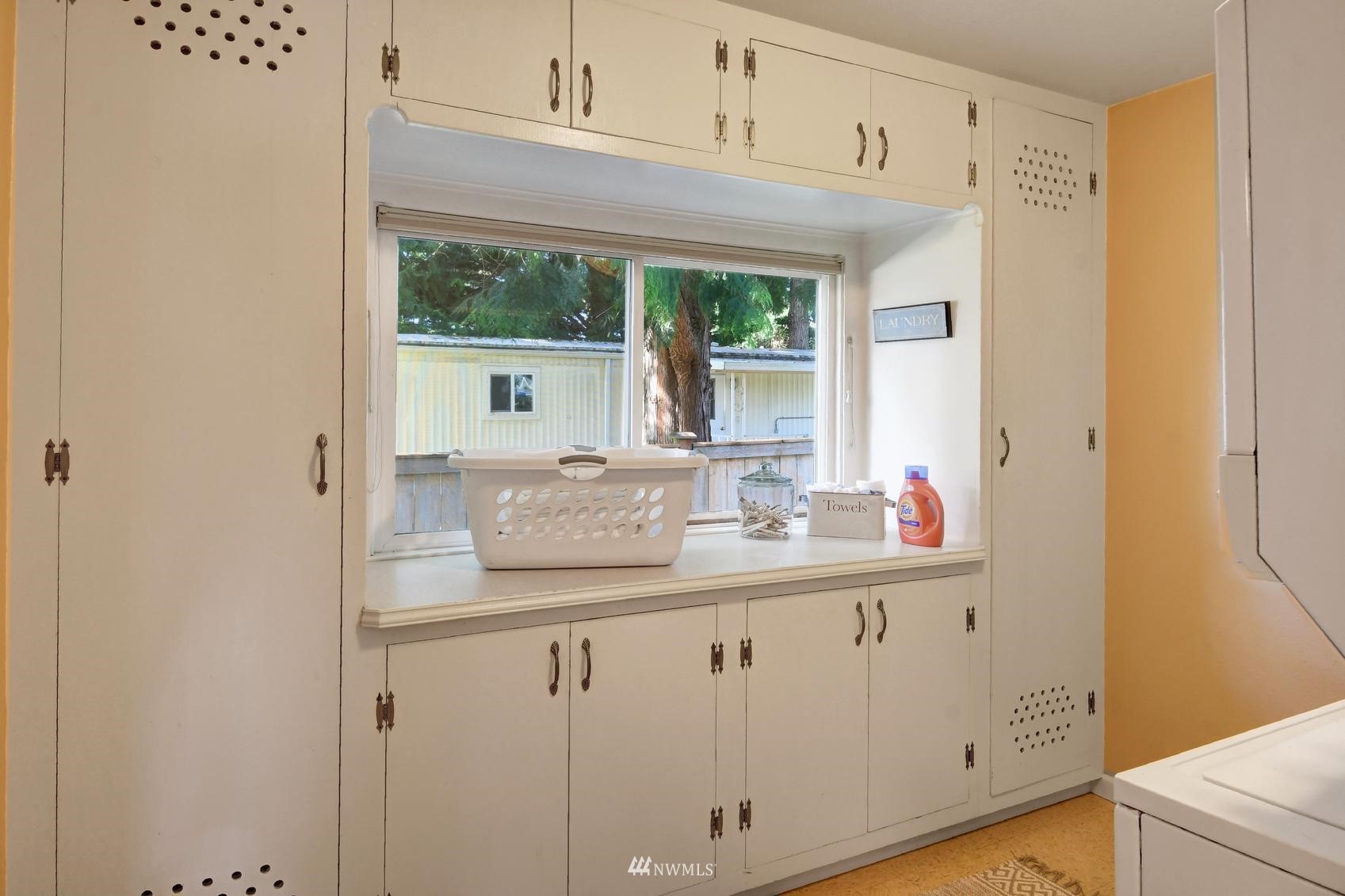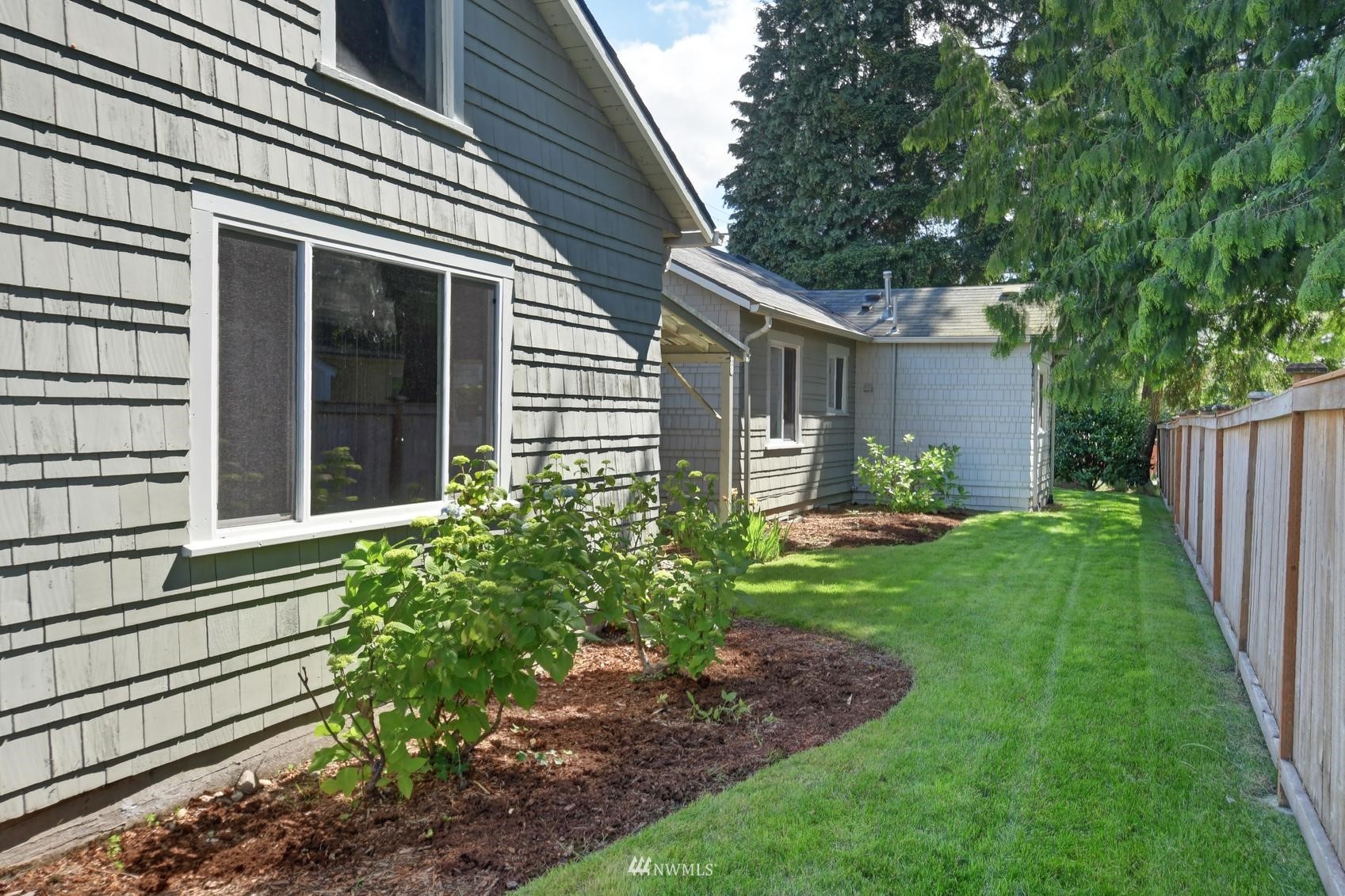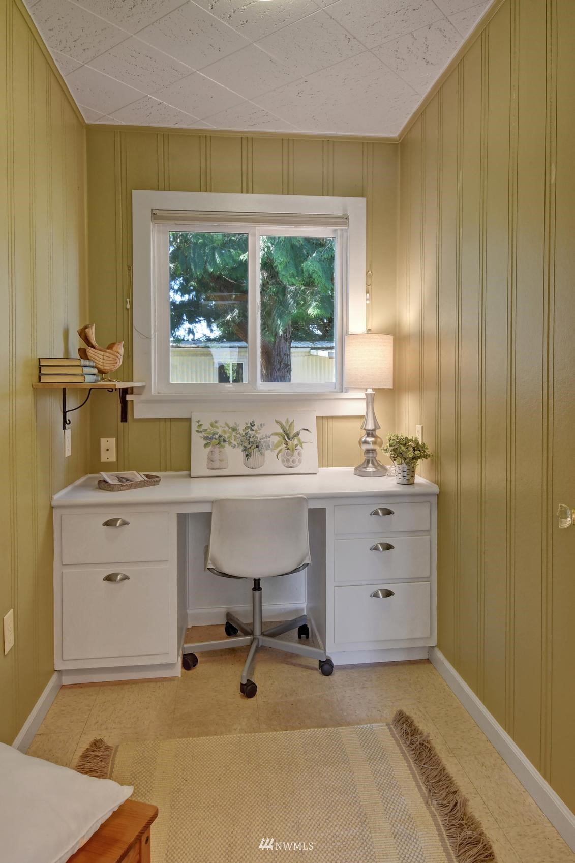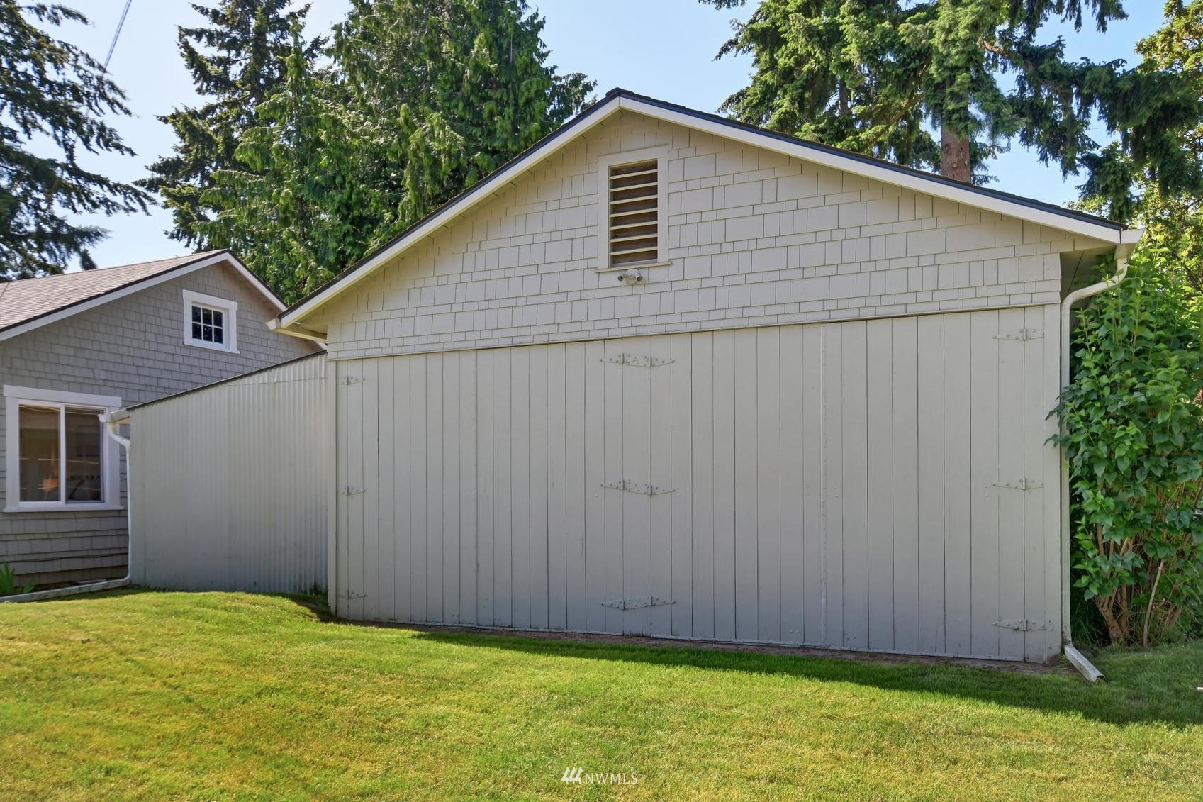 Charming 1937 Craftsman bungalow with a fresh price! Open, light, spacious, living room easily accommodates multiple seating areas. Original fir floors, Mini split for heat and AC, big updated country kitchen, adjacent dining, built-in buffet & glass front cabinets. Laundry room/mud room has counters for work space or crafting & great storage. Full, updated bath with ample cabinets, den with built-in desk, & two generous bedrooms complete this home. One level living with a very spacious feel. Detached, 600 sq. ft, 2 car garage with DADU possibilities! Covered outdoor patio area, fenced corner lot with mature landscape and alley access. Great Gregory Heights location near Trader Joes, PCC, hospital, Old Burien & freeway access. A rare find!