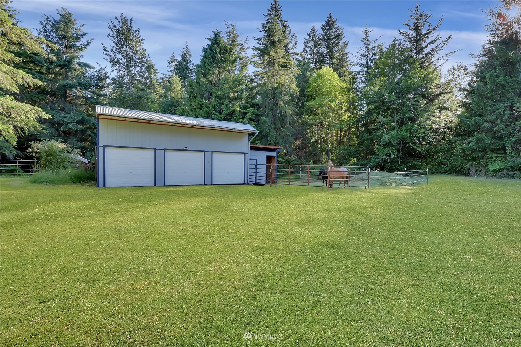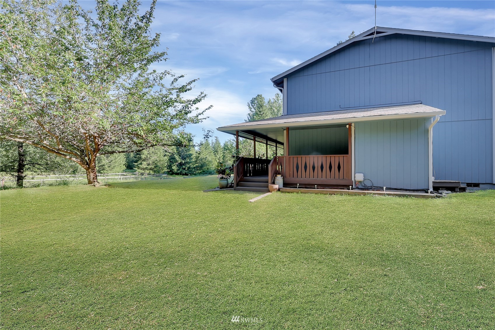 Saddle up the horses & enjoy this secluded equestrian estate-like property on shy 10ac. Plenty of room for everyone! Fully fenced-gated entry & cross fencing throughout. Desired 3 bay detached garage/shop or 4 loafing stalls for horses. Attached lofting shed used for shelter, hay or tack room. 70x130 outdoor riding arena, 60' wooden corral (round-pen) & chicken coop. Newly remodeled home features wrap around covered deck. Main floor living w/open floor-plan. Lg Trex deck just off dining & kitchen eating area. Xtra living spaces, excellent for bdrms/office/2nd primary/etc. Additional 3 Lg bdrms upstairs include primary suite w/private bath & Lg WIC. Flat, treed & useable property w/trails throughout mature landscaped acreage & pasture areas.