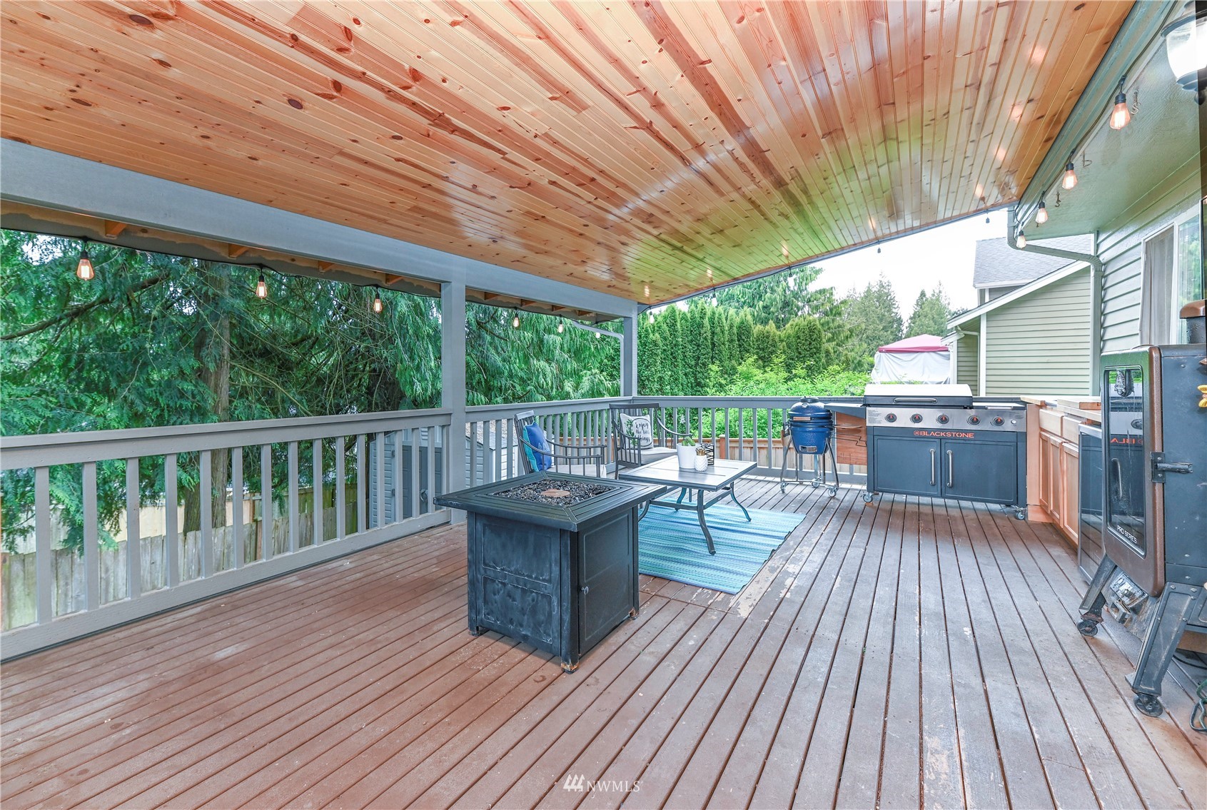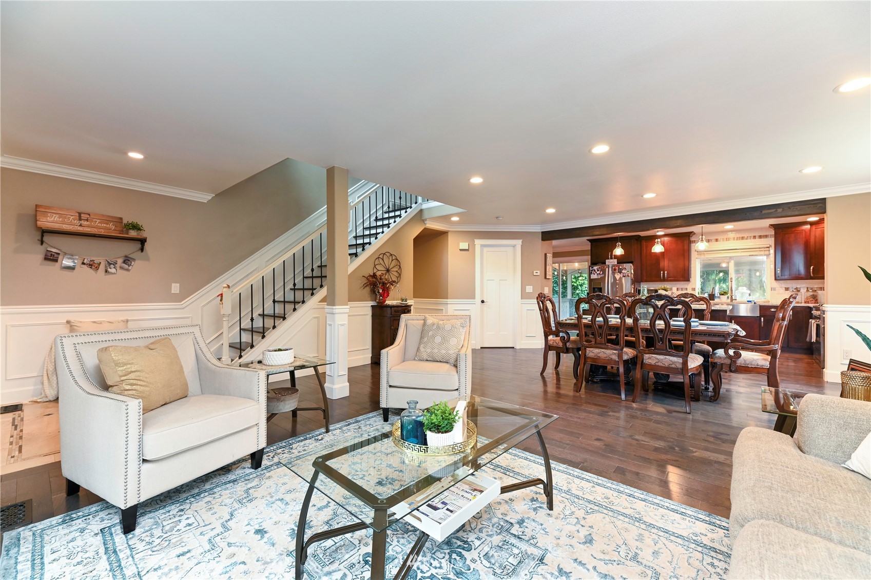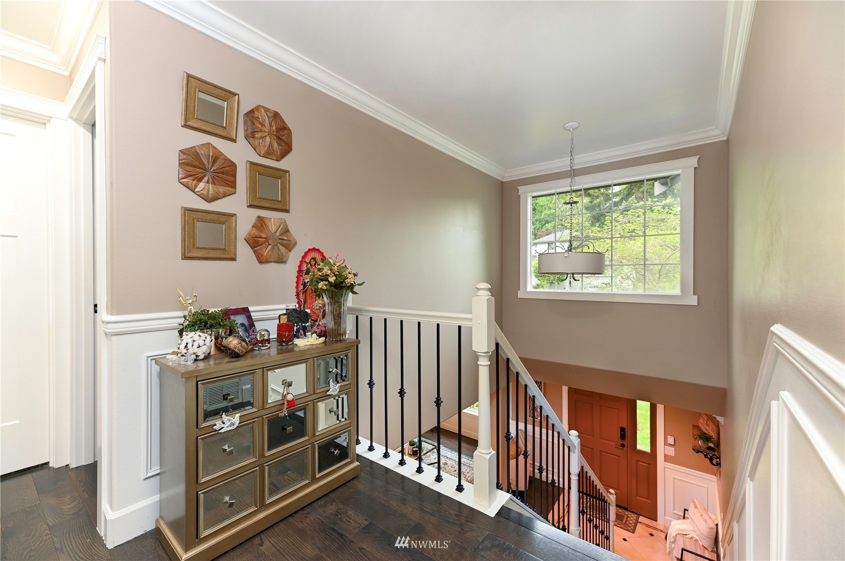 You will fall in love with this amazing home in Gleneagle. Front door opens to a beautiful open concept design with real hardwoods, custom wainscoting, trim and crown molding. Large kitchen island, matching stainless steel appliances and rich brown cabinets pull everything together perfectly. Half bath and access to a heated 2 car garage for ease and comfort. Kitchen slider takes you outside to a covered deck and fully fenced backyard. Next to kitchen you will find the family room with a cozy fireplace and custom mantel and built-ins. The black wrought iron staircase takes you upstairs to primary suite with WIC, 5-piece ensuite, 3 additional bedrooms, full bath & utility room. Not your typical Gleneagle home, don't pass up this one.