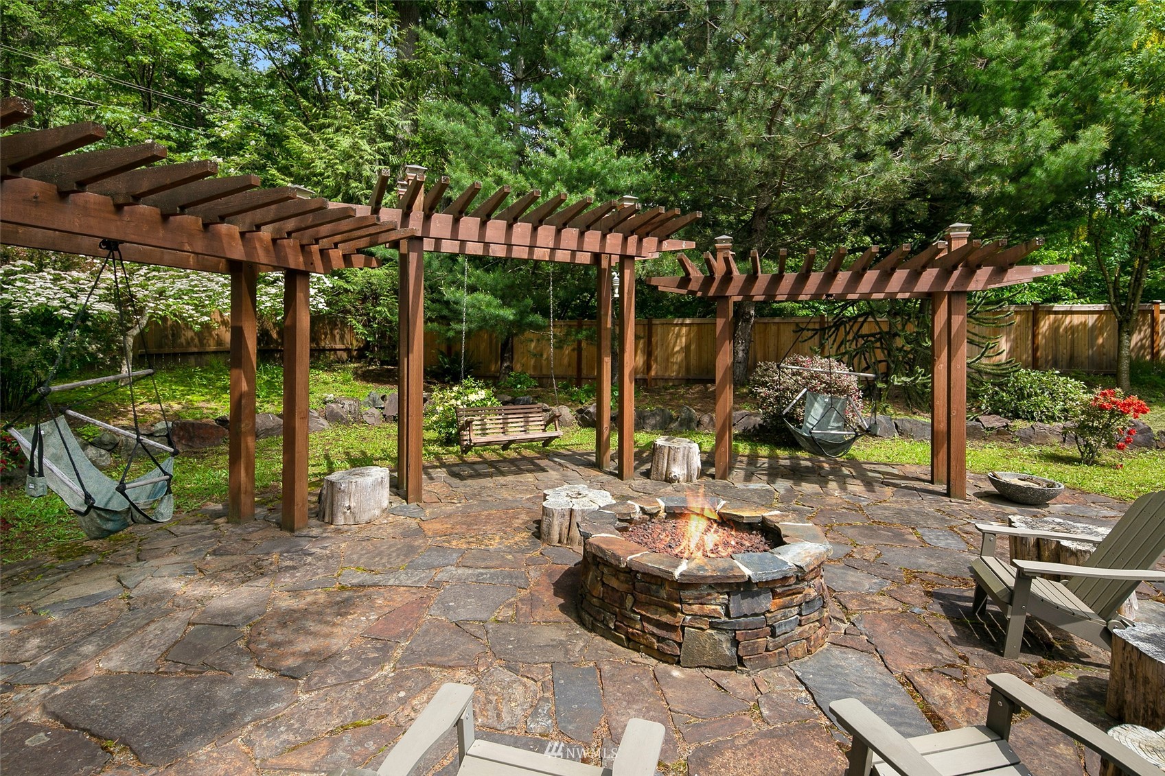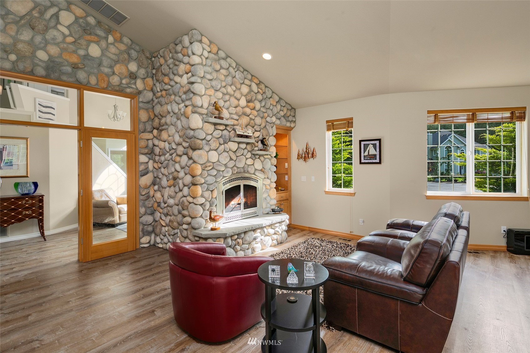 Gorgeous mt views & river access to 100's of ft of private waterfront.Don't miss this coveted opportunity to own in River Si, a private gated community in North Bend.Nestled between Mt Si & Snoq river, this home is just 5 minutes from I-90 yet you feel miles away. 4bdrm home sits on 2 sunny acres that feel like your own oasis.Completely updated w modern touches everywhere.Immaculate condition, newer floors, ss appliances, updated kitchen & bthrms.XL bonus rm is ideal for entertaining w wet bar & cozy fireplace & access to deck & yard. Outside you will enjoy patio w gas firepit,waterfall & pond, greenhouse,storage barn, exquisite landscaping & lighting.Private path leads to river bank & trails.Whole house generator, AC 3 car garage w shop.