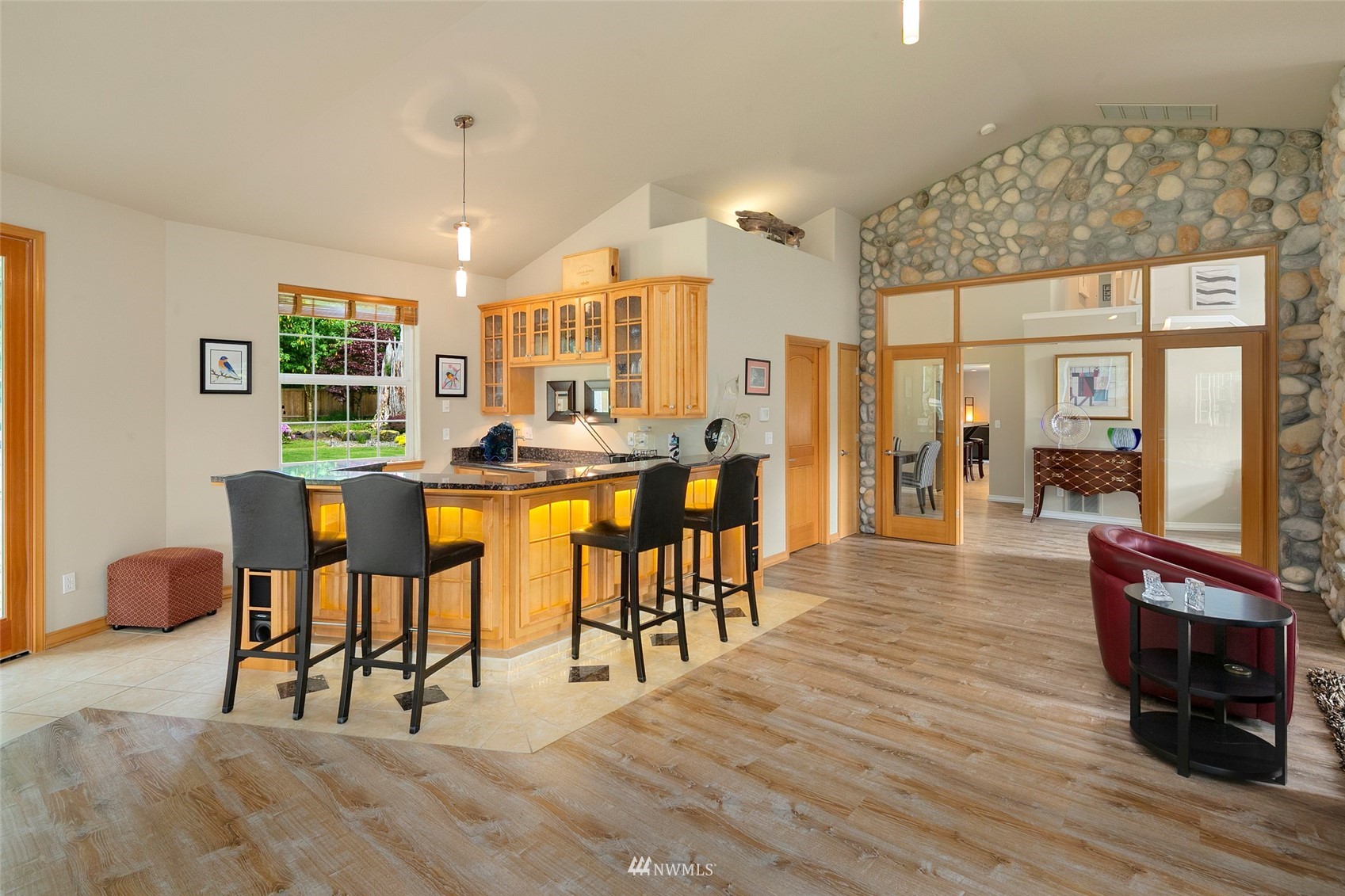 Forced Air Central A/C Ceramic Tile Hardwood Wall to Wall Carpet Laminate Hardwood Wet Bar Wired for Generator Bath Off Primary Double Pane/Storm Window Dining Room French Doors Jetted Tub Skylight(s) Vaulted Ceiling(s) Walk-In Closet(s) Water Heater