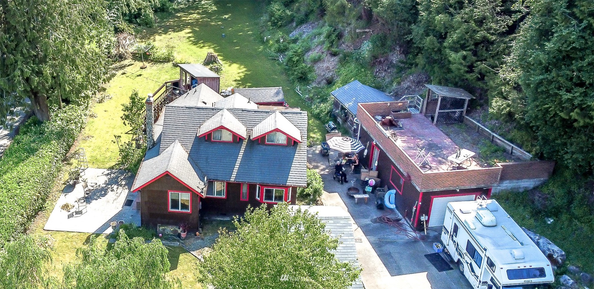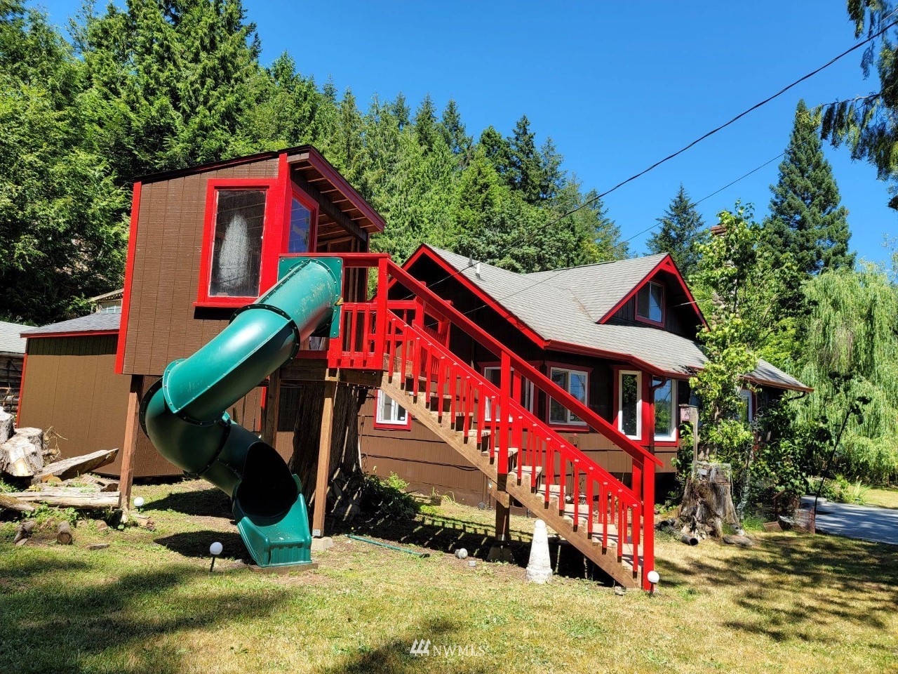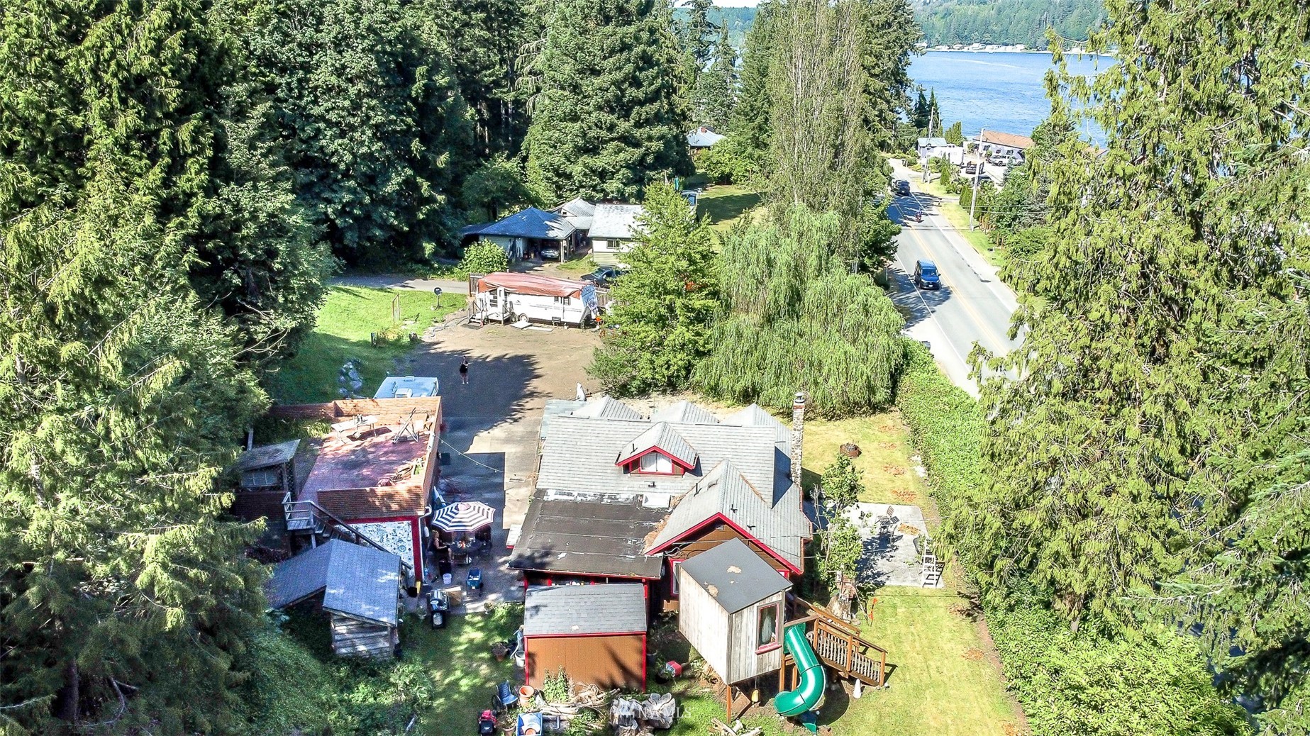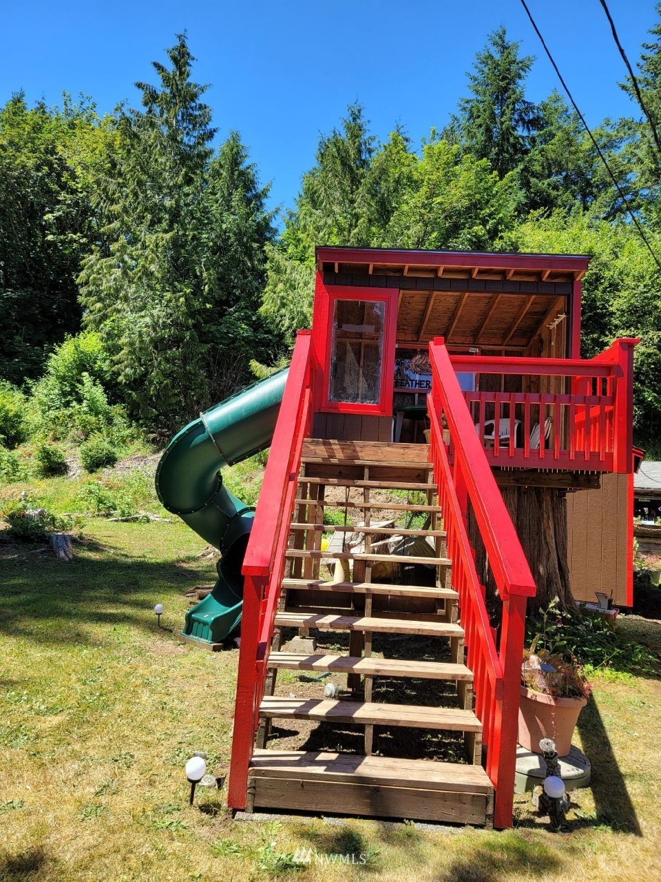 Charming cabin on one acre of picturesque property featuring 3 bedrooms and 1.5 bathrooms. Huge parking area with three RV hookup sites, two 50 amp and one 30 amp and a custom kids play set! The garage has a rooftop deck perfect for enjoying the gorgeous views of North Bay! Easy access to Shelton, Port Orchard, Gig Harbor and Puget Sound Naval Shipyard!