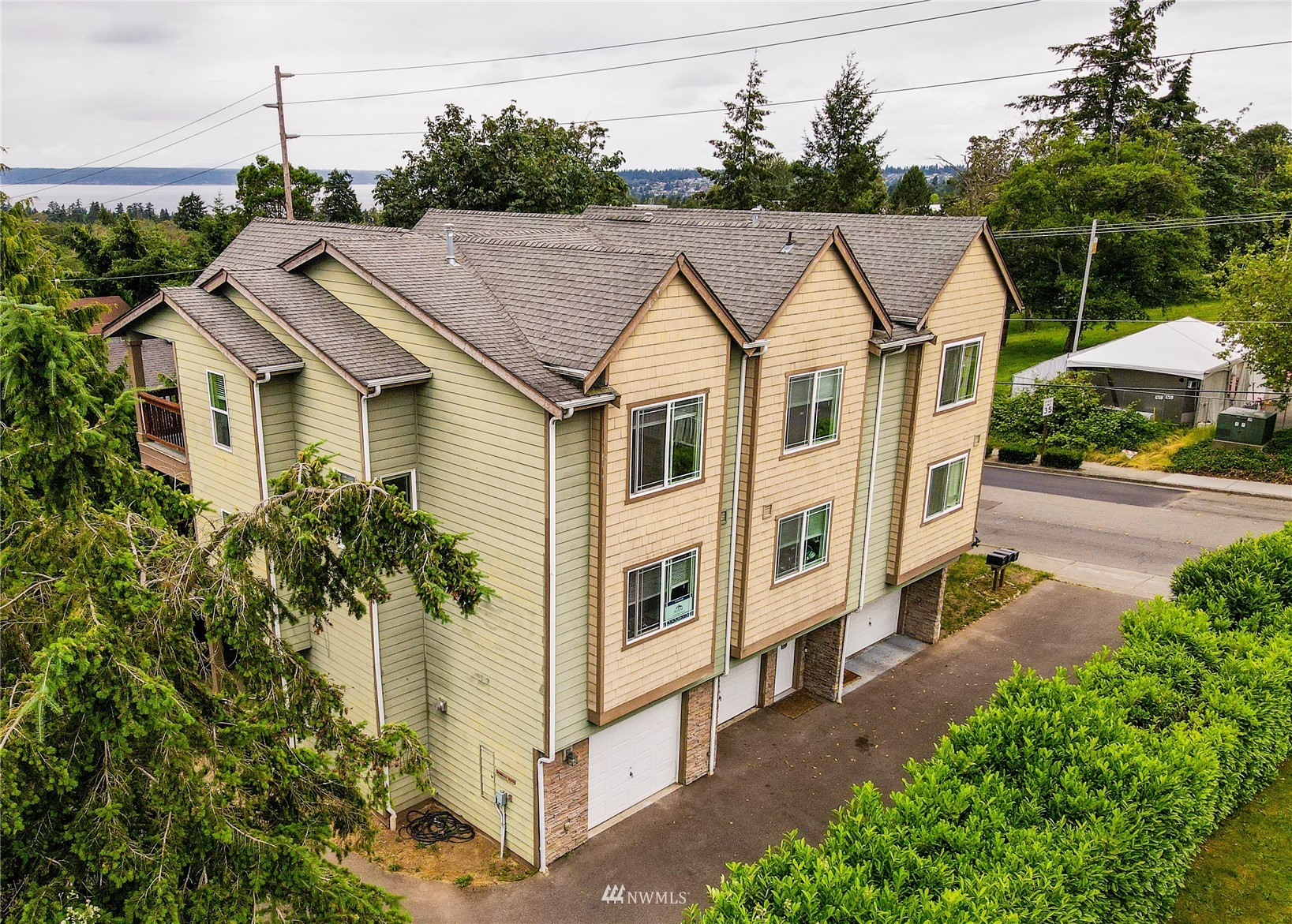Welcome to this lovely 3 Bedroom and 2.5-bath home conveniently located with a great view of the sound. Golden location right in the center of the city of Des Moines, close to I-5, the marina, and the college. This 3 stories end unit townhouse offers a total of 1617 SF of living space. The master suite on the top floor even has its own private balcony with a view of the Puget Sound and Olympic mountains, a huge open concept kitchen, and a family room on the second floor. Brand new refrigerator, and newer oven and microwave. 1 car attached & 2 additional detached garages. Small complex with only 3 units, low HOA dues, and no rental cap.