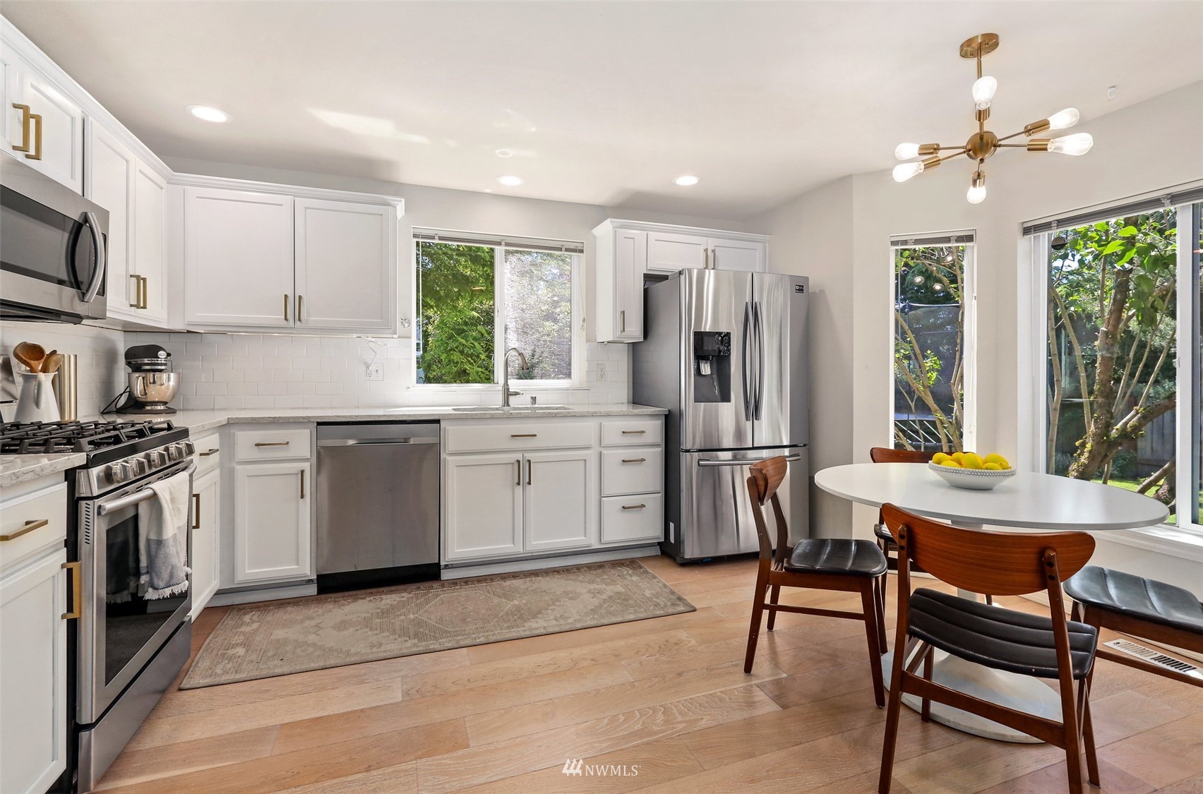 A step above the rest...a rare offering in Maureen Highlands with gorgeous updates & open, airy living space. Bright & spacious floor plan with soaring ceilings & tons of natural light features impressive hardwood floors, updated kitchen with cool modern finishes including quartz counters & large breakfast bar, and primary suite with 5-piece bathroom & walk in closet. Cozy family room with gas fireplace, 4 bedrooms upstairs & a nicely updated main bathroom. Oversize corner lot, one of the biggest in the neighborhood, offers a beautiful, fully fenced yard with excellent privacy & plenty of space to play. Air conditioning, Issaquah schools, convenient location with nearby shopping, an incredible value in a highly desired neighborhood!