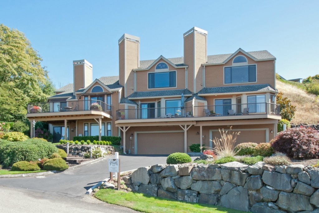 Welcome to Spyglass in Steilacoom! Enjoy Panoramic Sound & Olympic views from this modern, updated town-home condo. Just some of the upgrades; New carpet & paint, New furnace, heat pump, water heater, remodeled bathrooms, slab granite in kitchen, interior paint & Fibreglass windows. The Master Suite features large picture windows & sweeping views. Fireplaces on 2 levels. Original owners! Enjoy watching ferry crossings & sunsets from your large main floor deck or master suite. 2 car garage.