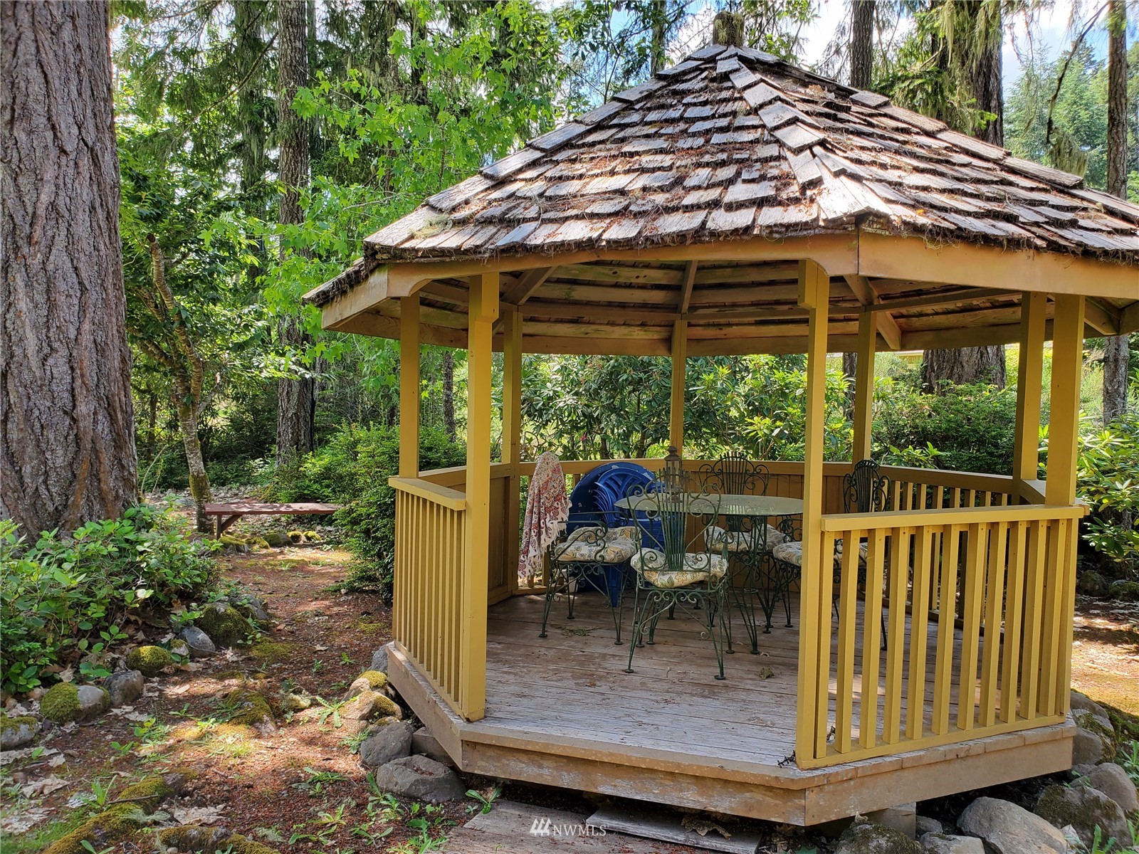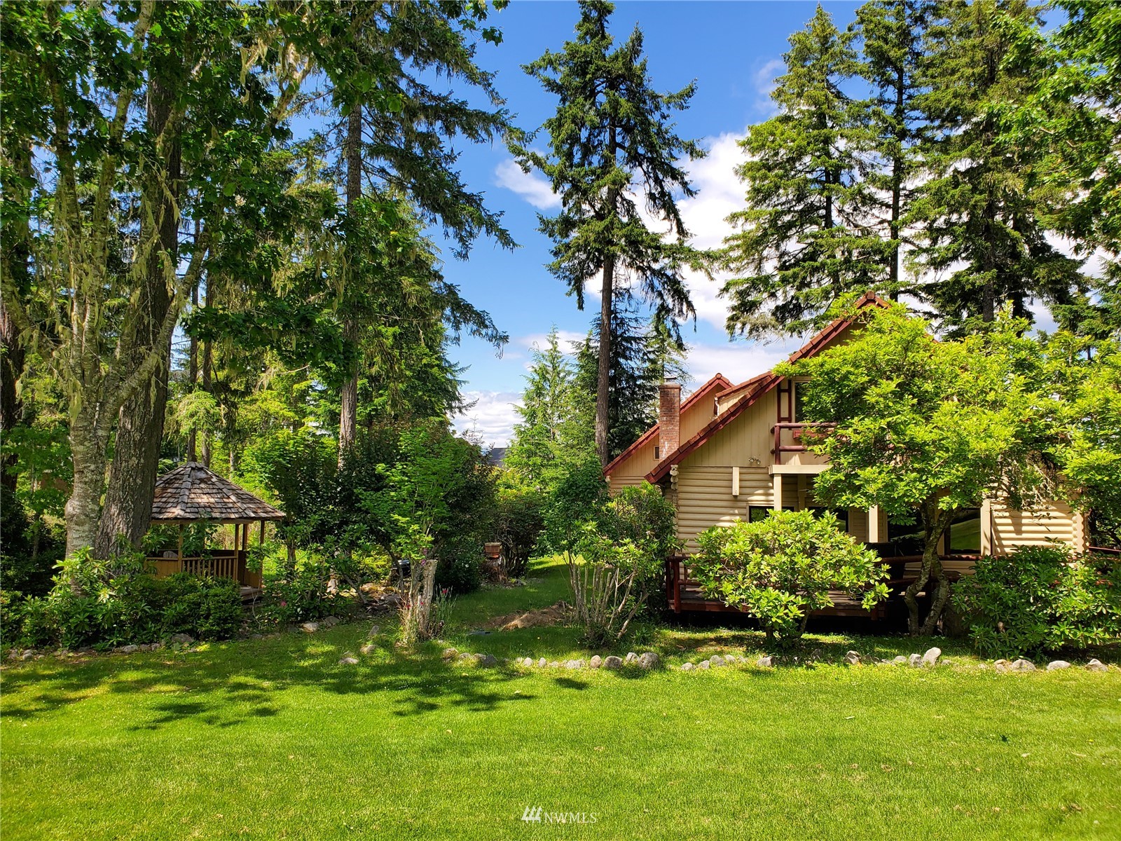 Back on Market with a BIG price reduction! This log home on Alderbrook's 16th green is a truly unique find and is waiting for a new owner. There is a Primary Bedroom Suite over the main home and two more bedrooms over the HUGE garage, one of which has its own kitchenette. The property is beautifully maintained with gorgeous landscaping and a gazebo just off the golf course for you to relax and watch the golfers. So many unique and personal touches throughout this home make it a home with character. Alderbrook living offers unlimited golf for two residents, the Alderbrook Clubhouse (a short walk or golf cart ride away!), and community trails to enjoy. Come see this one today!