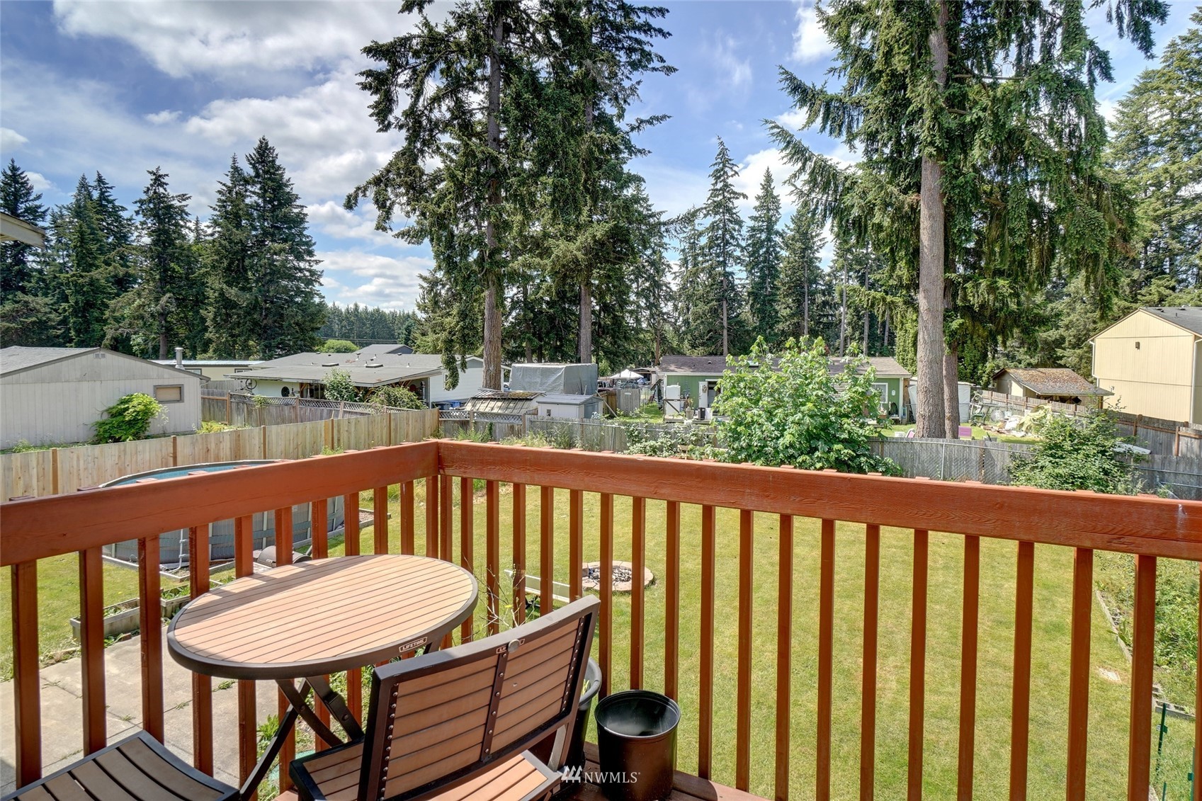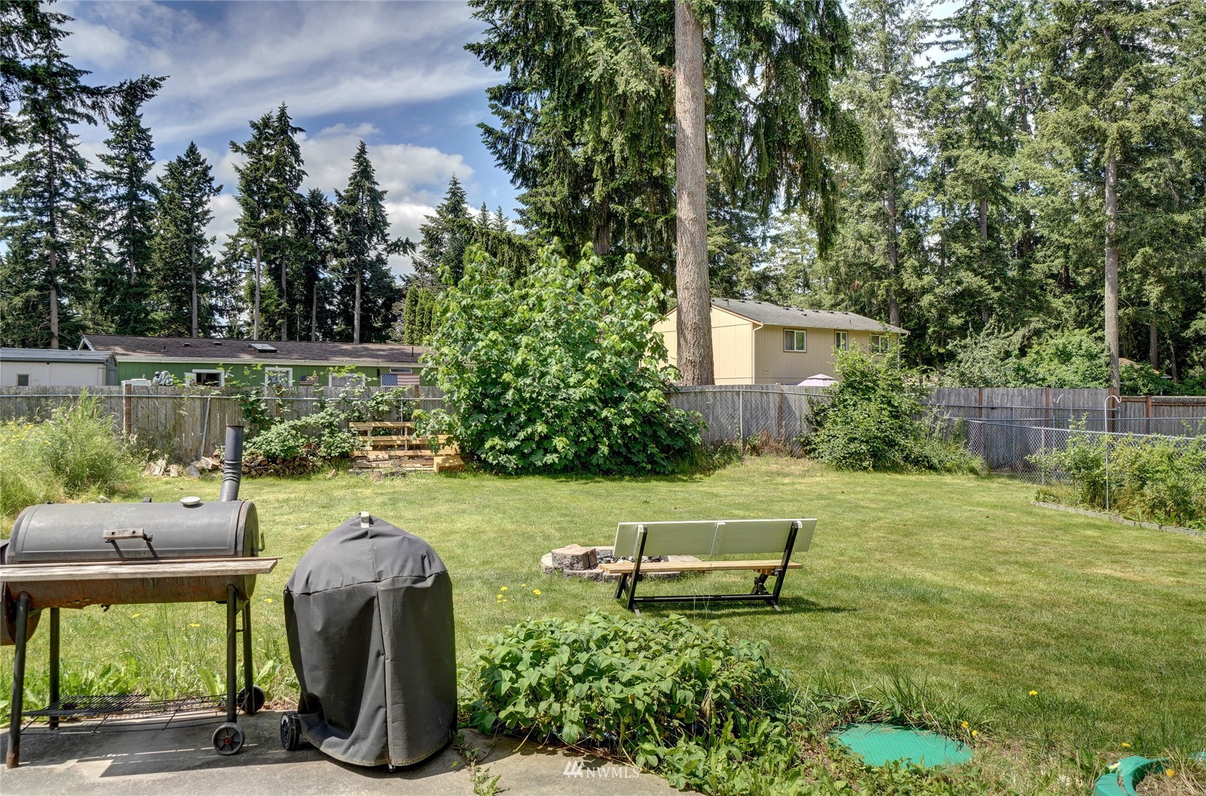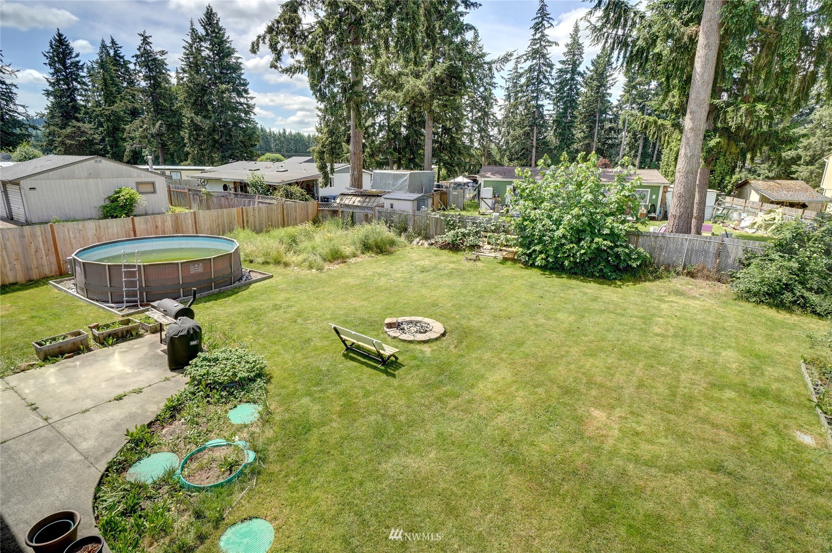 $7,000 Seller paid Buyer Bonus at closing! 1339sf 3 bed, 2 full bath, .19 acres, built in 2006. No HOA's! 7 miles to JBLM East Gate. Lives like additional living space with bedroom, full bath and living room on lower level. Updates include carpet, doors, trim, new Vinyl plank & paint-down. Upper floor has bamboo floors in kitchen & dining, 2 beds, full bath and another living room. Deck off Dining Rm. Newer range, hot water heater, washer, dryer, chest freezer! Built in security system w/2 cameras. Enjoy your above ground pool- 16x4 w/lifetime filter! Large backyard with raised garden areas, fruit trees & berries. Enjoy outdoor living on the large concrete patio, 10'&16'Wx40'L! Oversized 2 car garage with cut out for laundry. RV parking.