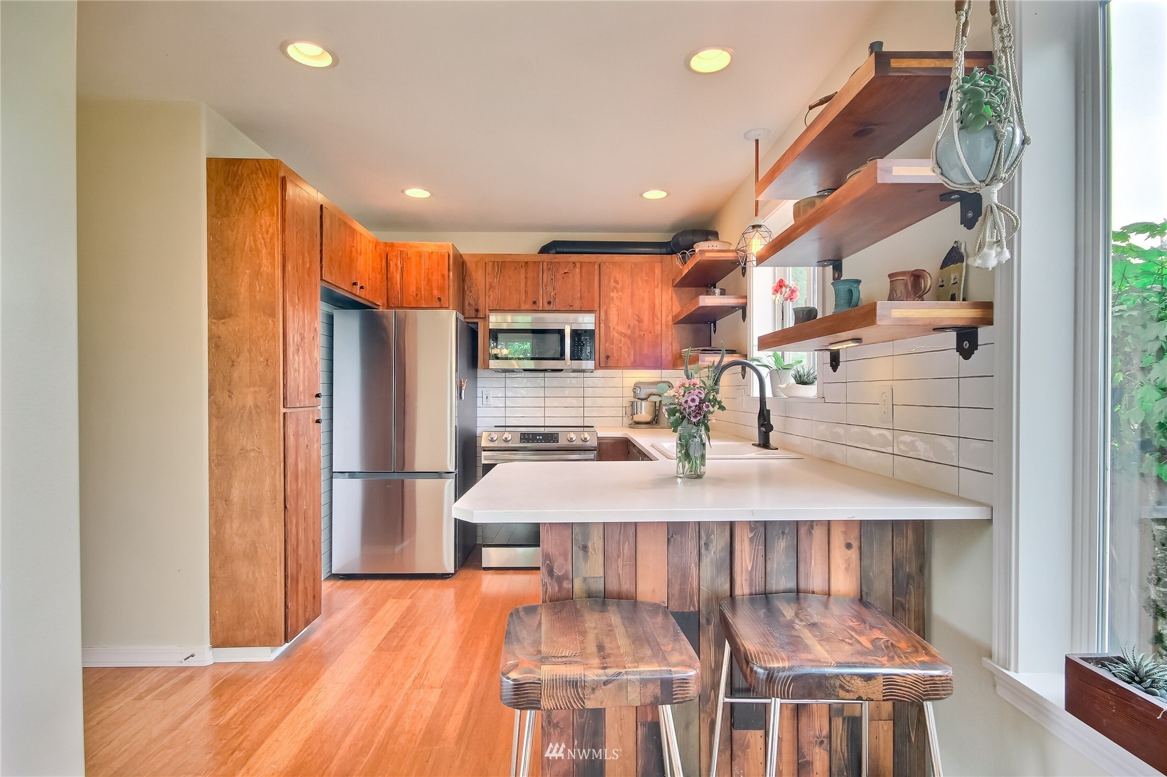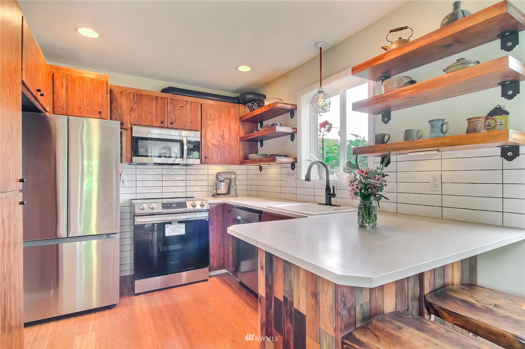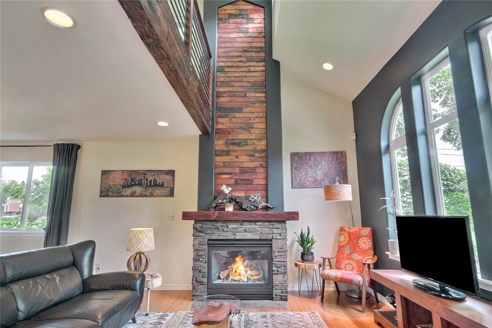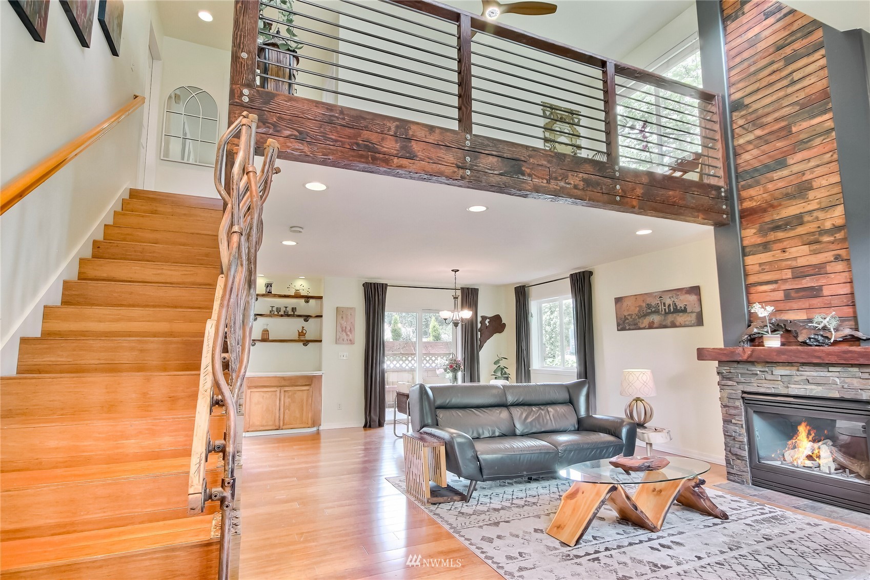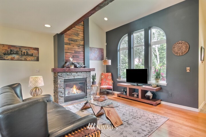 Spectacular one of a kind 2 bed, 2.25 bath +loft end unit w/ over $100k in custom upgrades! Eye-popping wood craftsmanship throughout, w/ hand built wood shelving, accents & railings. Gorgeous wide plank engineered floors on both levels, vaulted ceilings, gas fireplace. Newly refinished, expansive deck & outdoor sitting area w/ custom planter boxes, pavers,& potted plants. Kitchen features all new appliances, quartz slab countertops, & real wood cabinets recently refaced & stained. Awe-inspiring Master Suite, hand-built sliding barn door leading to large walk-in closet & fully upgraded attached bath. Gated community located close to waterfront park, trendy shops, markets, restaurants, & rapid ride! Easy commute to Sea-Tac Airport & Seattle.