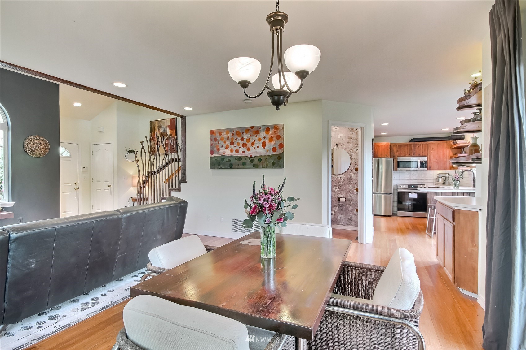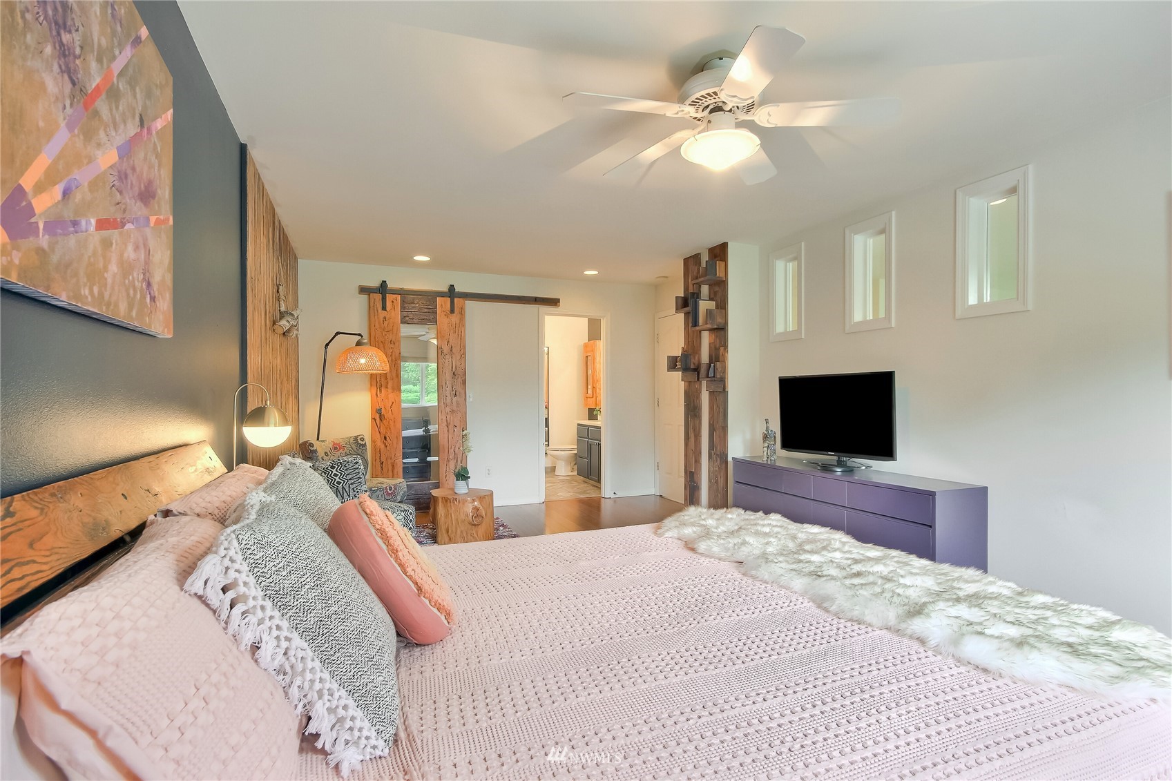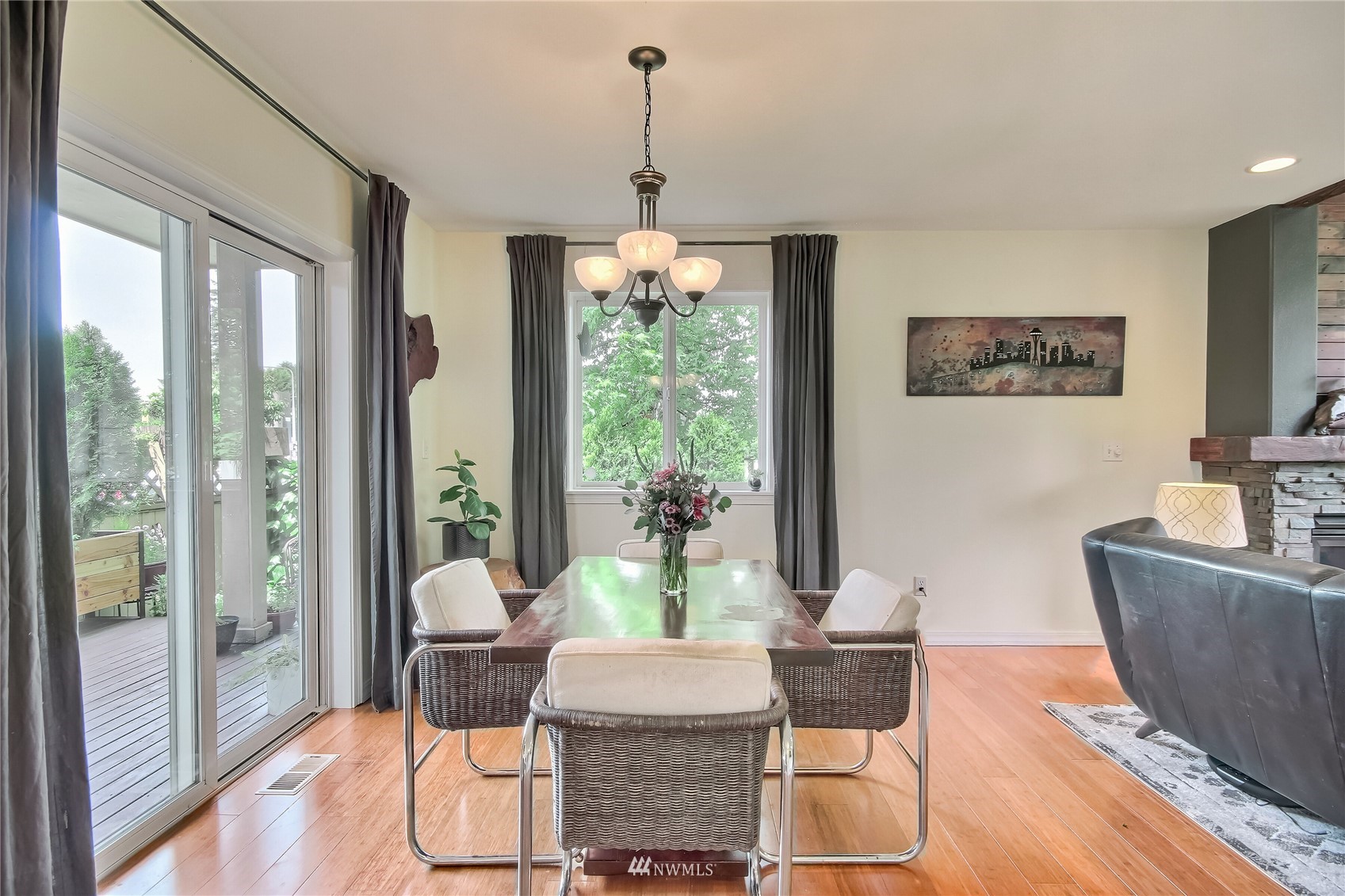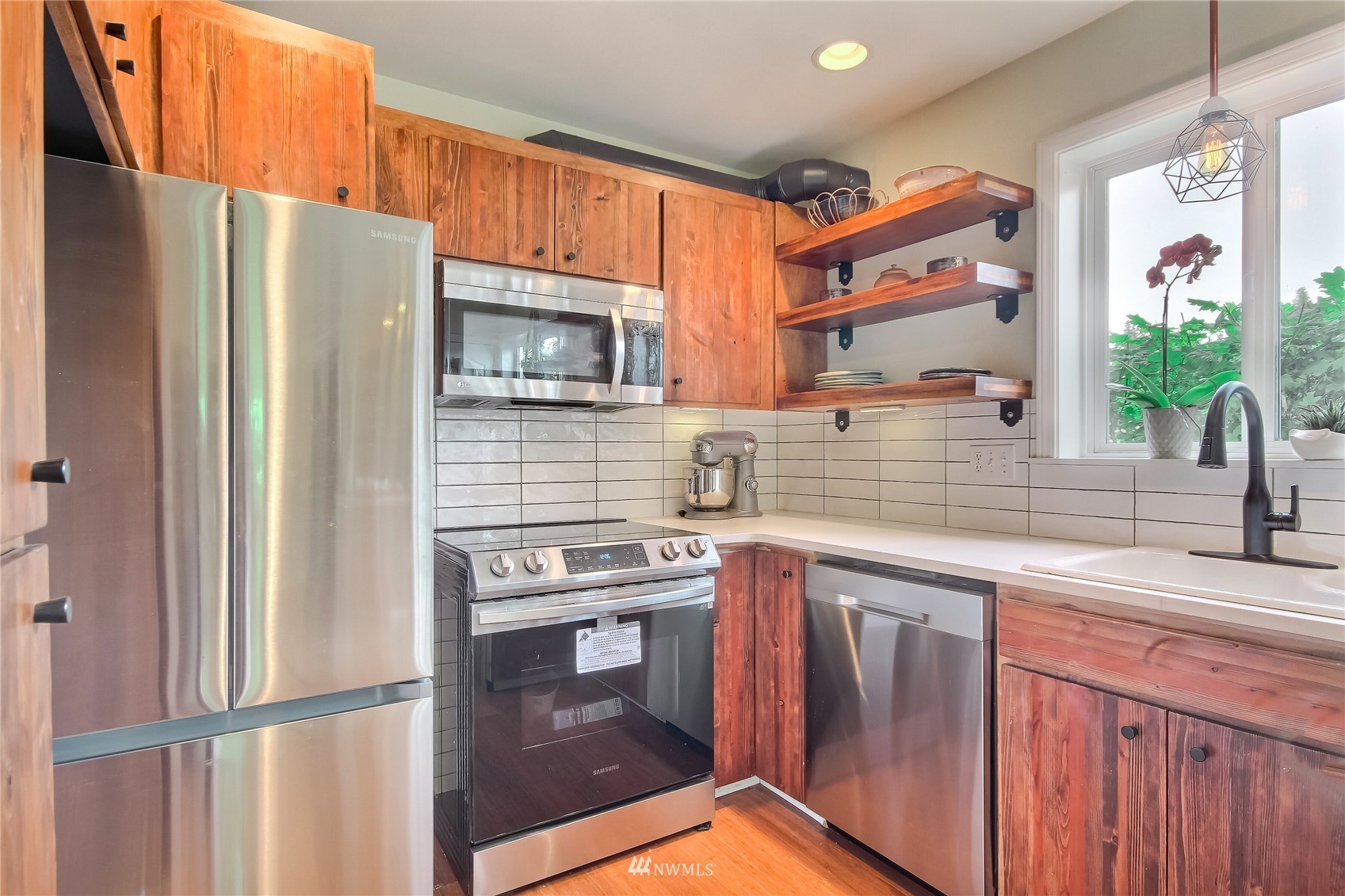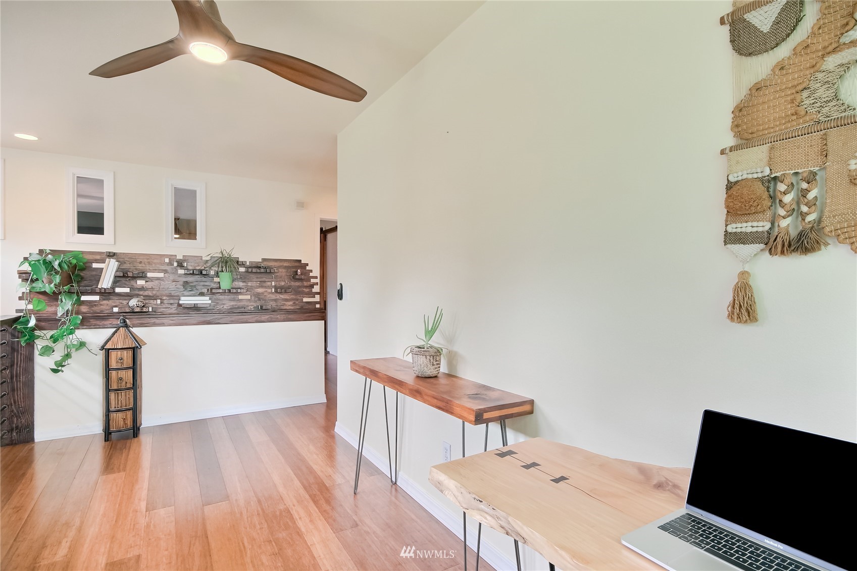 Spectacular one of a kind 2 bed, 2.25 bath +loft end unit w/ over $100k in custom upgrades! Eye-popping wood craftsmanship throughout, w/ hand built wood shelving, accents & railings. Gorgeous wide plank engineered floors on both levels, vaulted ceilings, gas fireplace. Newly refinished, expansive deck & outdoor sitting area w/ custom planter boxes, pavers,& potted plants. Kitchen features all new appliances, quartz slab countertops, & real wood cabinets recently refaced & stained. Awe-inspiring Master Suite, hand-built sliding barn door leading to large walk-in closet & fully upgraded attached bath. Gated community located close to waterfront park, trendy shops, markets, restaurants, & rapid ride! Easy commute to Sea-Tac Airport & Seattle.