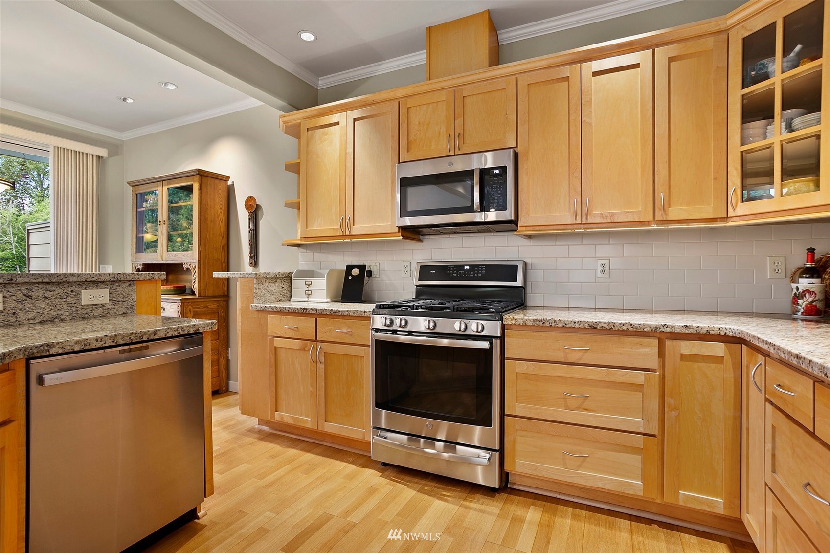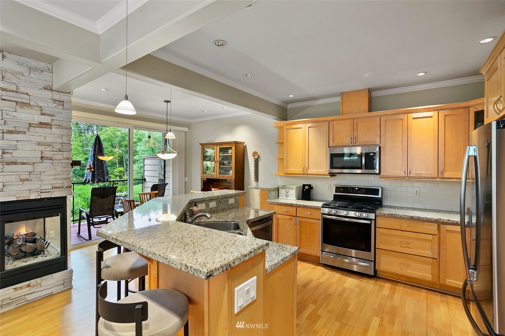 Set in a truly picturesque, park-like setting, this immaculate 3 bed, 3 bath home is a paradigm of contemporary Mill Creek living. This home was designed and built for the builder themselves with no expense spared. Features of this 2,361sf home include: Stunning views of community pond and trails, custom wine cellar, huge windows with 10’ vaulted ceilings & NE facing with radiant heating. Open-concept living, dining, and kitchen on the main level. Gourmet kitchen with granite counters & SS appliances. Upper floor hosts primary bed with a 5 piece en-suite & large WIC. Lower level bonus room includes cozy gas FP, den/office & additional ½ bath. Minutes to Mill Creek Town Center by North Creek Trail. Too many upgrades to list! Pre-Inspected!