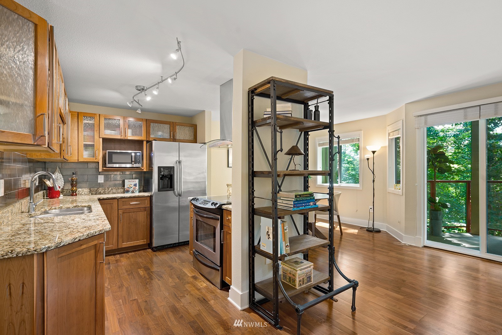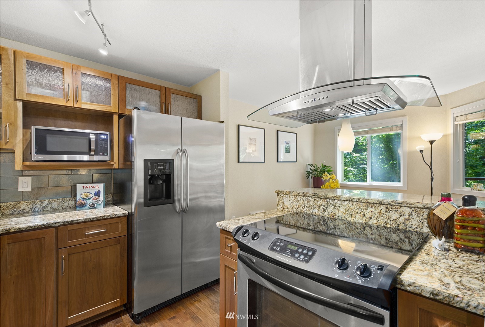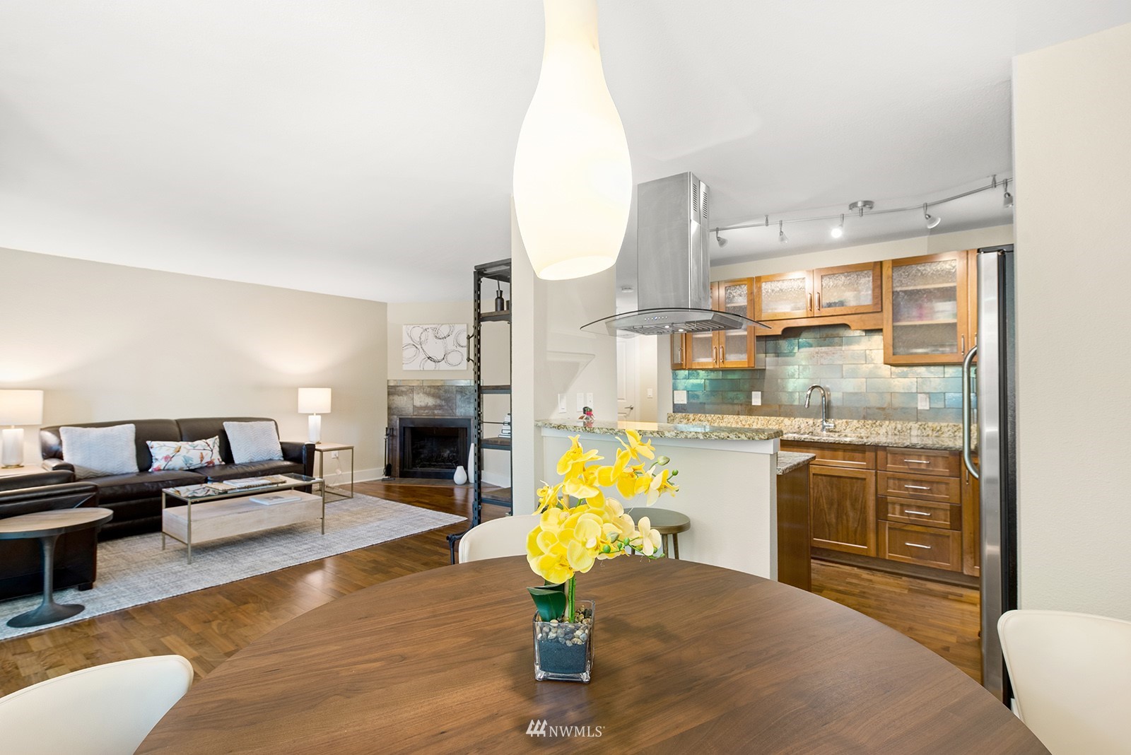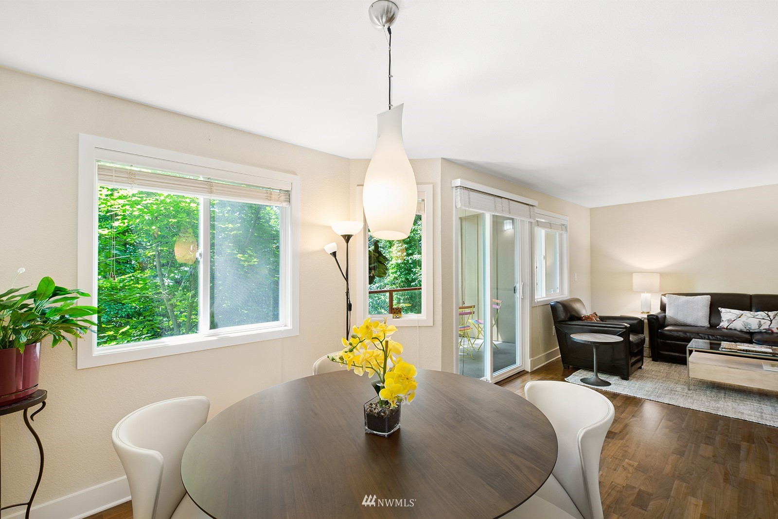 This is a Stellar Location for this beautiful, two bedroom updated condo in Bellevue. Steps away from the Cross Kirkland Corridor Trail for biking, running and walking. Kitchen with slab granite countertops, cherry wood cabinetry and stainless appliances offers counter seating for two. Dining area is light-filled and overlooks the spacious deck, a great place for summer dining! Wood-burning fireplace is the thing to have on those colder evenings. Storage off deck is quite spacious. Your carport is conveniently located in front of the unit. Pets OK, with some restrictions. Low Dues! Near Park and Ride, 520 and I-405 access. Lake Washington Schools.