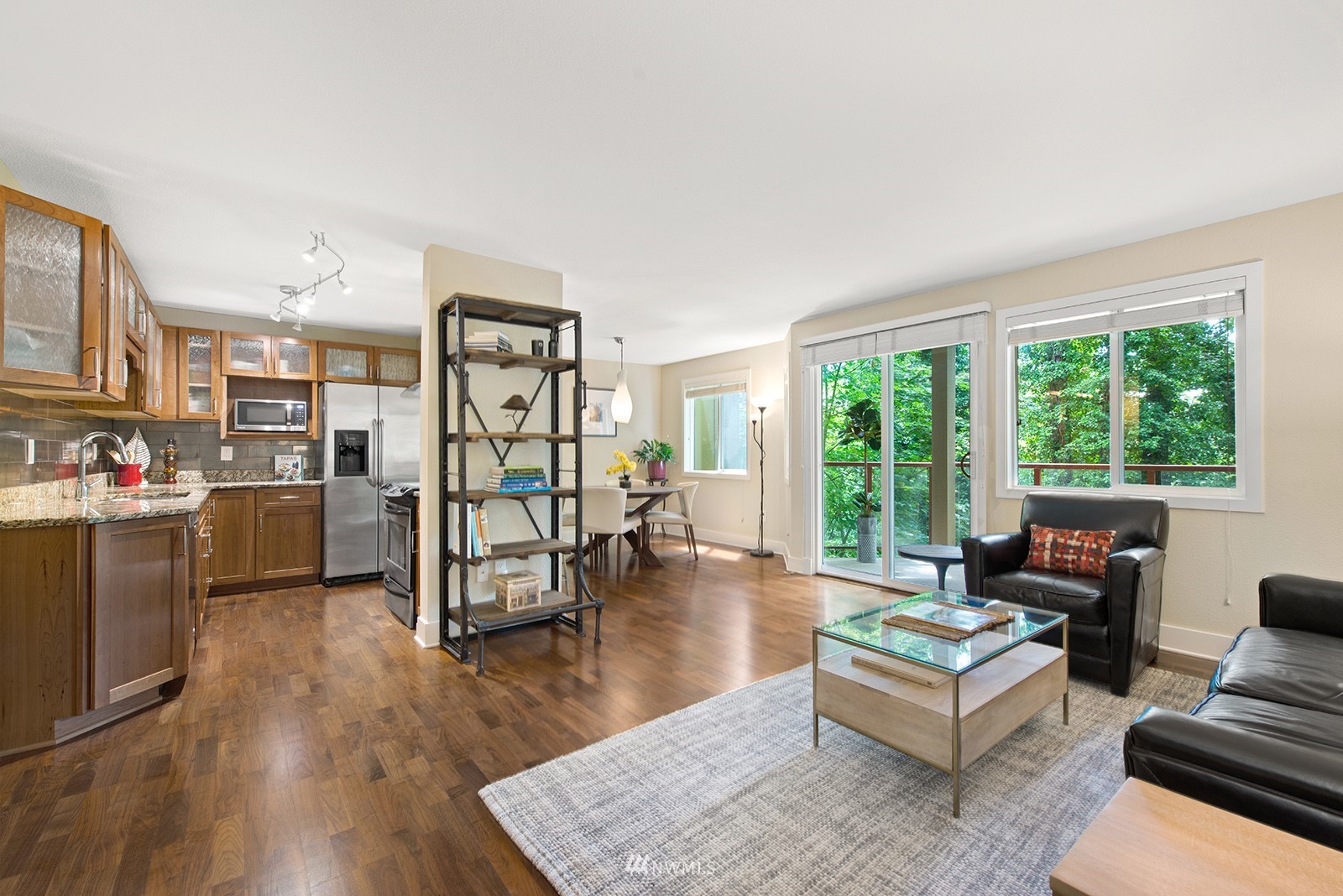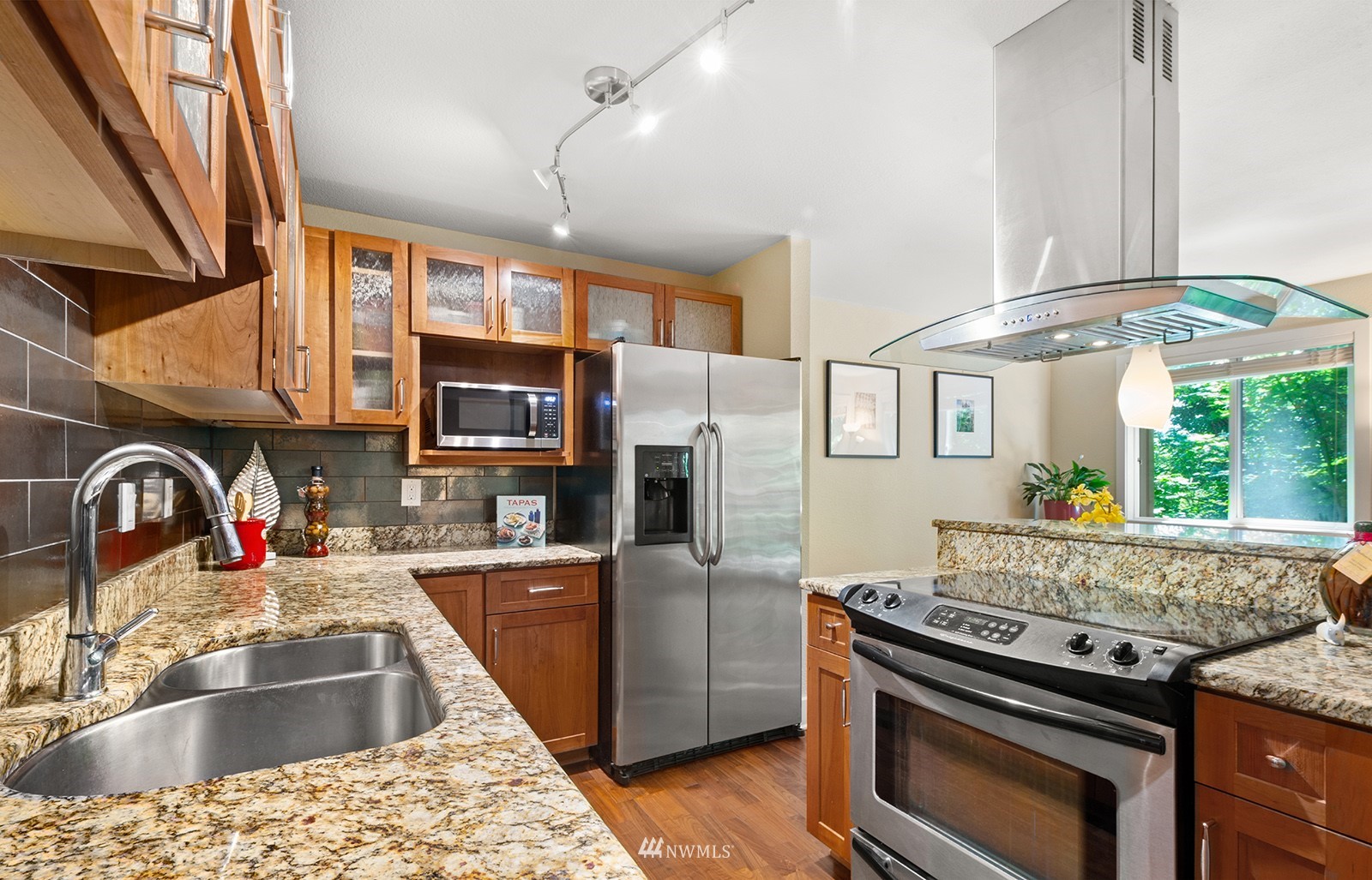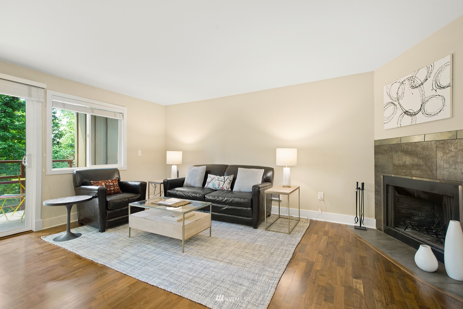 This is a Stellar Location for this beautiful, two bedroom updated condo in Bellevue. Steps away from the Cross Kirkland Corridor Trail for biking, running and walking. Kitchen with slab granite countertops, cherry wood cabinetry and stainless appliances offers counter seating for two. Dining area is light-filled and overlooks the spacious deck, a great place for summer dining! Wood-burning fireplace is the thing to have on those colder evenings. Storage off deck is quite spacious. Your carport is conveniently located in front of the unit. Pets OK, with some restrictions. Low Dues! Near Park and Ride, 520 and I-405 access. Lake Washington Schools.