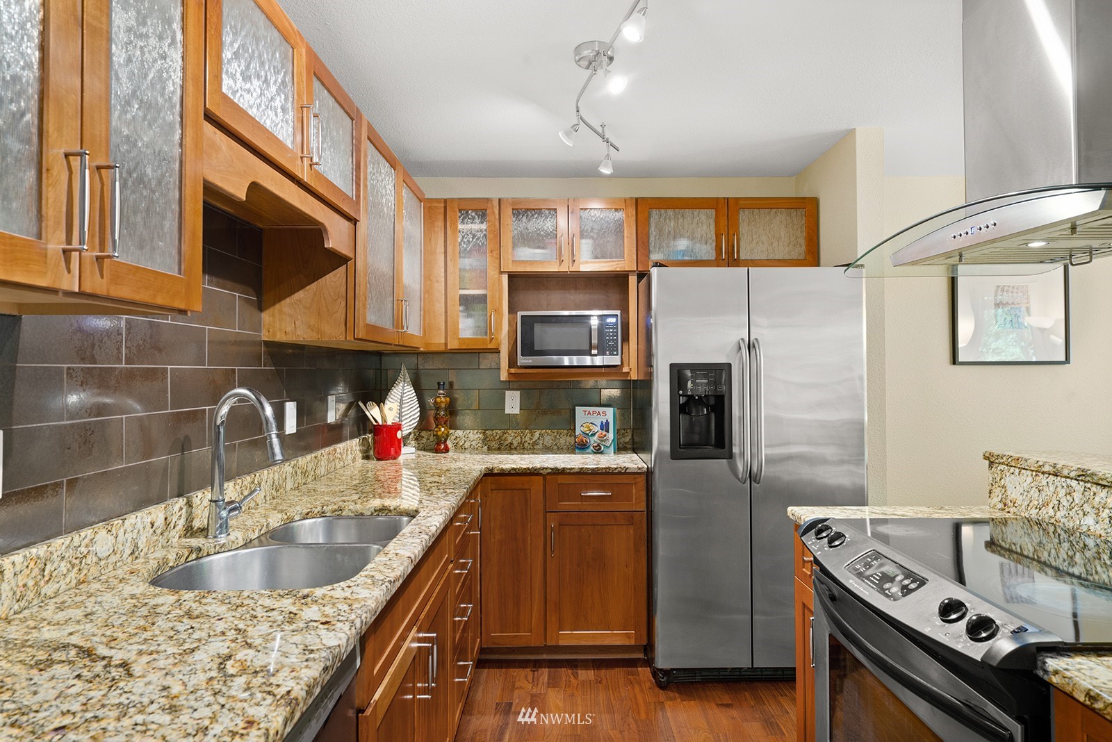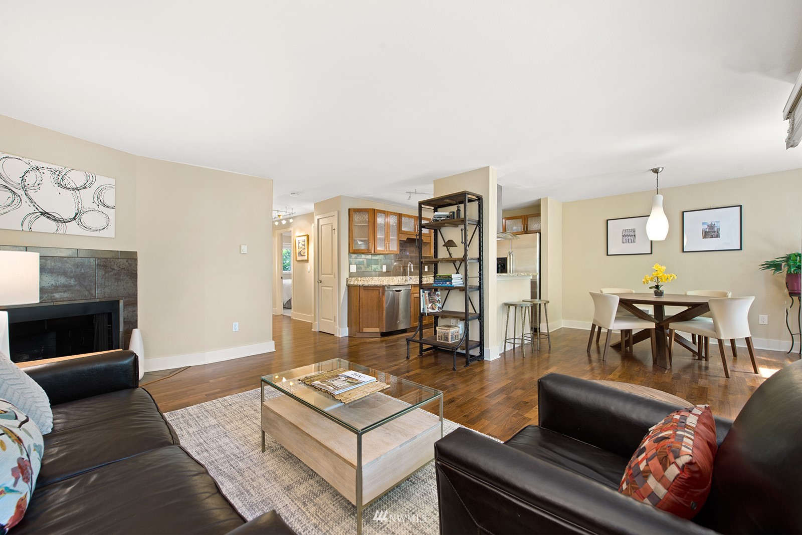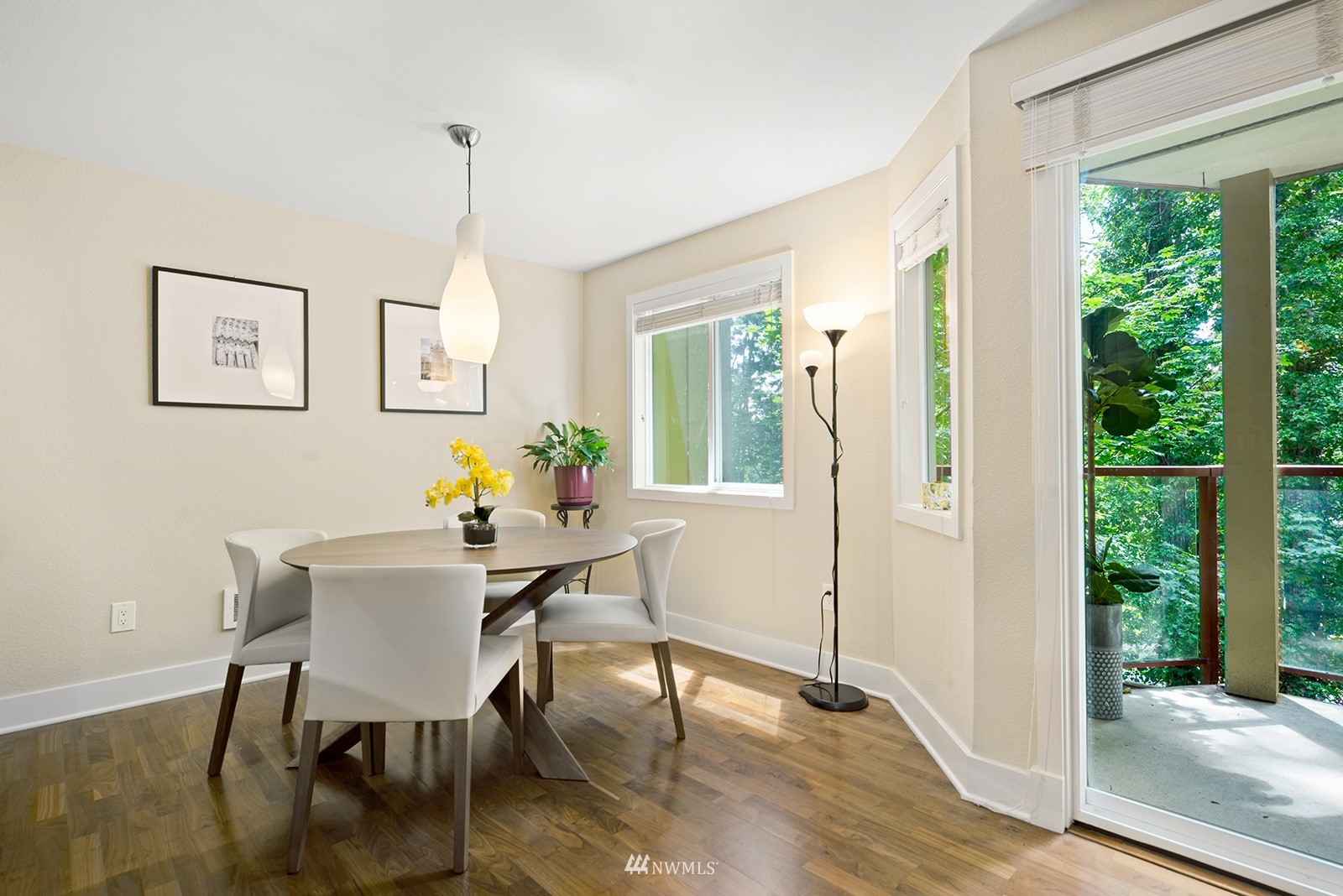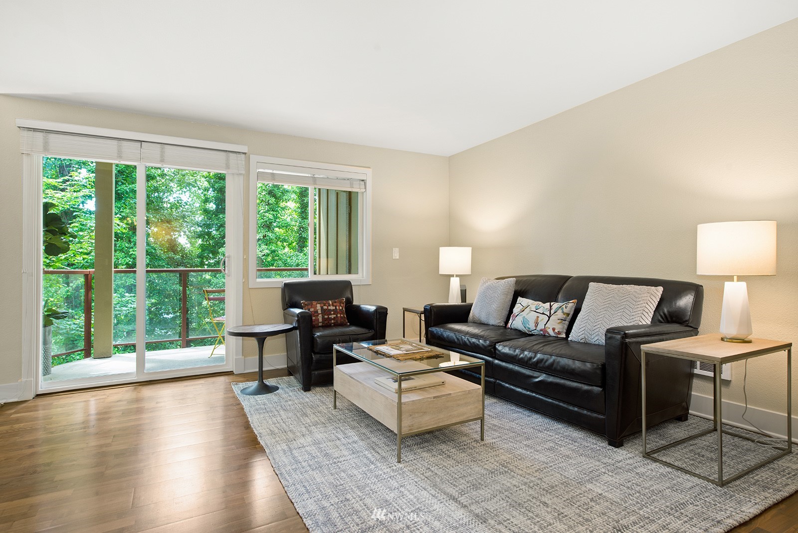 This is a Stellar Location for this beautiful, two bedroom updated condo in Bellevue. Steps away from the Cross Kirkland Corridor Trail for biking, running and walking. Kitchen with slab granite countertops, cherry wood cabinetry and stainless appliances offers counter seating for two. Dining area is light-filled and overlooks the spacious deck, a great place for summer dining! Wood-burning fireplace is the thing to have on those colder evenings. Storage off deck is quite spacious. Your carport is conveniently located in front of the unit. Pets OK, with some restrictions. Low Dues! Near Park and Ride, 520 and I-405 access. Lake Washington Schools.