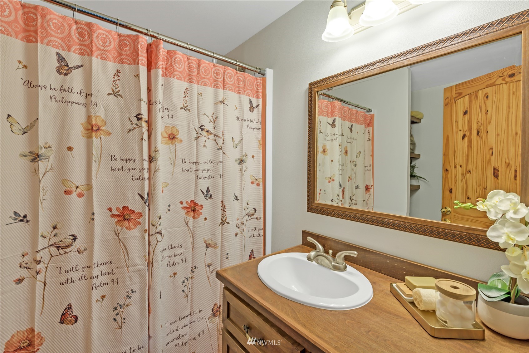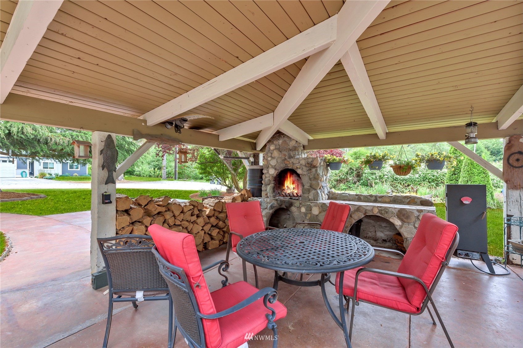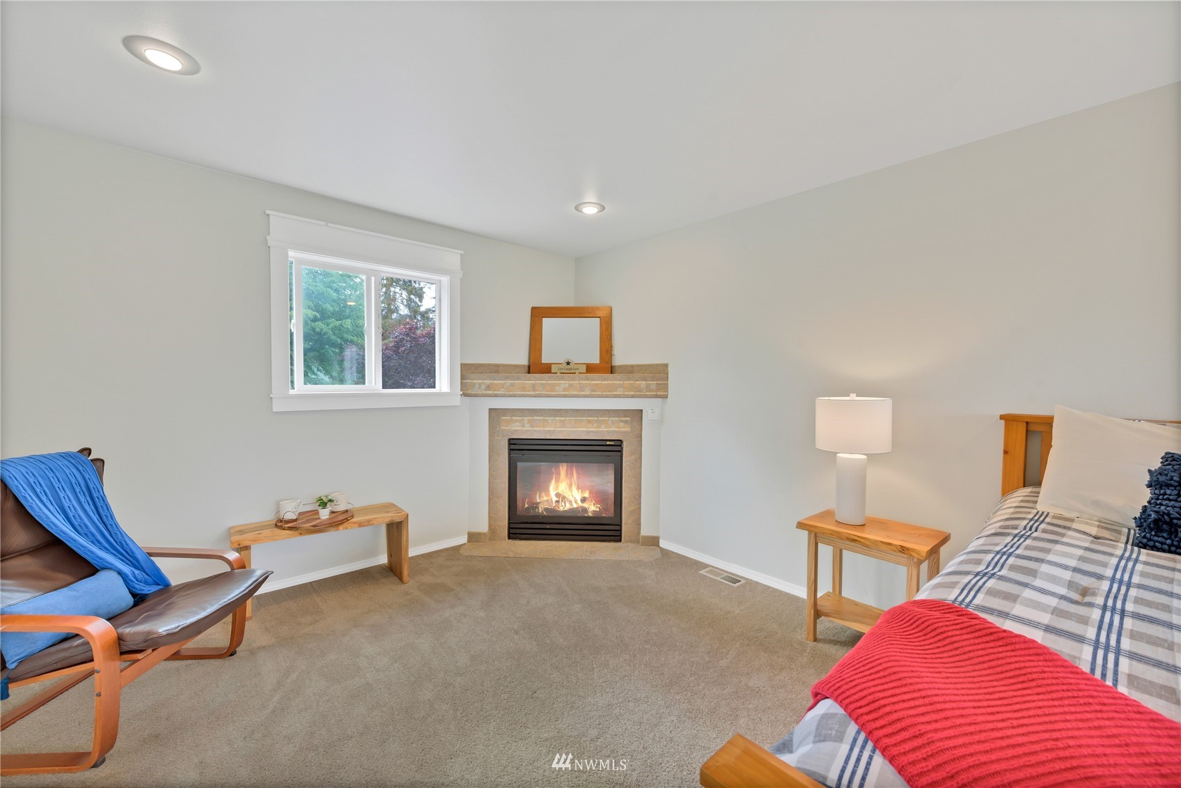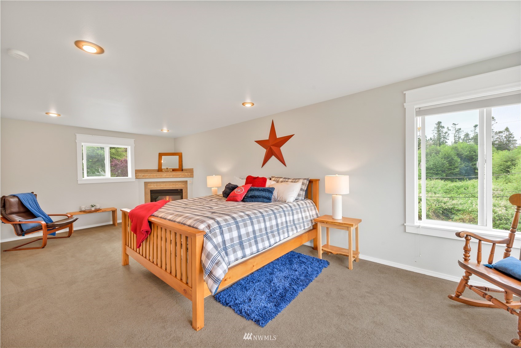Perfect for multi-generational living! Gorgeous .63 acre lot with sound and mountain views. Partially fenced with a 24'x30' shop, RV parking, and plenty of room for toys. The covered patio has a rock finished fireplace. Enjoy the double pond and waterfall feature. Inside you'll find 2,675sf of spacious living. The kitchen has a breakfast bar and walk-in pantry, and plenty of storage. There's an office, living room, family room, and second primary suite on the main level. The upstairs primary has sound and mountain views & a romantic fireplace. The en suite has a jetted tub and walk-in closet. 50 yr roof is a year old, with a one time transferrable warranty. Minutes to two state parks. Deer and wildlife abound.
