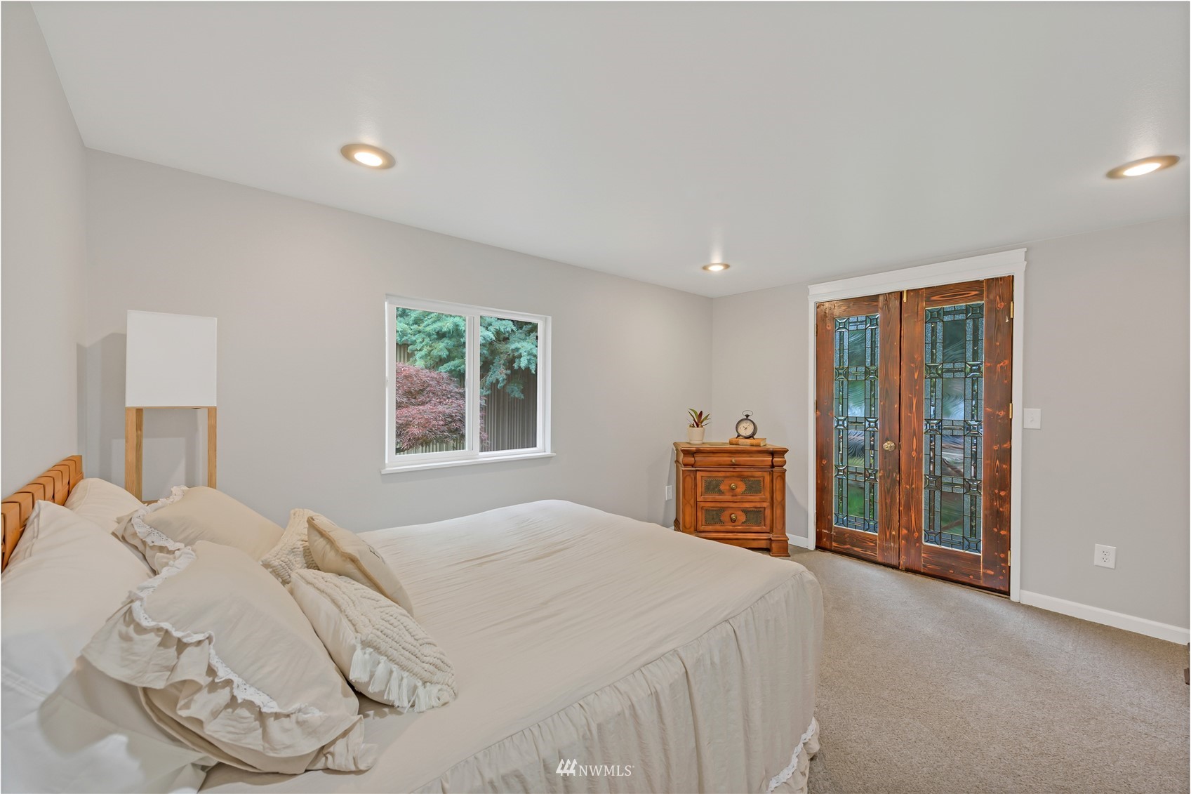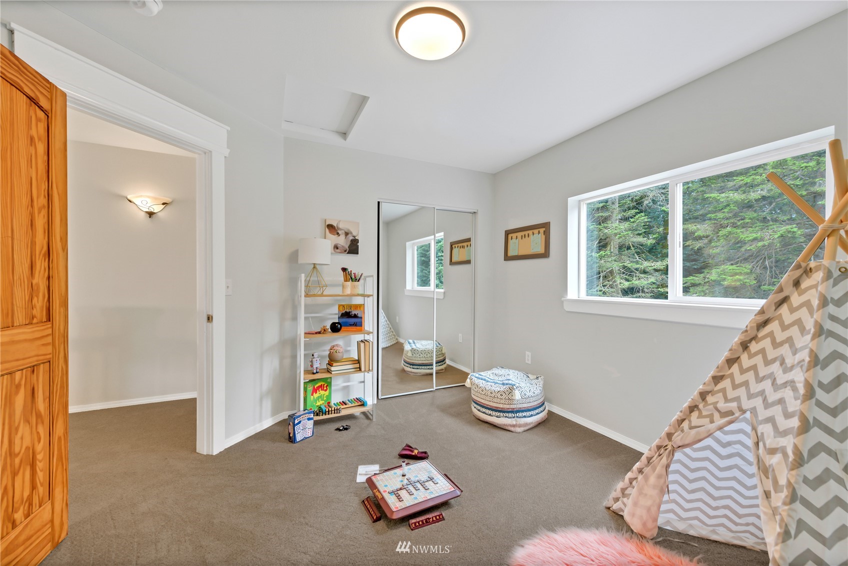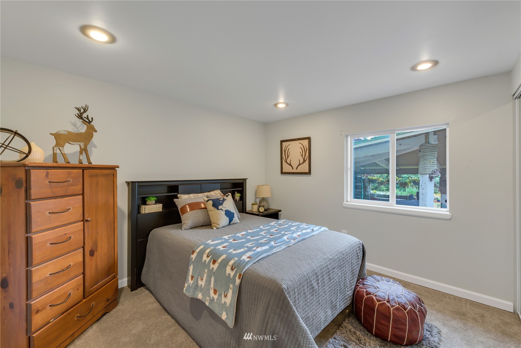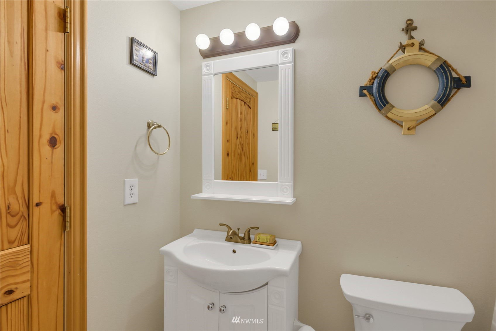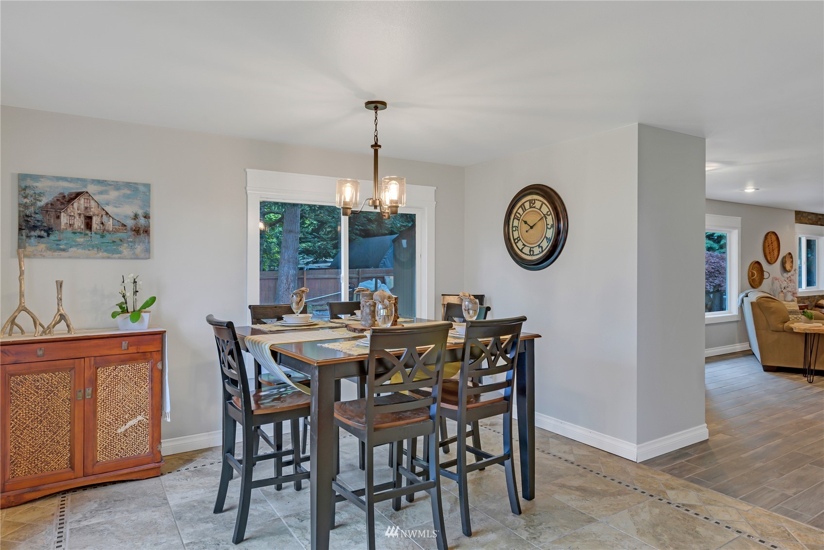 Perfect for multi-generational living! Gorgeous .63 acre lot with sound and mountain views. Partially fenced with a 24'x30' shop, RV parking, and plenty of room for toys. The covered patio has a rock finished fireplace. Enjoy the double pond and waterfall feature. Inside you'll find 2,675sf of spacious living. The kitchen has a breakfast bar and walk-in pantry, and plenty of storage. There's an office, living room, family room, and second primary suite on the main level. The upstairs primary has sound and mountain views & a romantic fireplace. The en suite has a jetted tub and walk-in closet. 50 yr roof is a year old, with a one time transferrable warranty. Minutes to two state parks. Deer and wildlife abound.