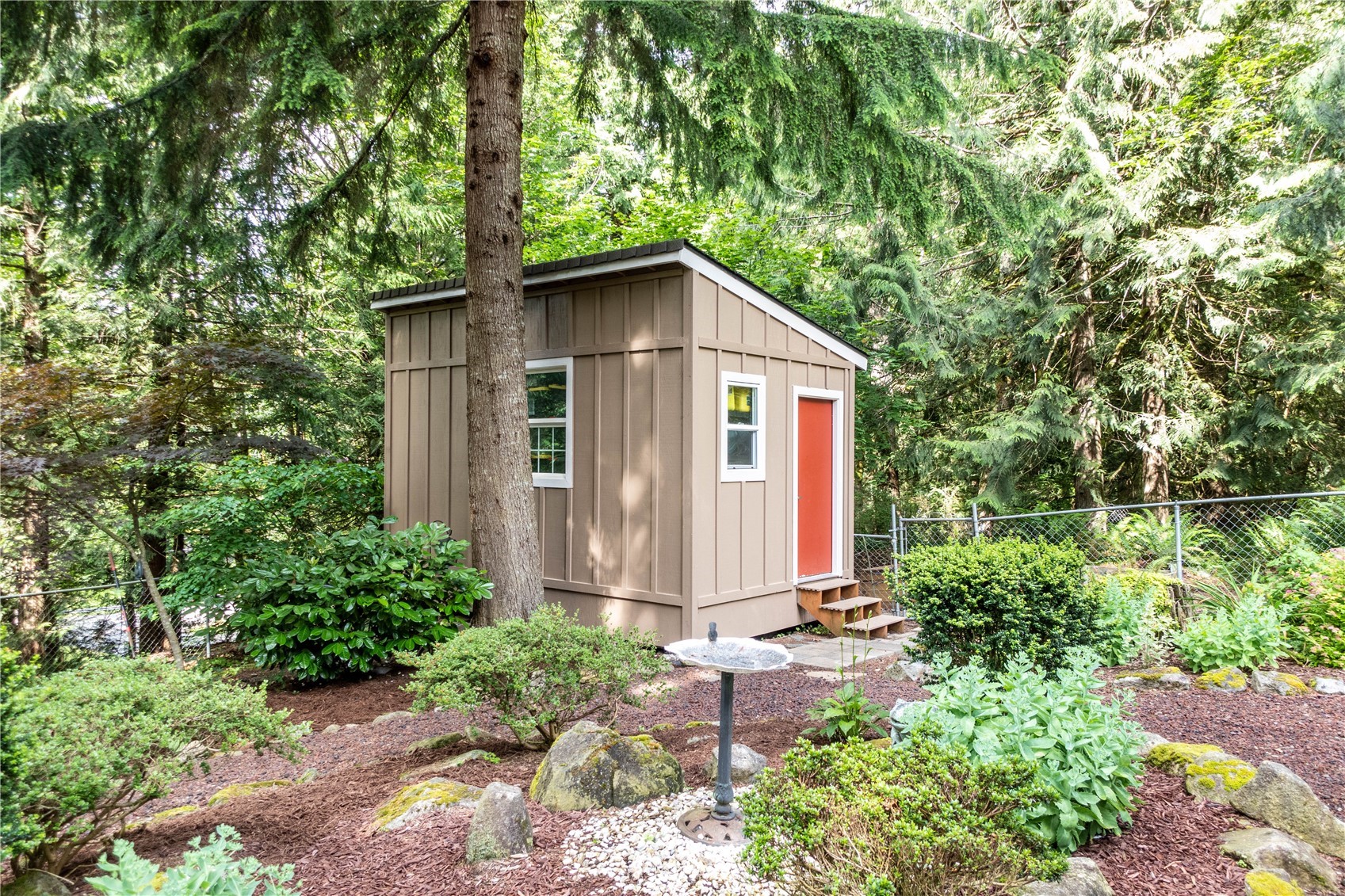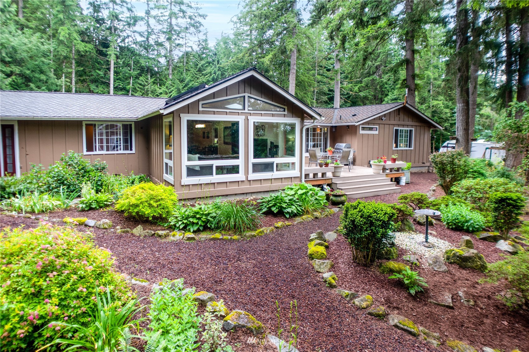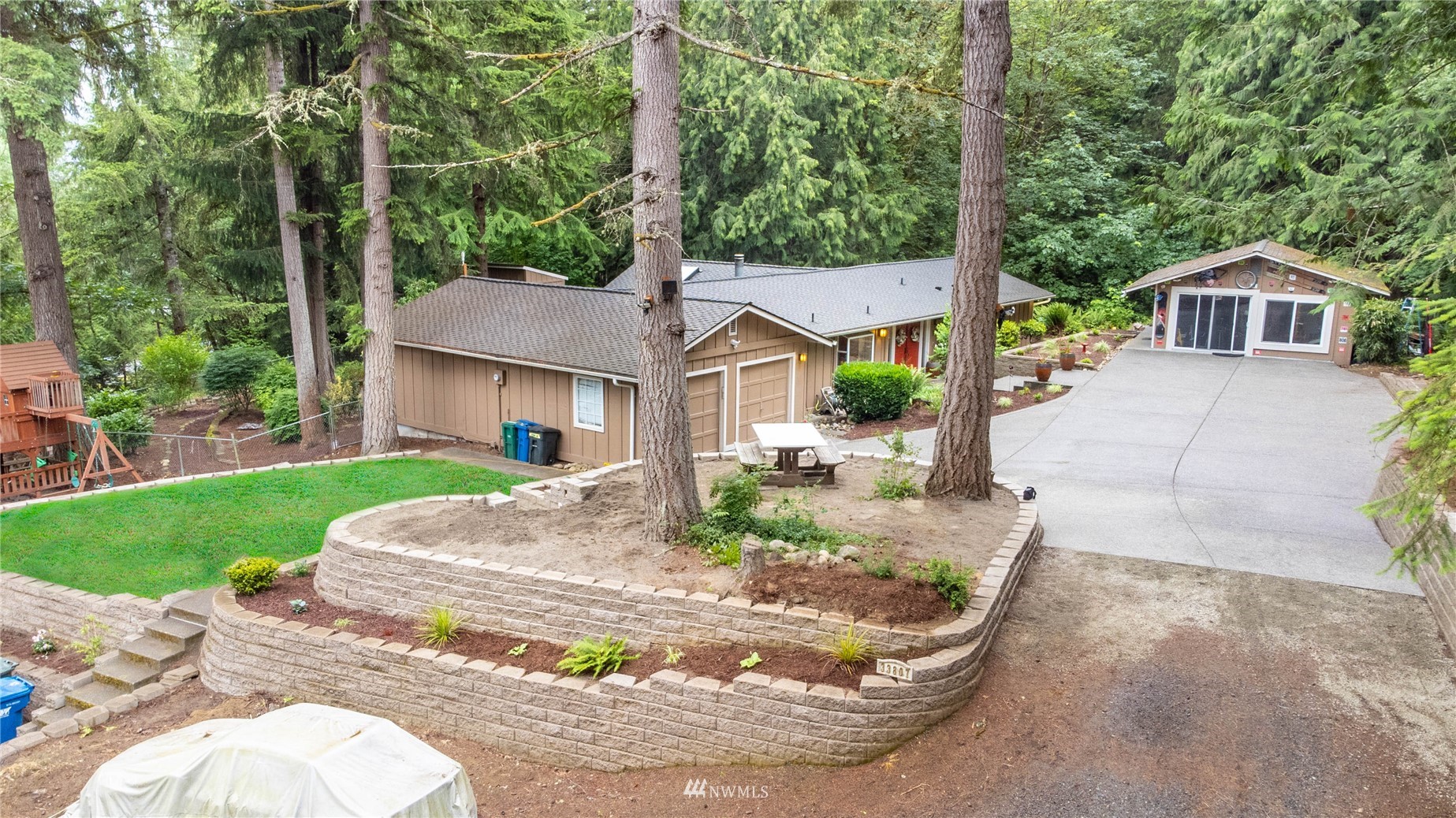 Move-in ready this hidden one level living is at its best. Tucked away in the quiet community of Heather Crest location. Conveniently located just minutes to shops, dining, schools, river, parks and trails. Gardener's dream on shy acre w/fenced back yard, garden, play area, picnic area, studio and RV Parking. Enjoy territorial views, sound of creek from entertaining deck Extra parking. Primary bedroom with walk-in closet has French doors allowing you to step down to the garden. Family rm w/wood fireplace, built-in shelves, hardwood floors, updated windows, living/dining w/vaulted ceiling, skylights, extra storage + award-winning schools. Quick access to I 90 makes commuting a breeze.