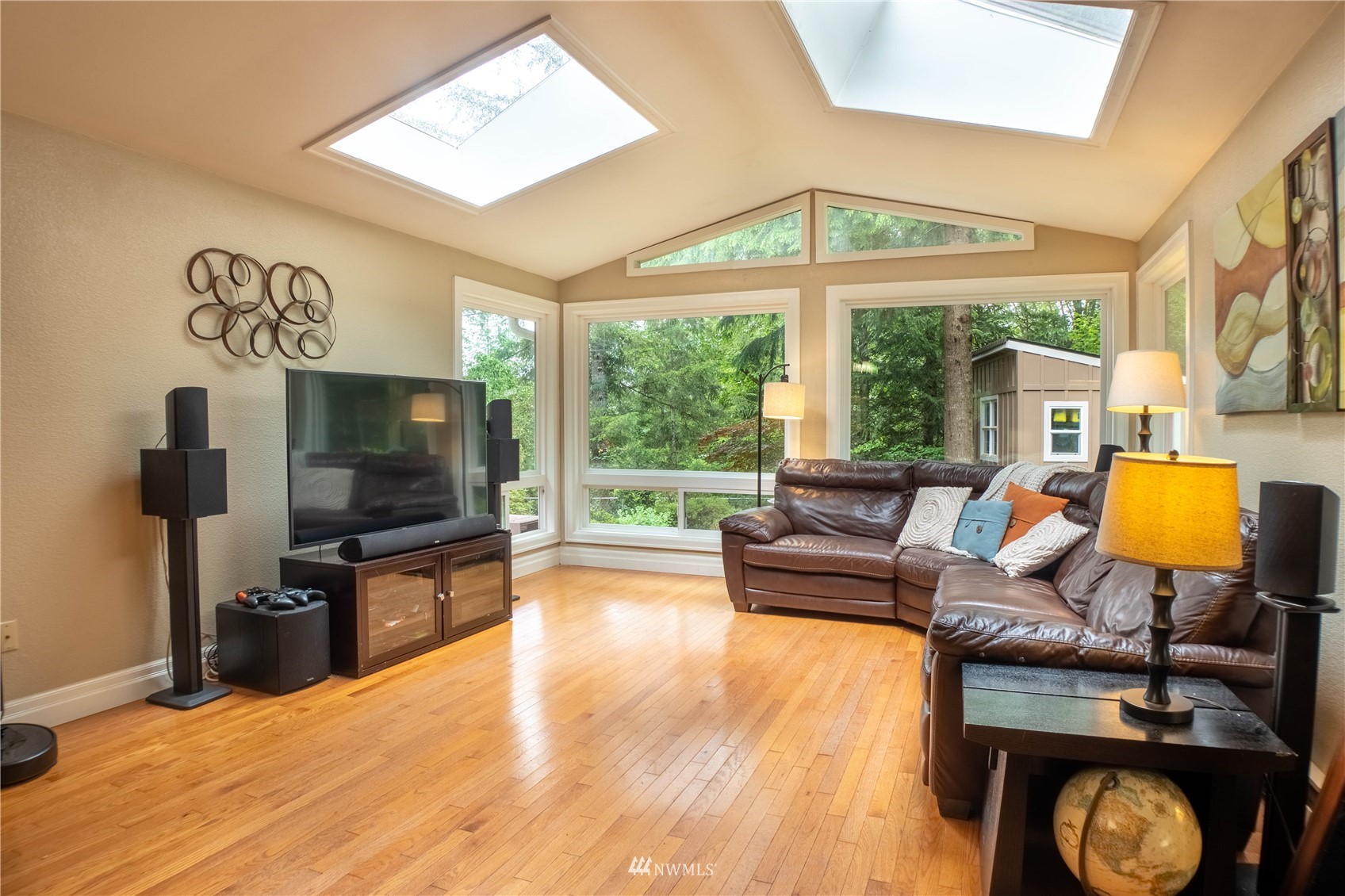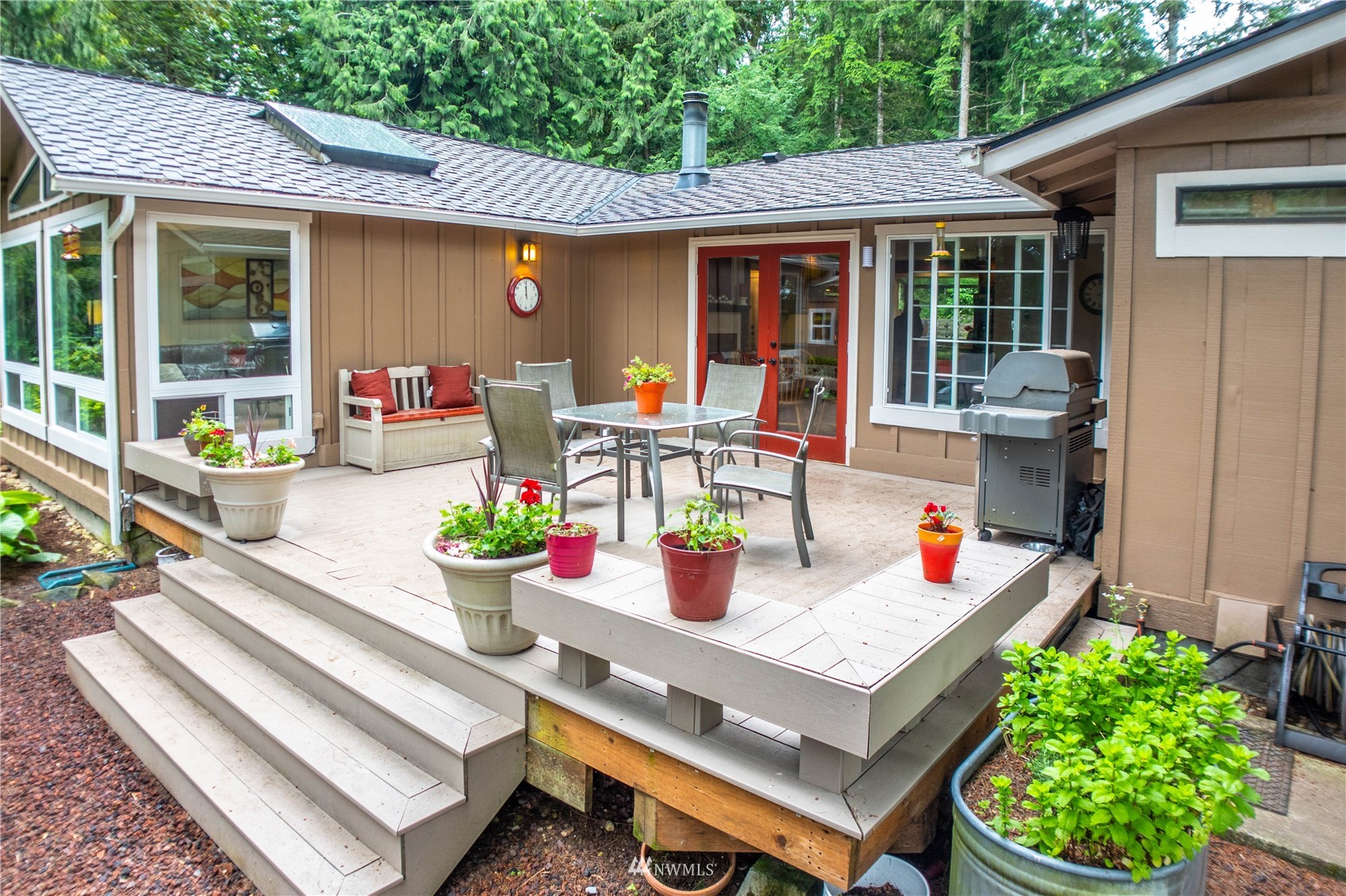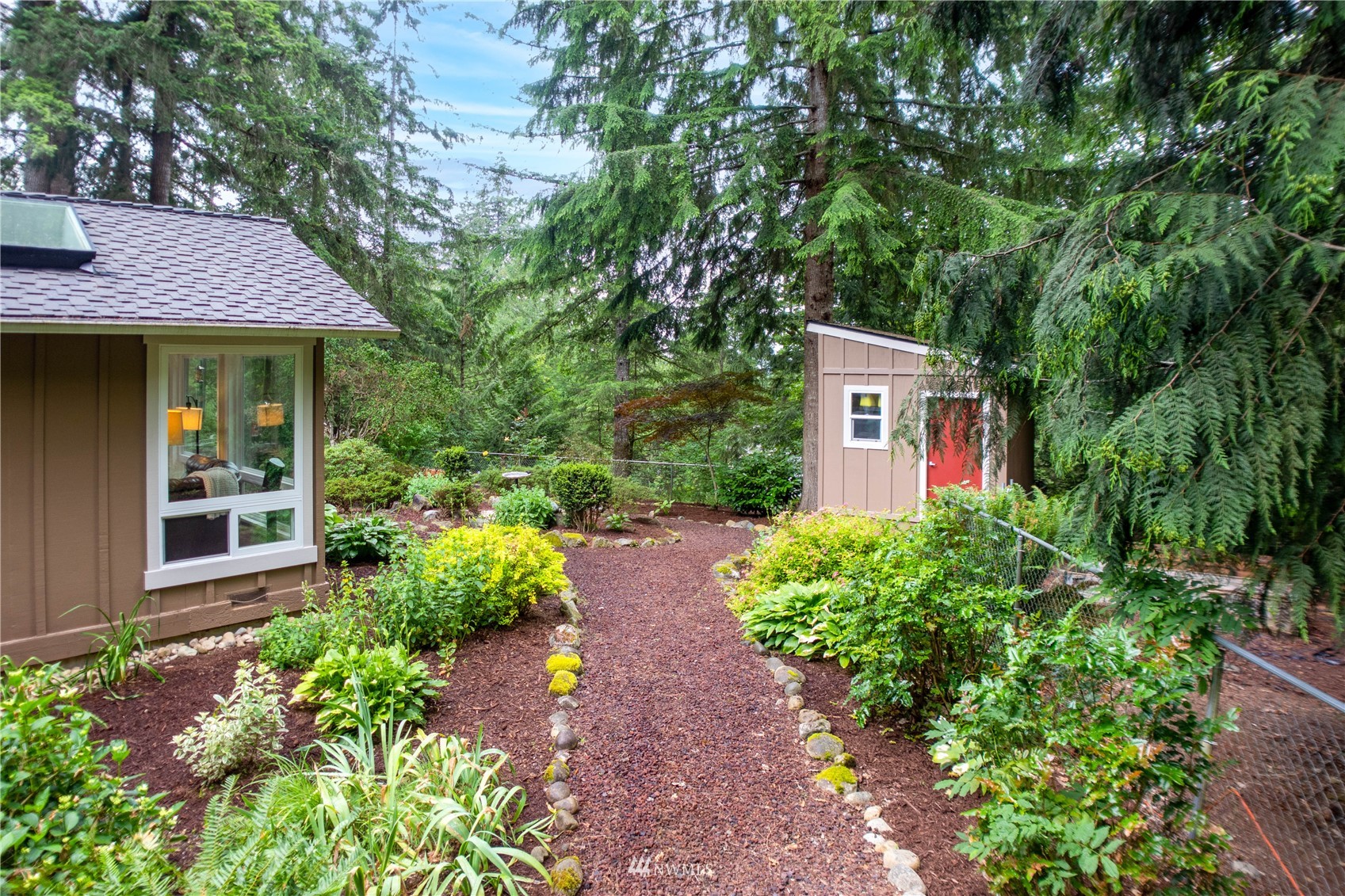 Move-in ready this hidden one level living is at its best. Tucked away in the quiet community of Heather Crest location. Conveniently located just minutes to shops, dining, schools, river, parks and trails. Gardener's dream on shy acre w/fenced back yard, garden, play area, picnic area, studio and RV Parking. Enjoy territorial views, sound of creek from entertaining deck Extra parking. Primary bedroom with walk-in closet has French doors allowing you to step down to the garden. Family rm w/wood fireplace, built-in shelves, hardwood floors, updated windows, living/dining w/vaulted ceiling, skylights, extra storage + award-winning schools. Quick access to I 90 makes commuting a breeze.