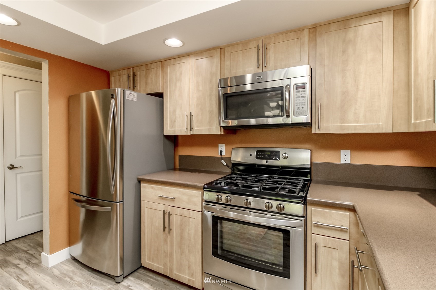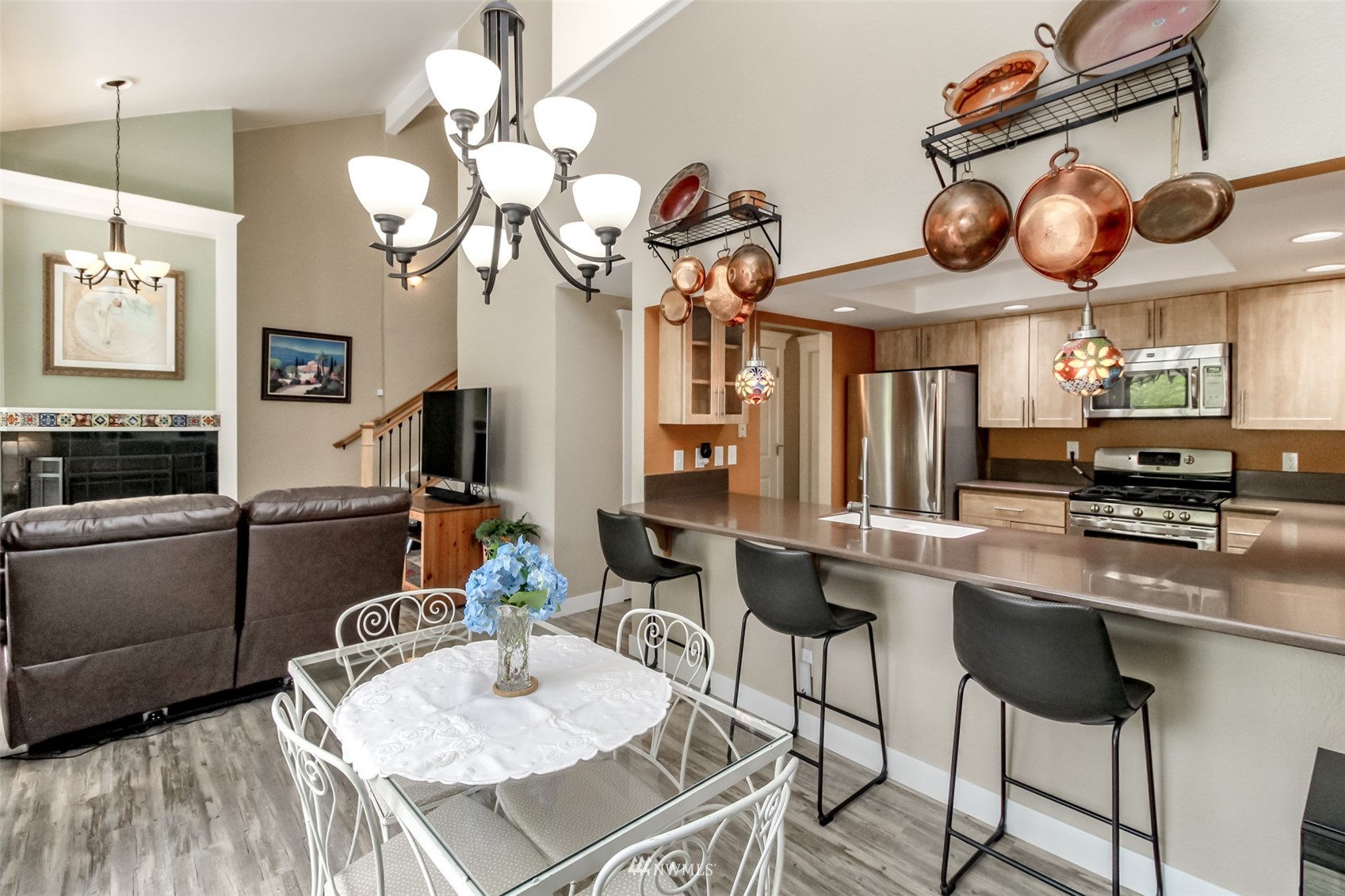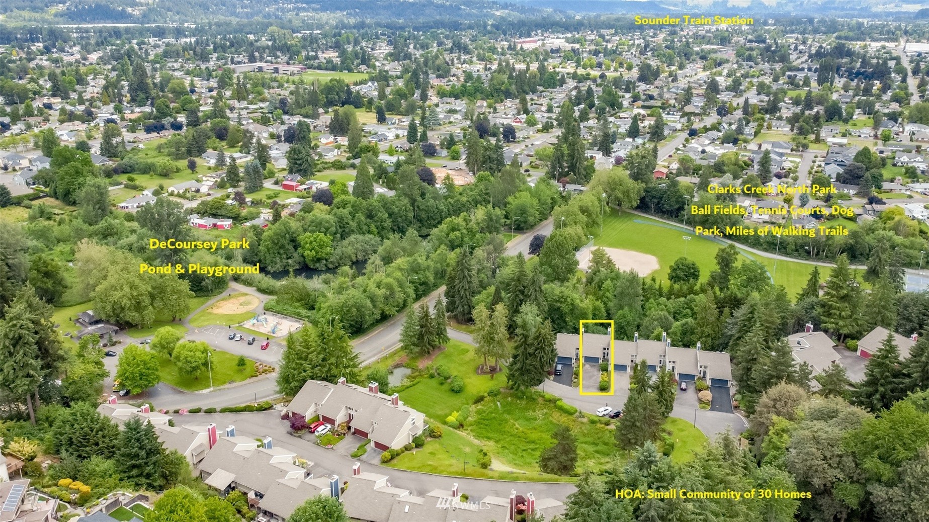 Park Place Condos @ DeCoursey Park! Clarks Creek outdoor adventures await. Walking trails, tennis courts, dog park, ballfields & so much to do in this lovely downtown Puyallup community. You're going to love living here! View of Mt. Rainier from your newly updated trex deck, while listening to the sounds of nature from the greenbelt below. Feel right at home with neutral colors & updated finishes. A/C mini split on main level. Master suite upstairs loft with it's own full bathroom and the lower level you'll find 2 more bedrooms, 1 full bathroom, laundry & heated floors. Storage galore! Huge 2 car attached garage. Spacious 1,703 sq ft home! HOA includes roof, siding, window washing, insurance on exterior, lawn, water, sewer, cable, garbage.