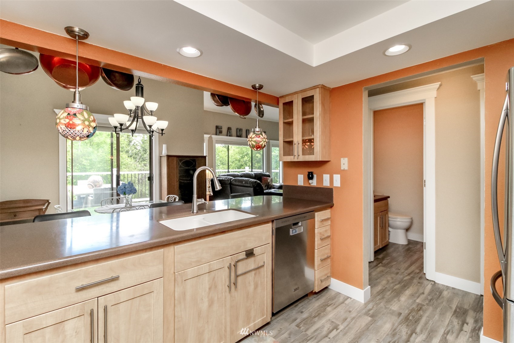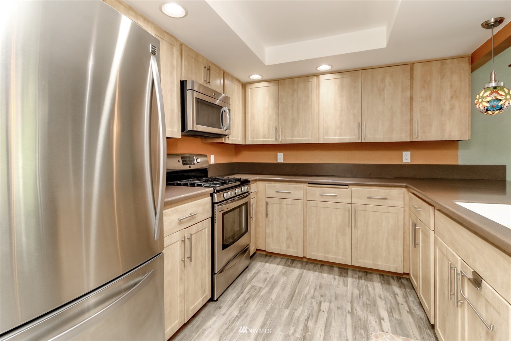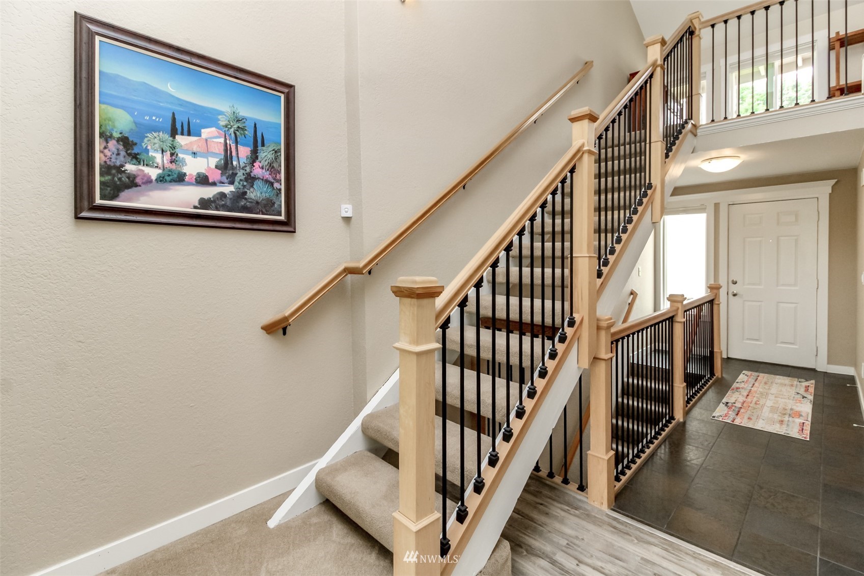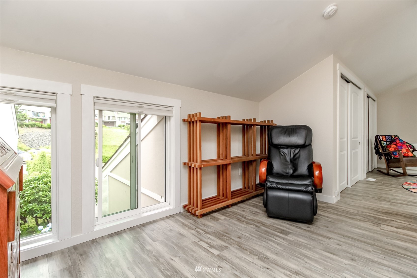Park Place Condos @ DeCoursey Park! Clarks Creek outdoor adventures await. Walking trails, tennis courts, dog park, ballfields & so much to do in this lovely downtown Puyallup community. You're going to love living here! View of Mt. Rainier from your newly updated trex deck, while listening to the sounds of nature from the greenbelt below. Feel right at home with neutral colors & updated finishes. A/C mini split on main level. Master suite upstairs loft with it's own full bathroom and the lower level you'll find 2 more bedrooms, 1 full bathroom, laundry & heated floors. Storage galore! Huge 2 car attached garage. Spacious 1,703 sq ft home! HOA includes roof, siding, window washing, insurance on exterior, lawn, water, sewer, cable, garbage.