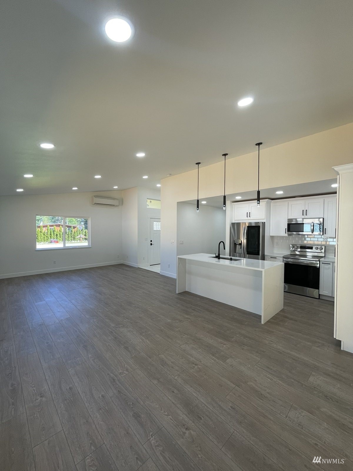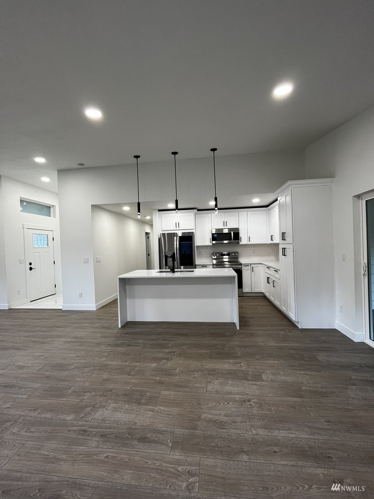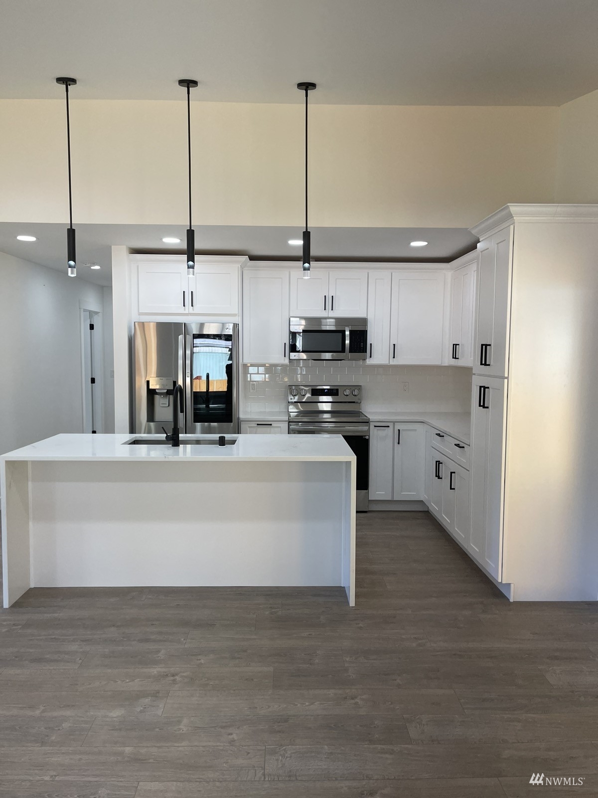 Gorgeous, high end, 3 bedroom 2 bathroom home on a level lot. Open floor plan with cathedral ceilings and lots of light in the living room. Large primary bedroom includes a huge walk-in closet, a five piece bathroom with a freestanding tub and separate shower with luxe glass door! Modern finishes include white kitchen cabinets, quartz countertops, tiled bathrooms, and beautiful easy care floors. Covered deck for year round enjoyment! Complete appliance package includes washer and dryer. Paved driveway all the way to the road. Keep those electric bills down with a hybrid electric water heater and an efficient, 4 zone, Daikin heat pump for A/C and heat. Lot is fully fenced! Hard to find a place with such a high quality finish.