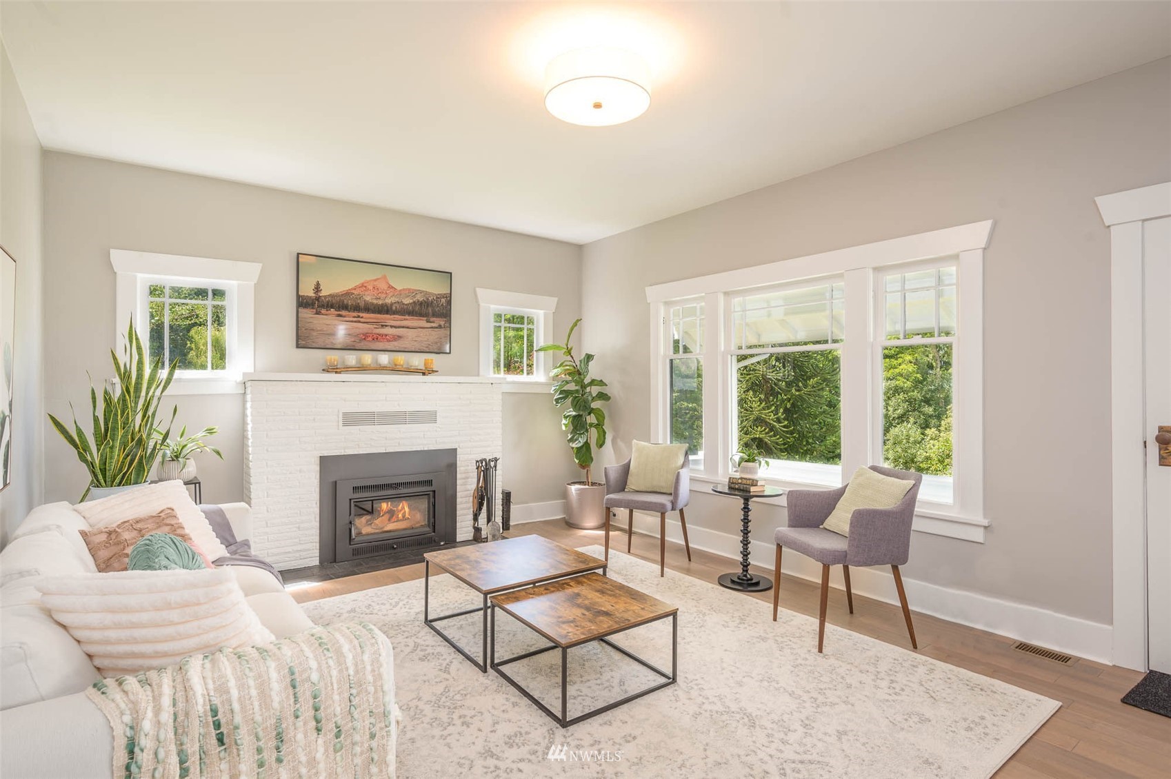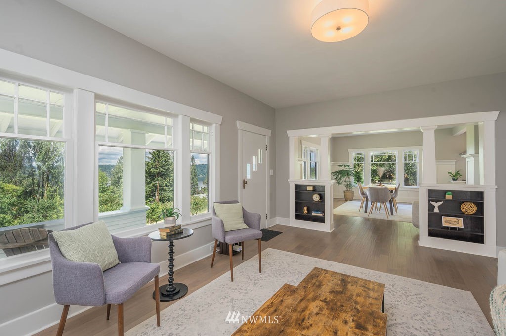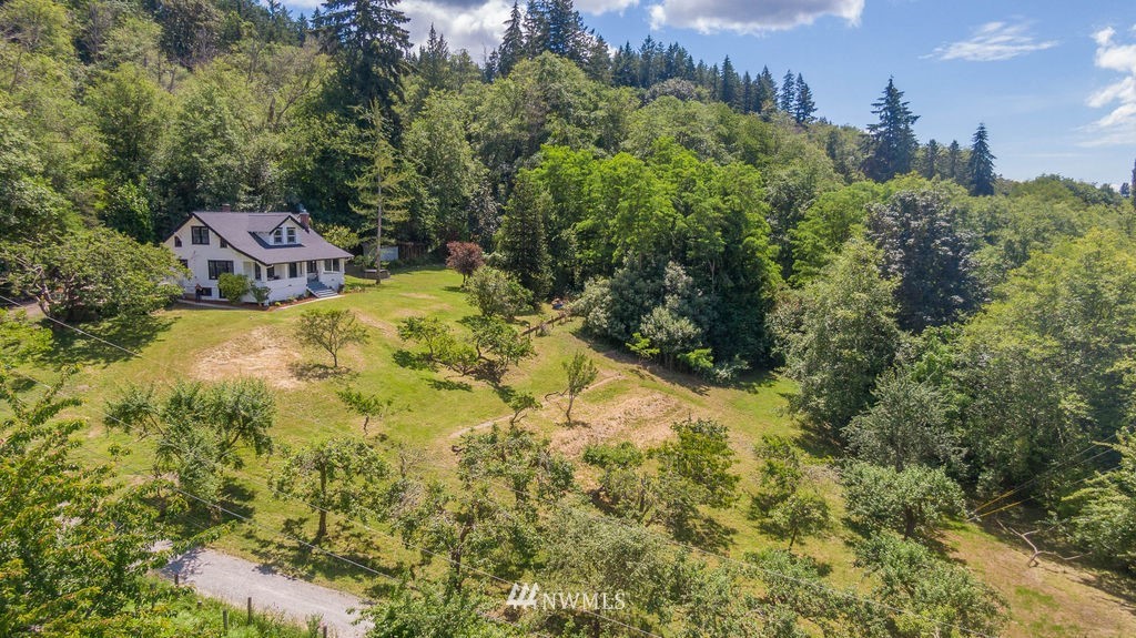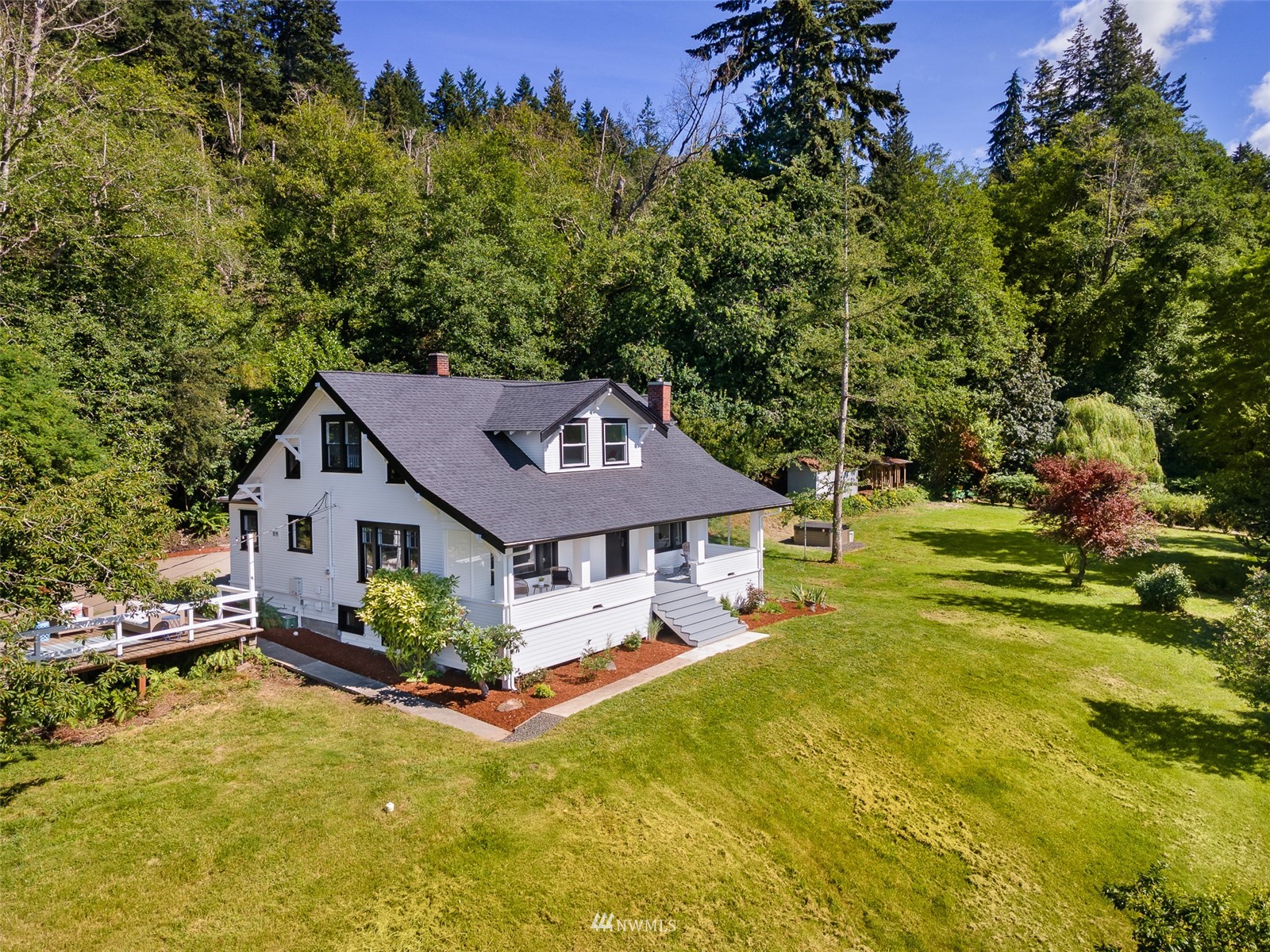 Lovingly remodeled 1922 Craftsman farmhouse on shy 10 acres with sweeping views of Puget Sound & Olympic Mountains. Tons of incredible detail including original millwork, built-ins and gorgeous windows. Enjoy all-day sun & vibrant sunsets from the large, quintessential covered porch. Sprawling orchard with apples, plums, peaches, cherries, grapes and blueberries. 2 car garage w/580 sqft unfinished studio and views! '21-22 upgrades include new roofs, septic, kitchen, bathrooms, appliances, paint, electrical and plumbing upgrades, and more. Whole-home generator and water filtration system.
