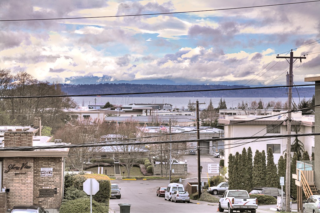 Location, Location, Location. This top floor two bedroom two full bath condo has a great view of the Sound. Plus it is located within a few level blocks of Edmonds' roundabout fountain, beach, city park, ferry terminal and all the quaint theaters, shops and restaurants lining Main Street. It even has two assigned parking spaces and two large storage rooms. View condos, in this price range and location, are hard to find in Edmonds. Don't delay seeing it.
