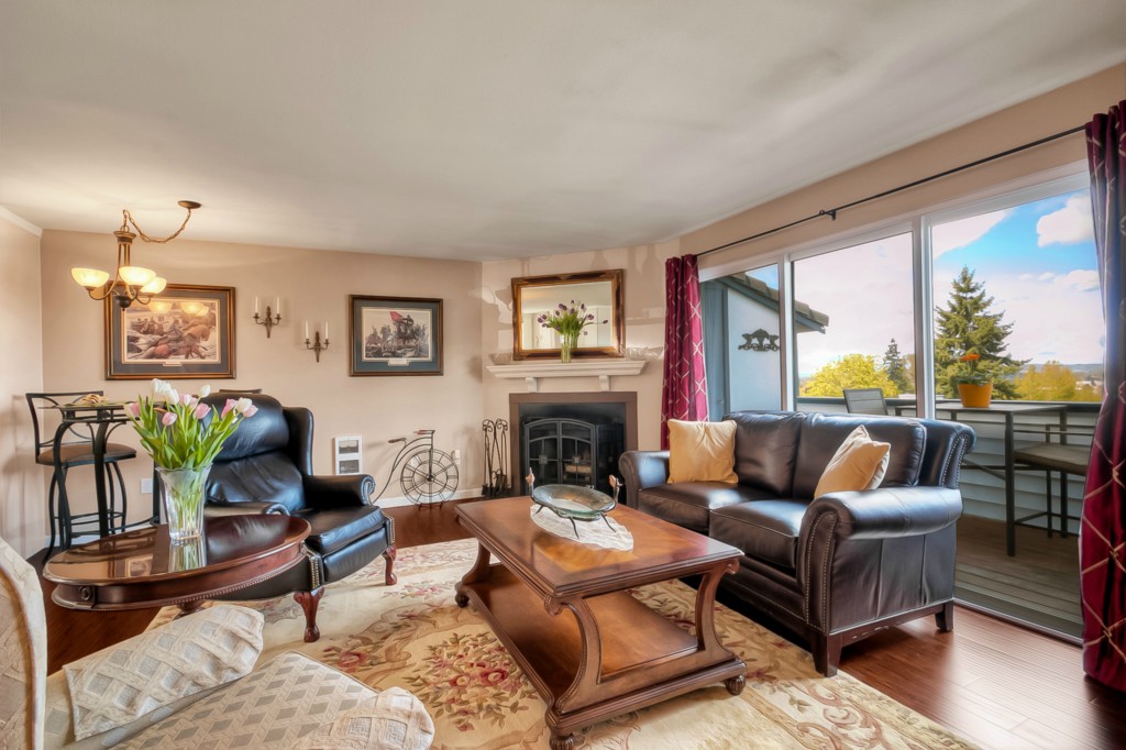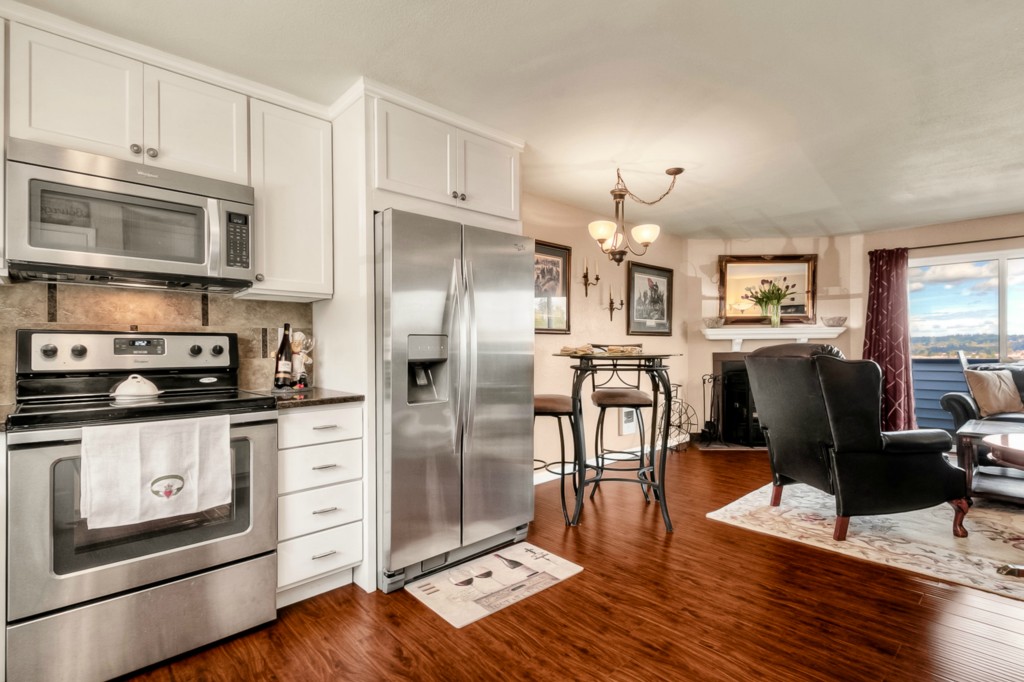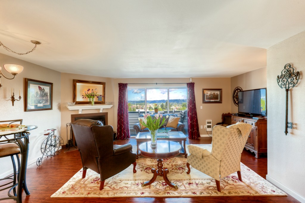 Relax & enjoy an easy life-remodeled & totally updated condo in the heart of Puyallup. 2 bedroom, 1.5 bath w/ all the upgrades-hardwood floors, new cabinets & granite countertops, new SS appliances w/ wine fridge, new paint & trim work, new tile/granite bathrooms...nothing was forgotten. Large slider to deck- w/ great view of the mountains & city & Master suite to a private patio. HOA dues incl- cable, water/sewer, garb & lawn service. YES-it is FHA approved! Not a short sale & ready to close!