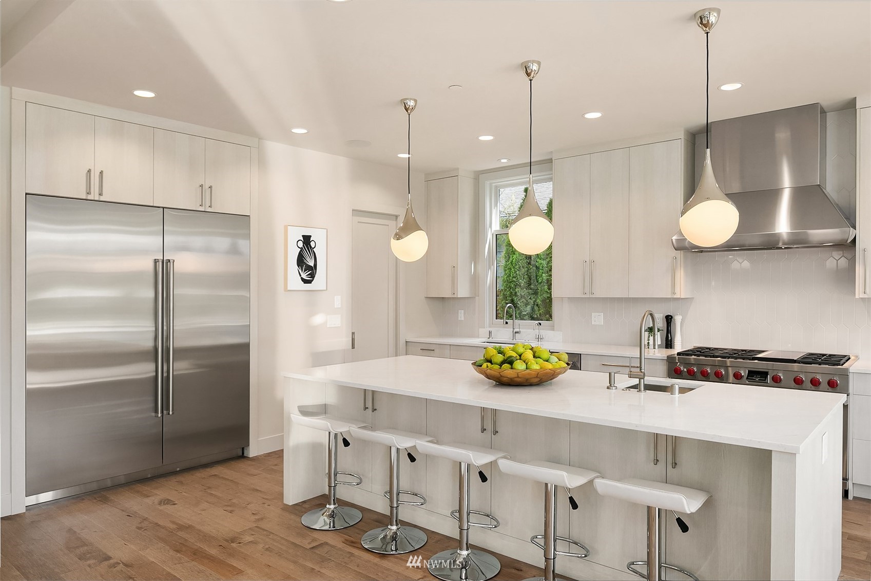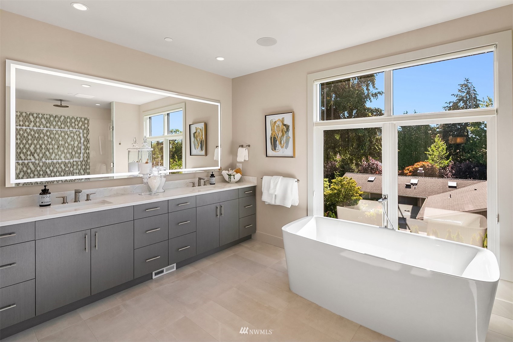 Medina Modern by Bordner Construction offers the perfect balance of minimalism and luxury. Great street appeal and dramatic entry with custom staircase sets a sophisticated, welcoming tone. An ideal floor plan with great room out to the covered patio and flat play yard. Custom cabinetry, Mirage floors, gorgeous stone and tile nestle high end appliances making the kitchen artful and hardworking. Enjoy alfresco entertaining year round! Upstairs hosts bonus area, and 4 ensuite bedrooms. The owner's suite is a dream w/ fireplace, balcony, 2 closets, laundry & spa bath. The lower entertainment level is all about fun with wine cellar, media, exercise and guest suite. Located in magical Medina and minutes to Seattle, Bellevue, parks & schools.