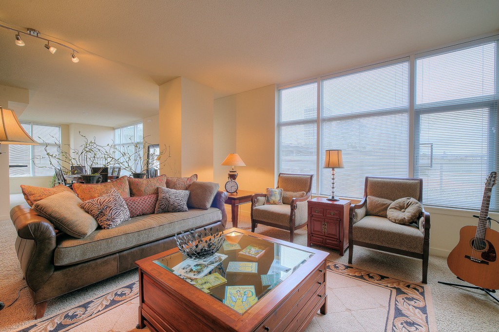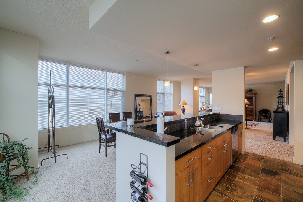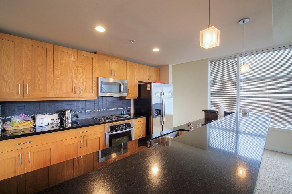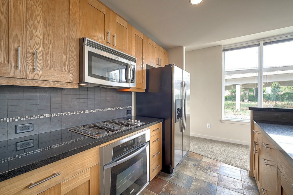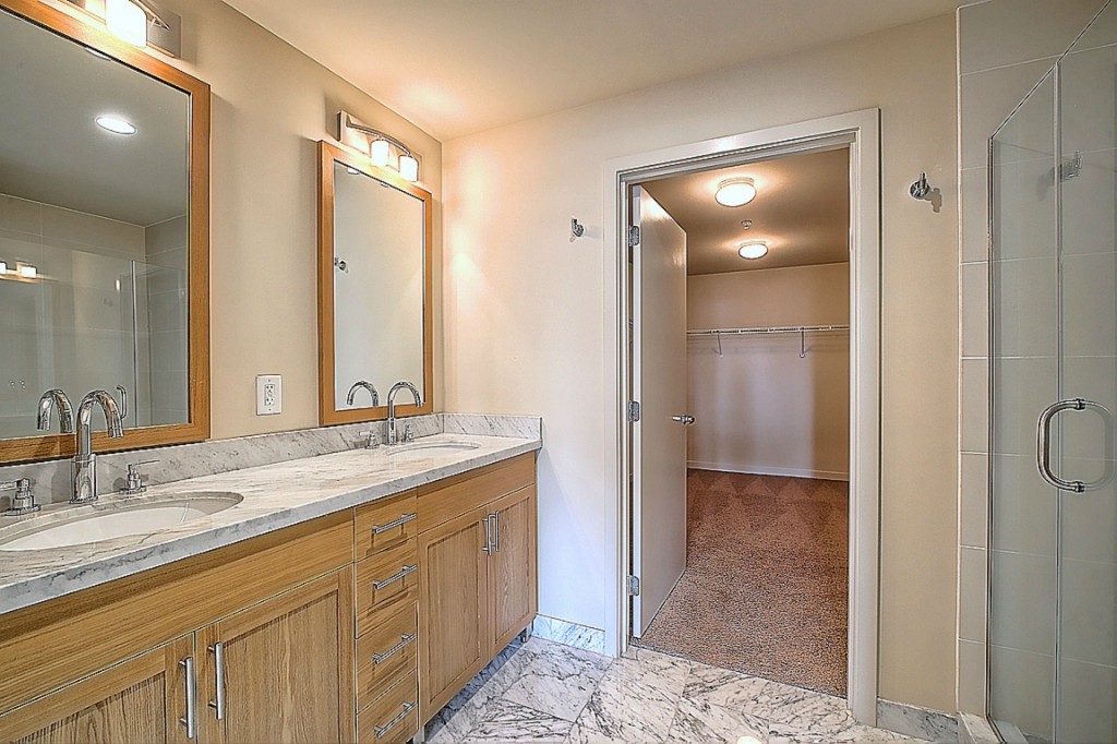 Desirable corner suite provides ultimate luxury with in-city vibe. Expansive, open plan with 2 outdoor decks, one over sized, made to entertain. Walls of windows engulf the home in light. Modern Kitchen w/ clean lines boasts stainless appliances, slab granite counters, & swirled slate floors. Luxurious master suite, marble surfaces, walk-in closet the size of a boutique store! Incredible laundry room for storage. Superior steel & concrete construction. Great lobby & A+ fitness center.