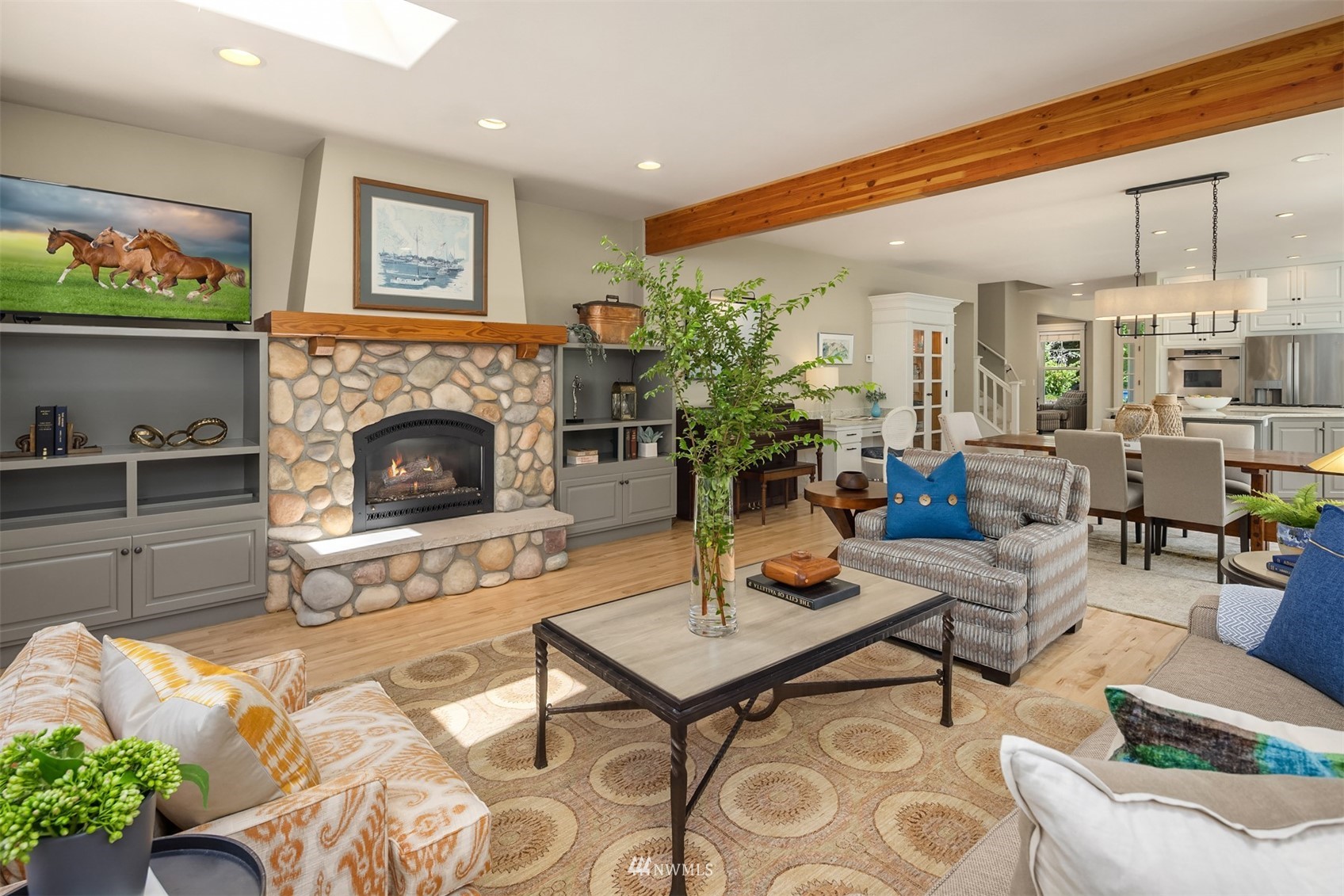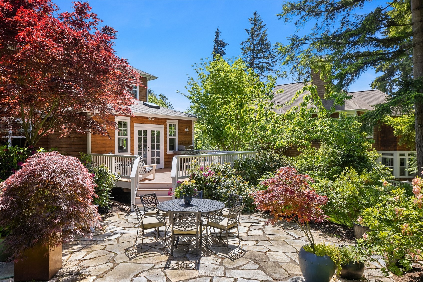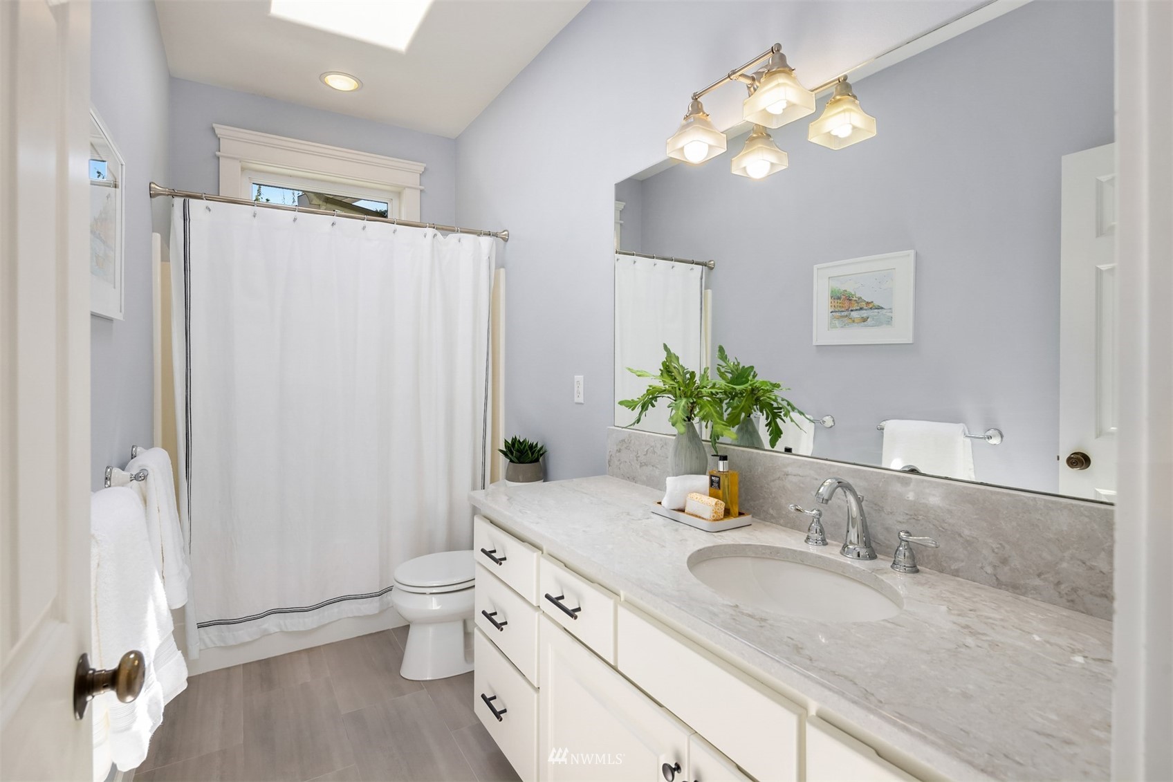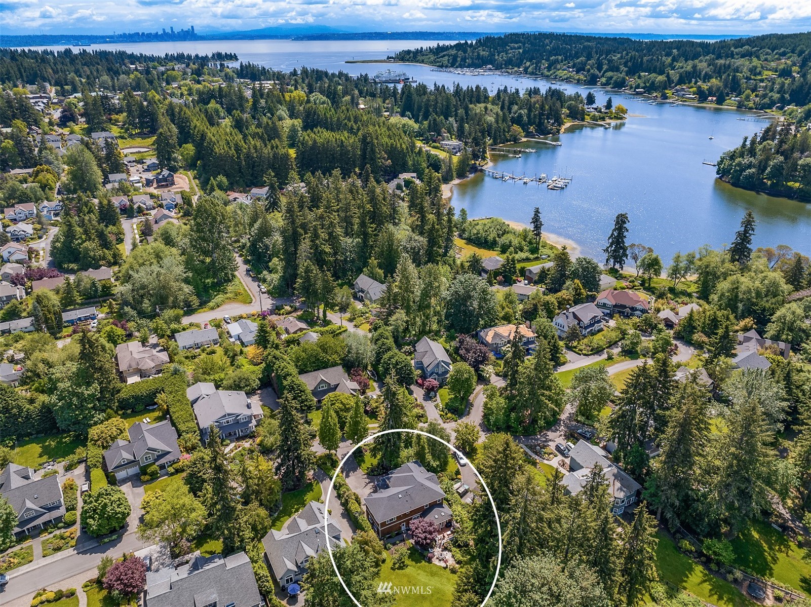 Classic, coastal elegance in town on Bainbridge Island. Gracious, beautifully maintained home on coveted Eakin Dr offers chic, comfortable, light filled spaces, a mile from town amenities and ferry. Thoughtfully designed for easy living- open concept public spaces, 4th BR/office on main with 3/4 bath, huge bonus room w vaulted ceilings and attached full bath. 2022 kitchen/bath reno with beautiful high end finishes- quartz counters, painted cabinets, new tile. Stunning primary suite offers bath w in floor heat, double walk in closets. Deck and stone patio expand living space into garden, w mature plantings, blueberries and kitchen garden. Includes access to 1 acre community waterfront park; you'll love storing your kayak/SUP at water's edge!