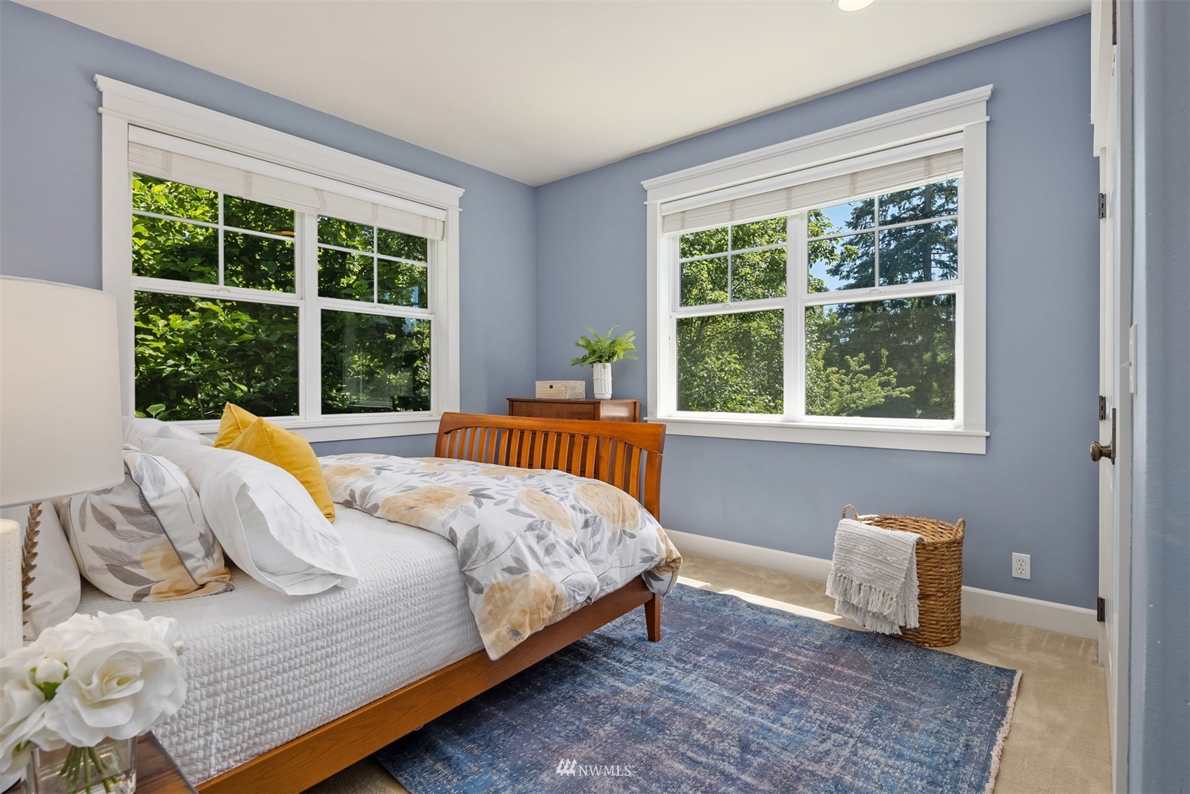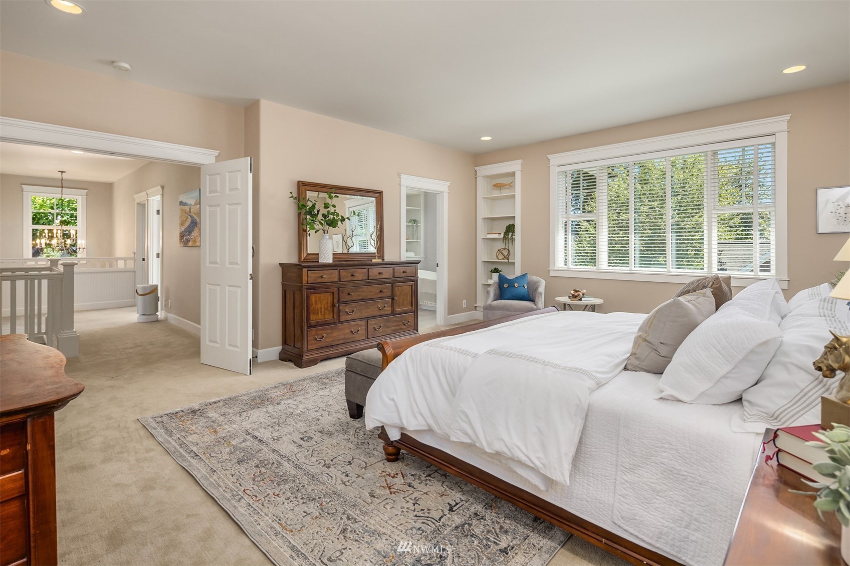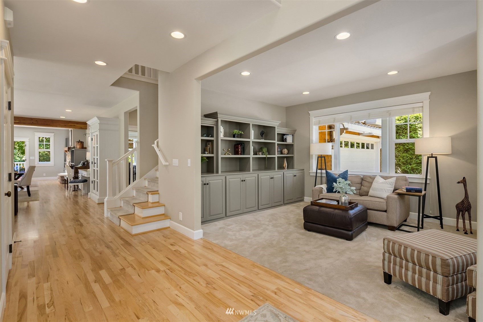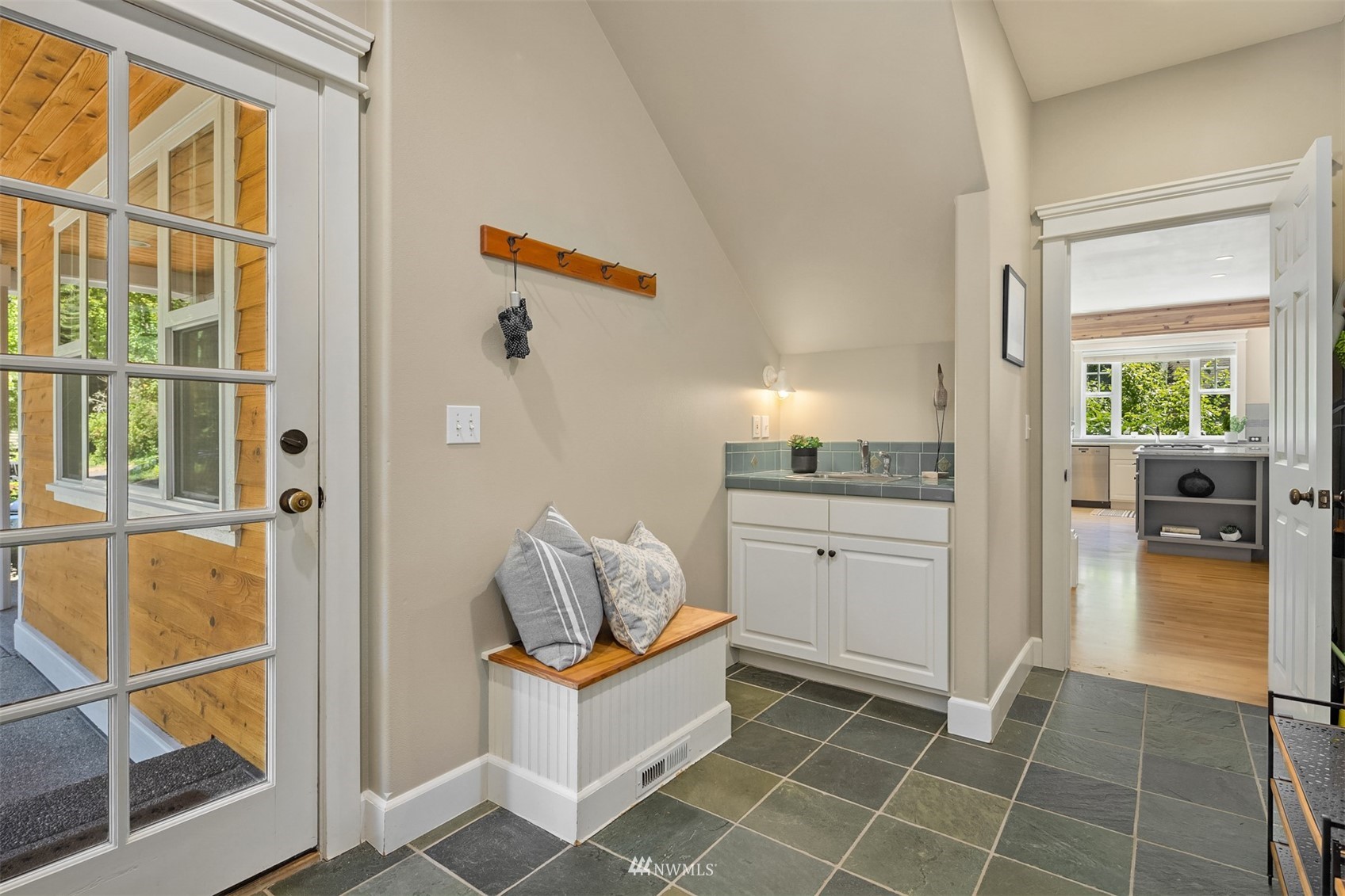 Classic, coastal elegance in town on Bainbridge Island. Gracious, beautifully maintained home on coveted Eakin Dr offers chic, comfortable, light filled spaces, a mile from town amenities and ferry. Thoughtfully designed for easy living- open concept public spaces, 4th BR/office on main with 3/4 bath, huge bonus room w vaulted ceilings and attached full bath. 2022 kitchen/bath reno with beautiful high end finishes- quartz counters, painted cabinets, new tile. Stunning primary suite offers bath w in floor heat, double walk in closets. Deck and stone patio expand living space into garden, w mature plantings, blueberries and kitchen garden. Includes access to 1 acre community waterfront park; you'll love storing your kayak/SUP at water's edge!