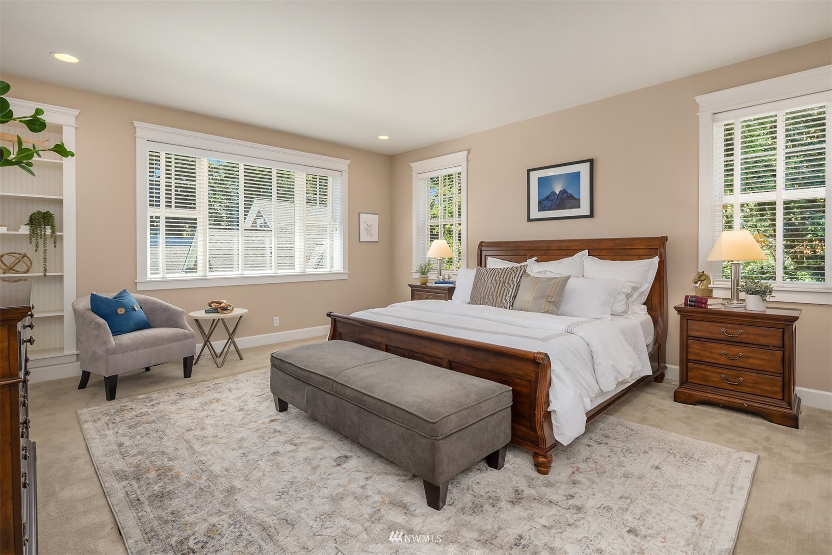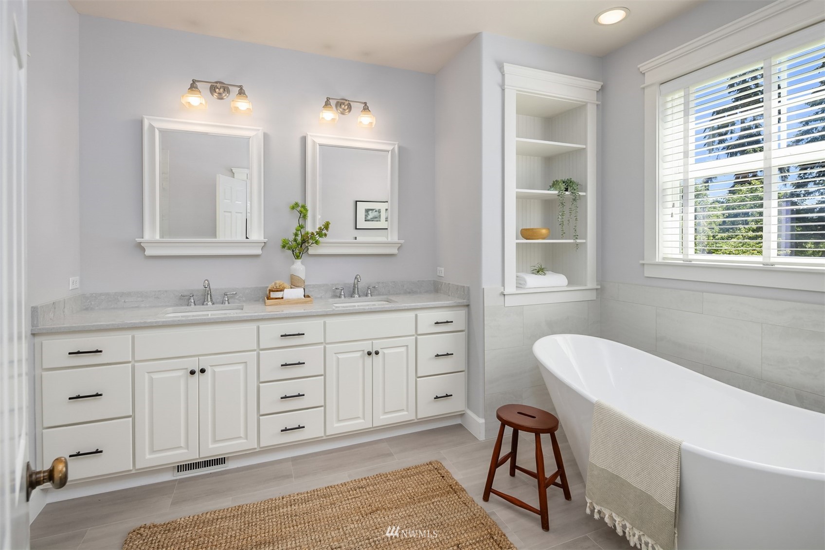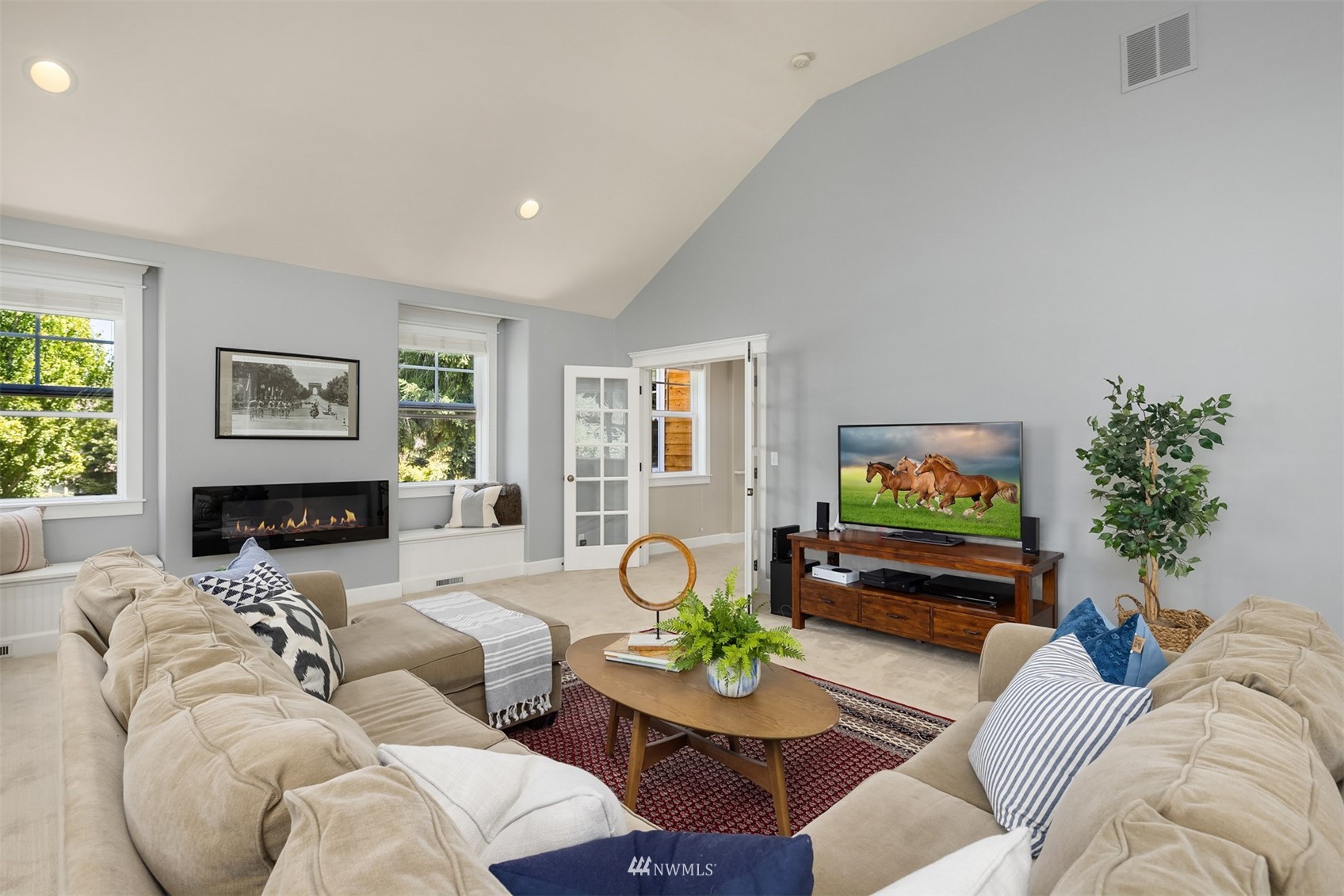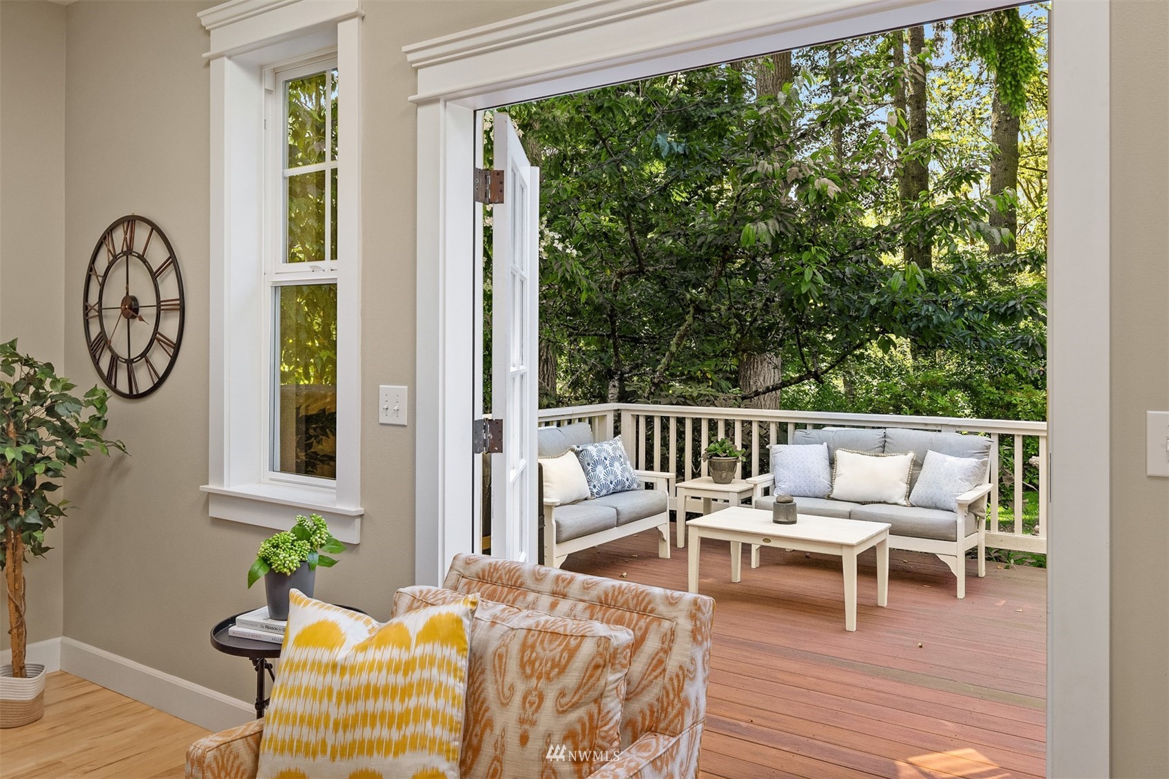 Classic, coastal elegance in town on Bainbridge Island. Gracious, beautifully maintained home on coveted Eakin Dr offers chic, comfortable, light filled spaces, a mile from town amenities and ferry. Thoughtfully designed for easy living- open concept public spaces, 4th BR/office on main with 3/4 bath, huge bonus room w vaulted ceilings and attached full bath. 2022 kitchen/bath reno with beautiful high end finishes- quartz counters, painted cabinets, new tile. Stunning primary suite offers bath w in floor heat, double walk in closets. Deck and stone patio expand living space into garden, w mature plantings, blueberries and kitchen garden. Includes access to 1 acre community waterfront park; you'll love storing your kayak/SUP at water's edge!