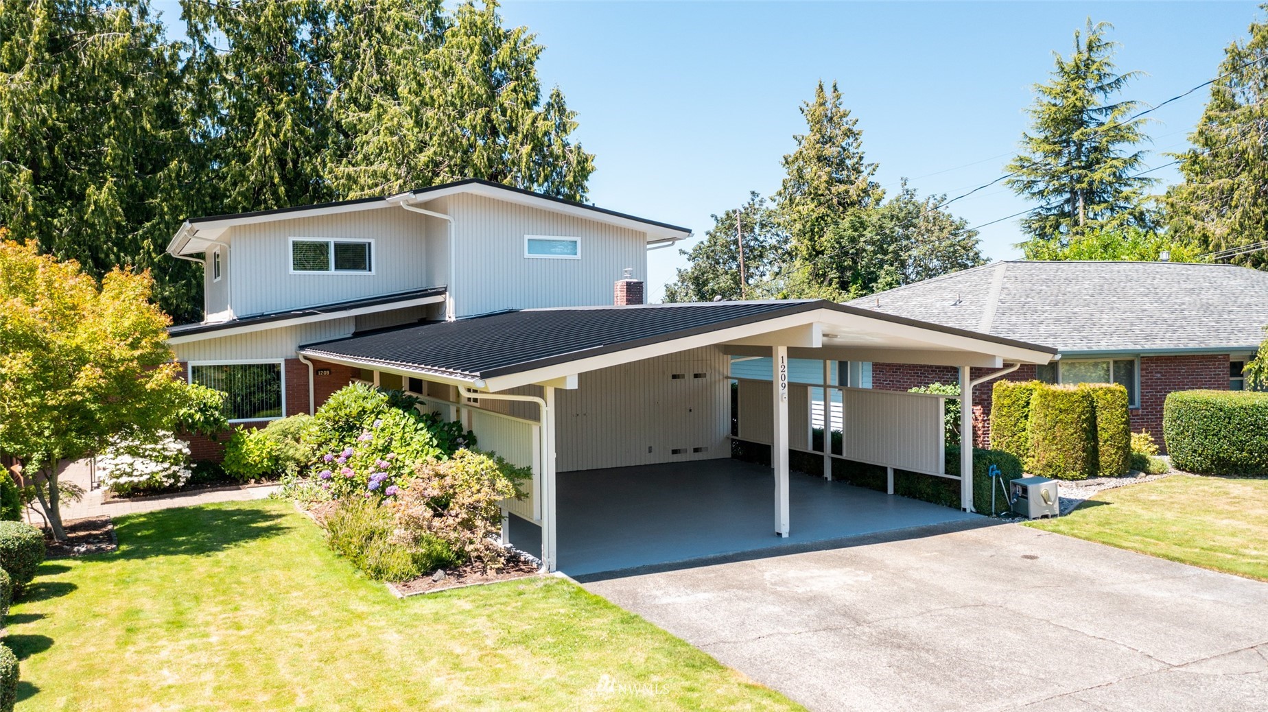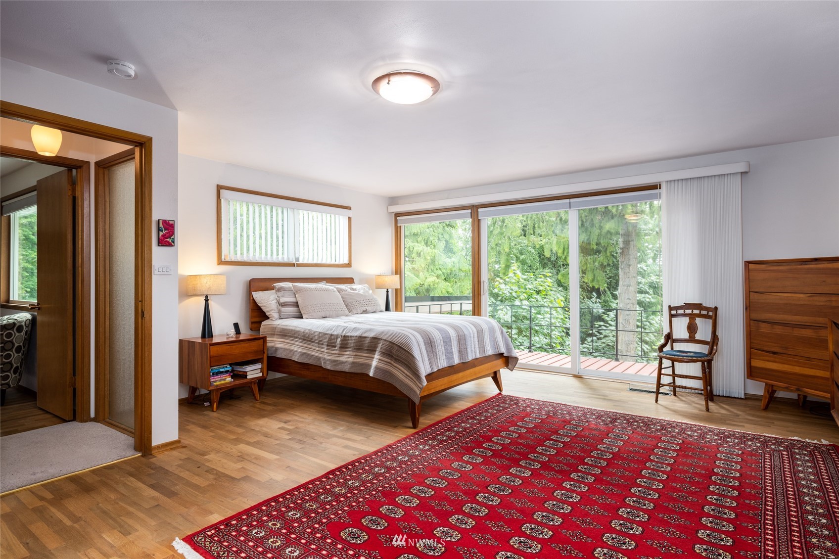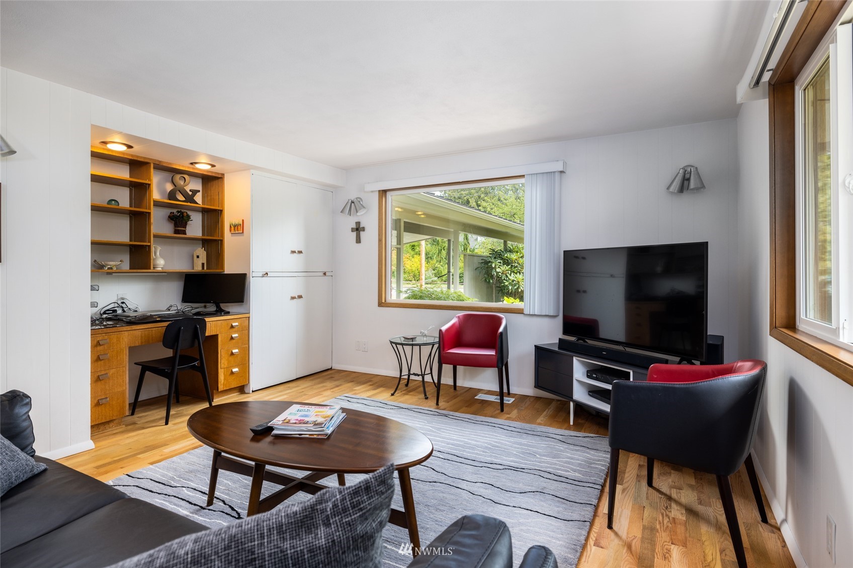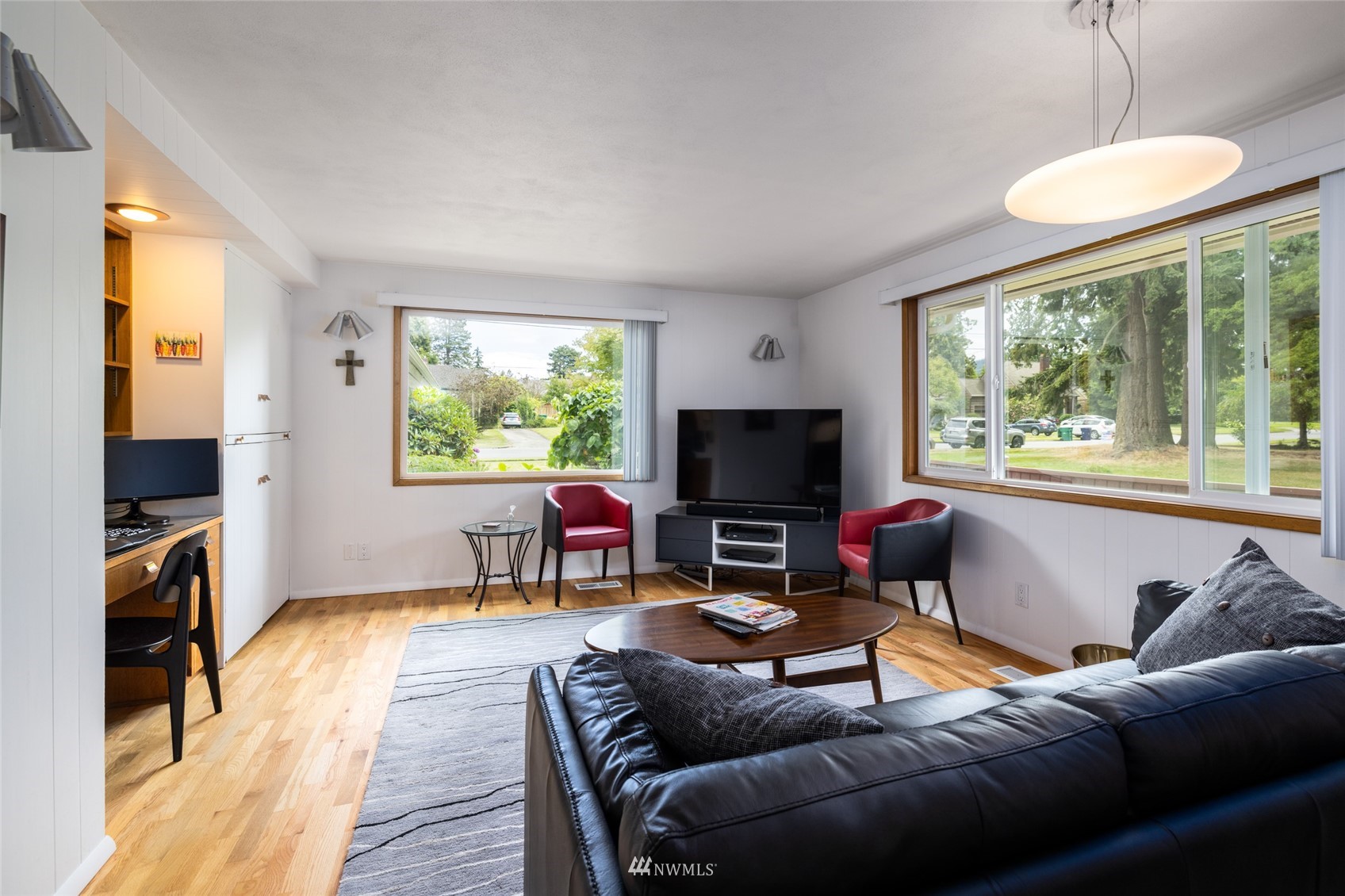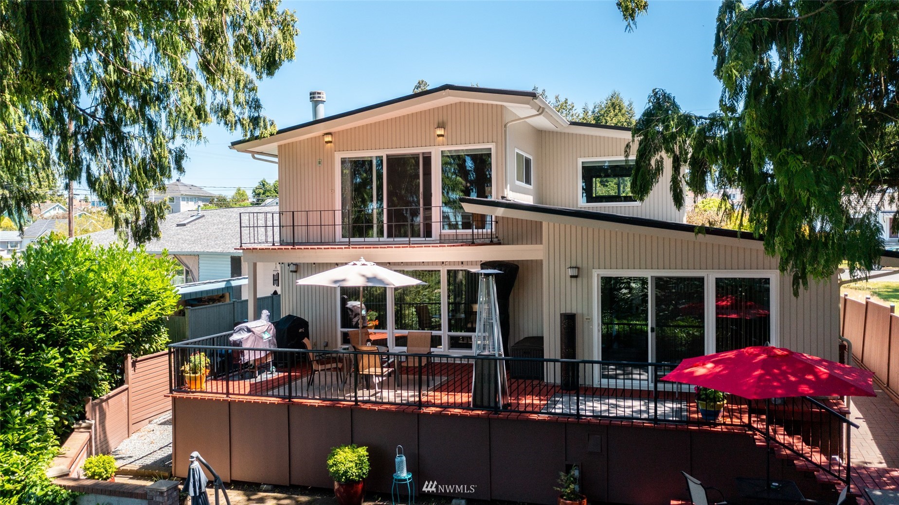 Impeccable NW Contemporary, Mid-Century home in desirable Hillcrest area of Mount Vernon. Meticulously cared for 3 bedroom, 2 bath home features 2,680 sq. ft. and sits on nicely landscaped large, private lot. 1950's styling in woodwork, cabinets & built ins. New double pane windows throughout & private decks overlooking Skagit Valley. Upgraded kitchen with stainless appliances, double ovens and quartz countertops. Spacious master suite with dressing room and remodeled master bath w/walk in shower & free standing tub plus a private deck to enjoy Skagit Valley sunsets and fireworks on the 4th of July! Fully fenced, very private backyard with room for storage. New metal roof installed in 2021. New furnace in 2020. Welcome home!
