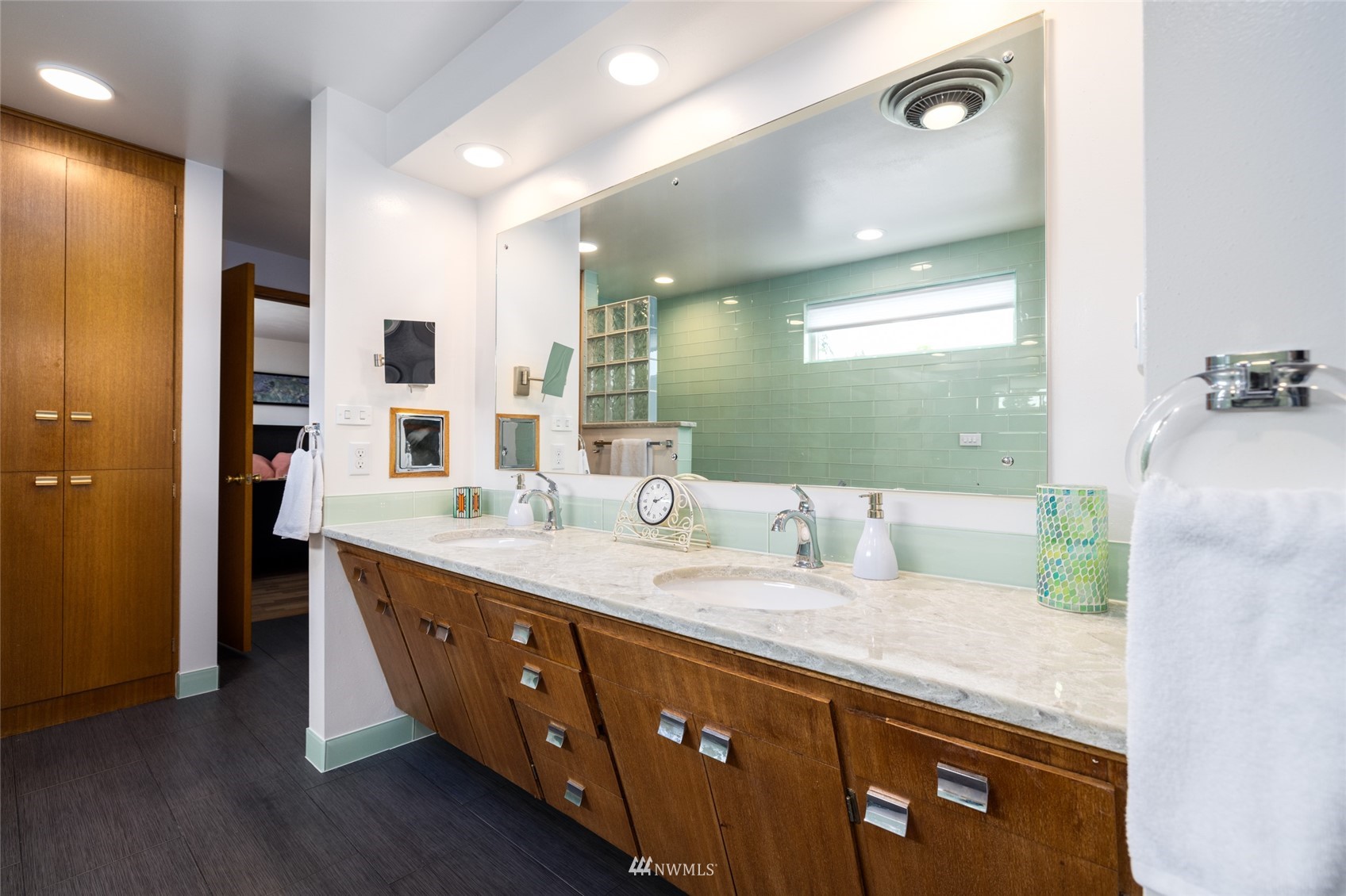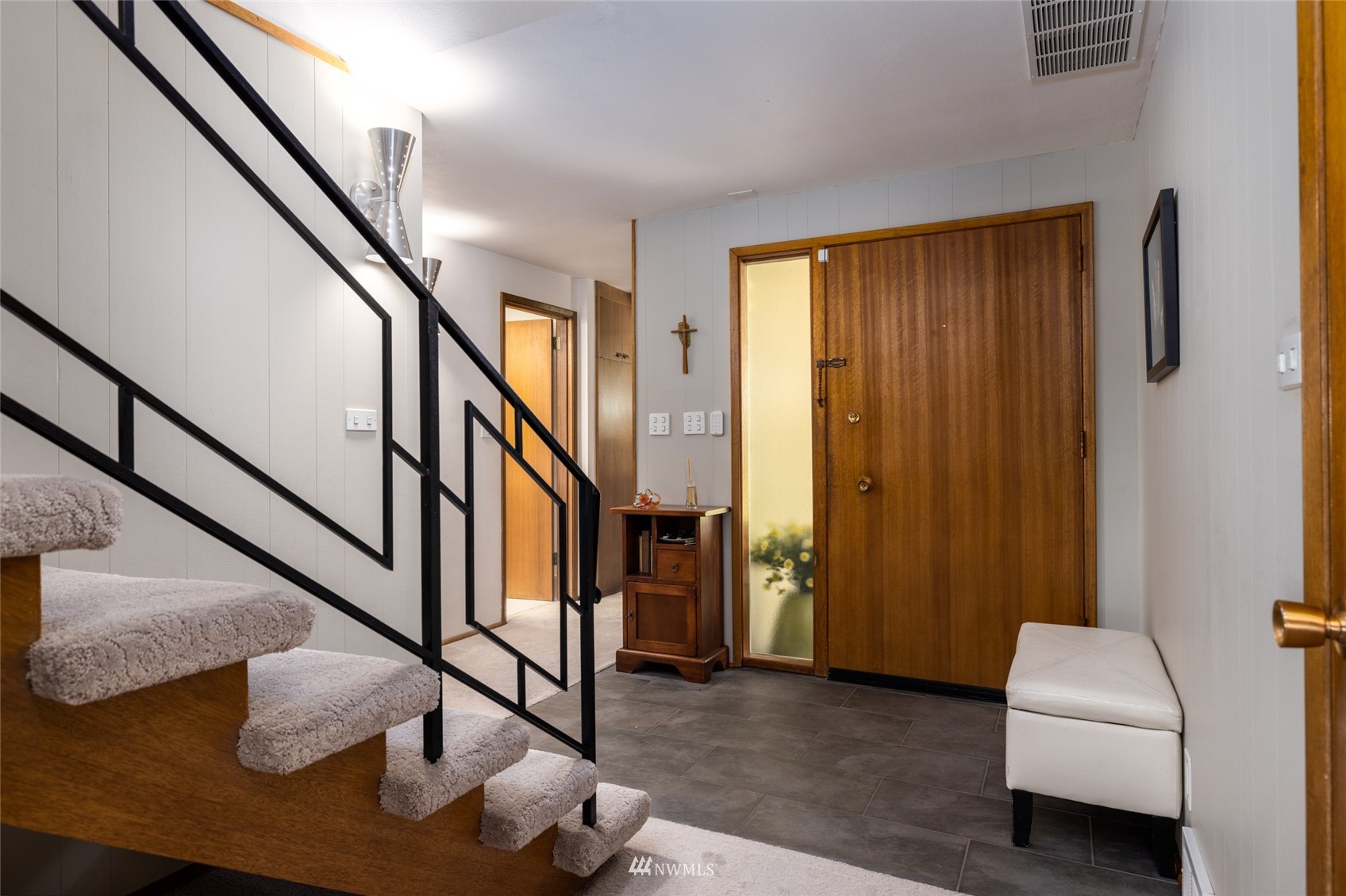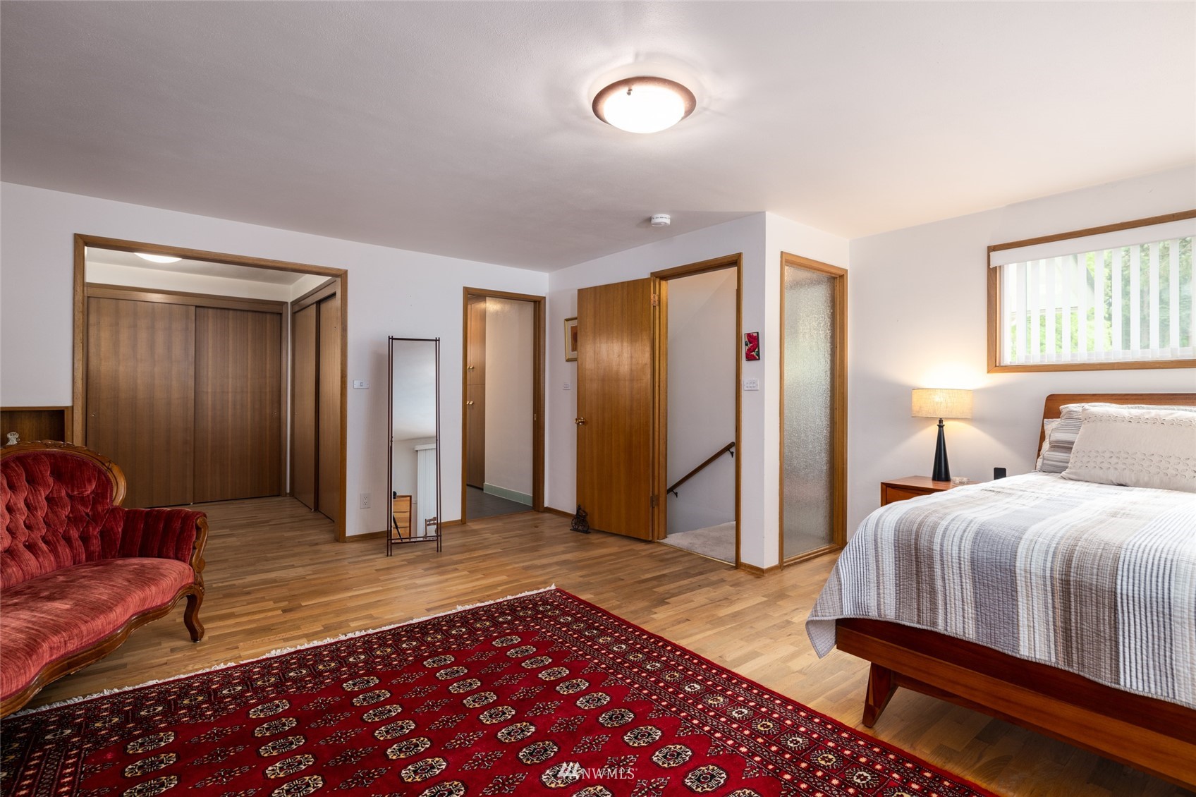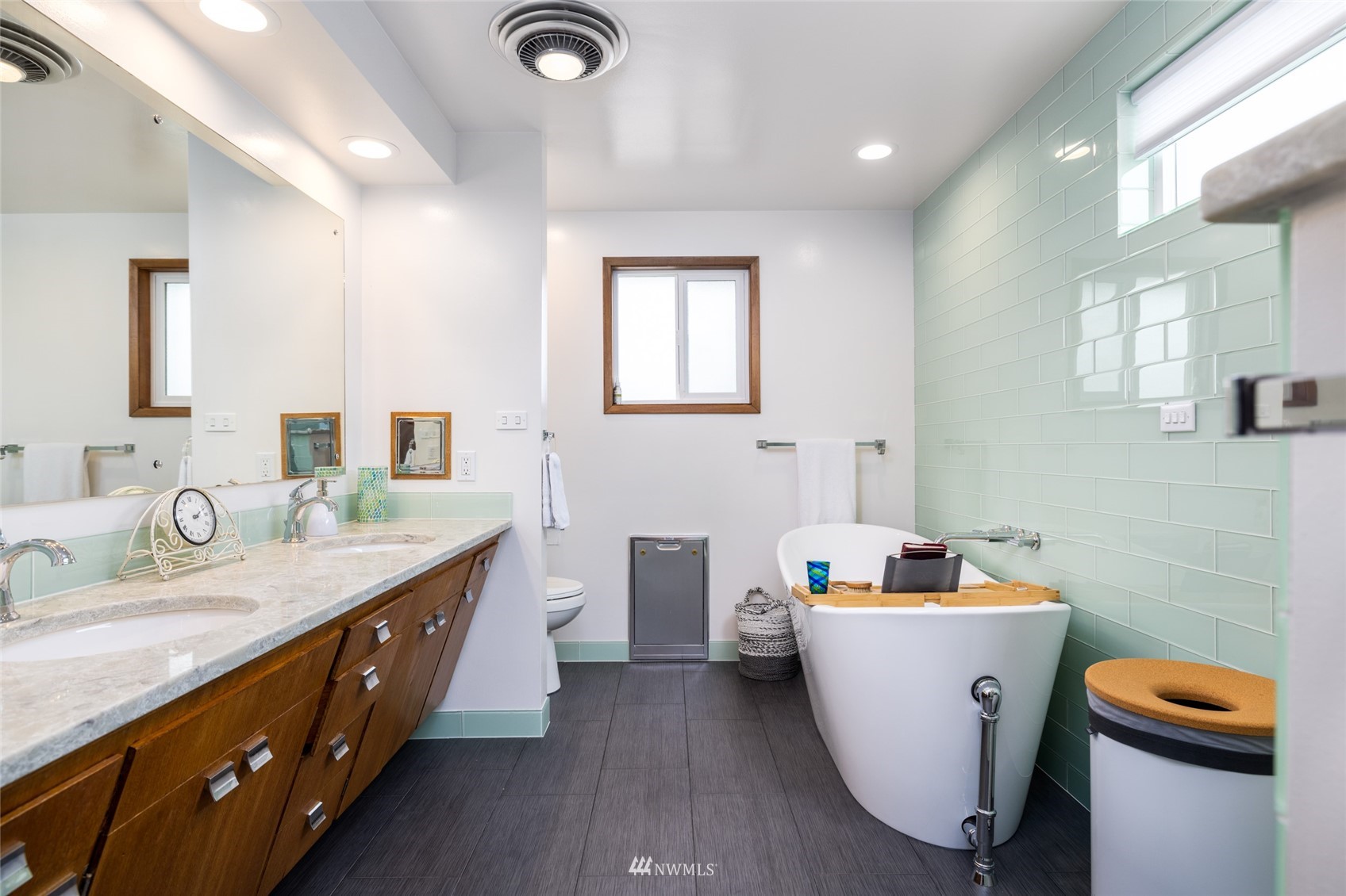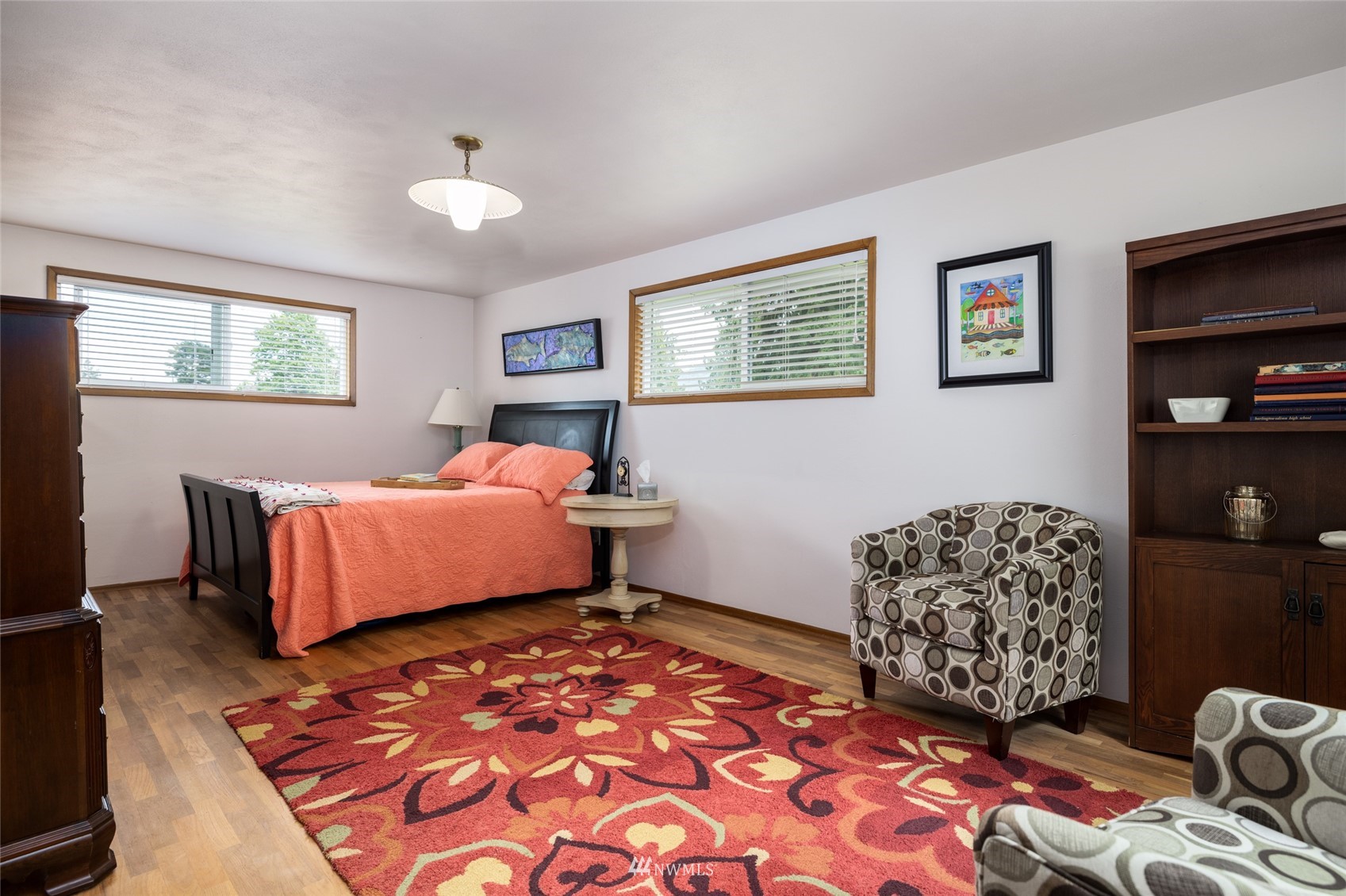 Impeccable NW Contemporary, Mid-Century home in desirable Hillcrest area of Mount Vernon. Meticulously cared for 3 bedroom, 2 bath home features 2,680 sq. ft. and sits on nicely landscaped large, private lot. 1950's styling in woodwork, cabinets & built ins. New double pane windows throughout & private decks overlooking Skagit Valley. Upgraded kitchen with stainless appliances, double ovens and quartz countertops. Spacious master suite with dressing room and remodeled master bath w/walk in shower & free standing tub plus a private deck to enjoy Skagit Valley sunsets and fireworks on the 4th of July! Fully fenced, very private backyard with room for storage. New metal roof installed in 2021. New furnace in 2020. Welcome home!