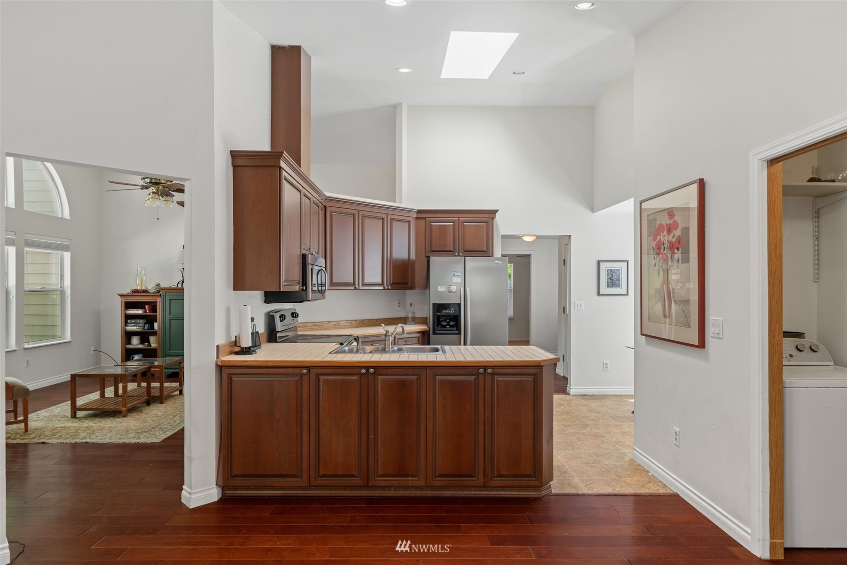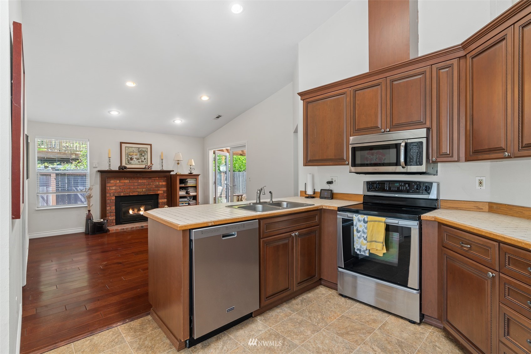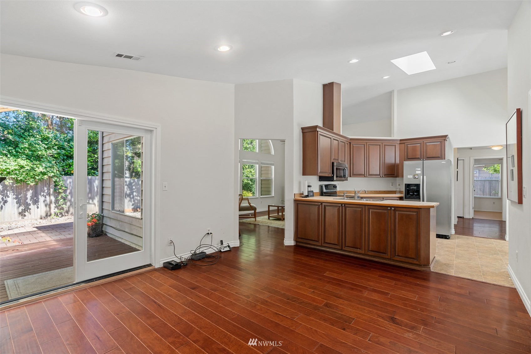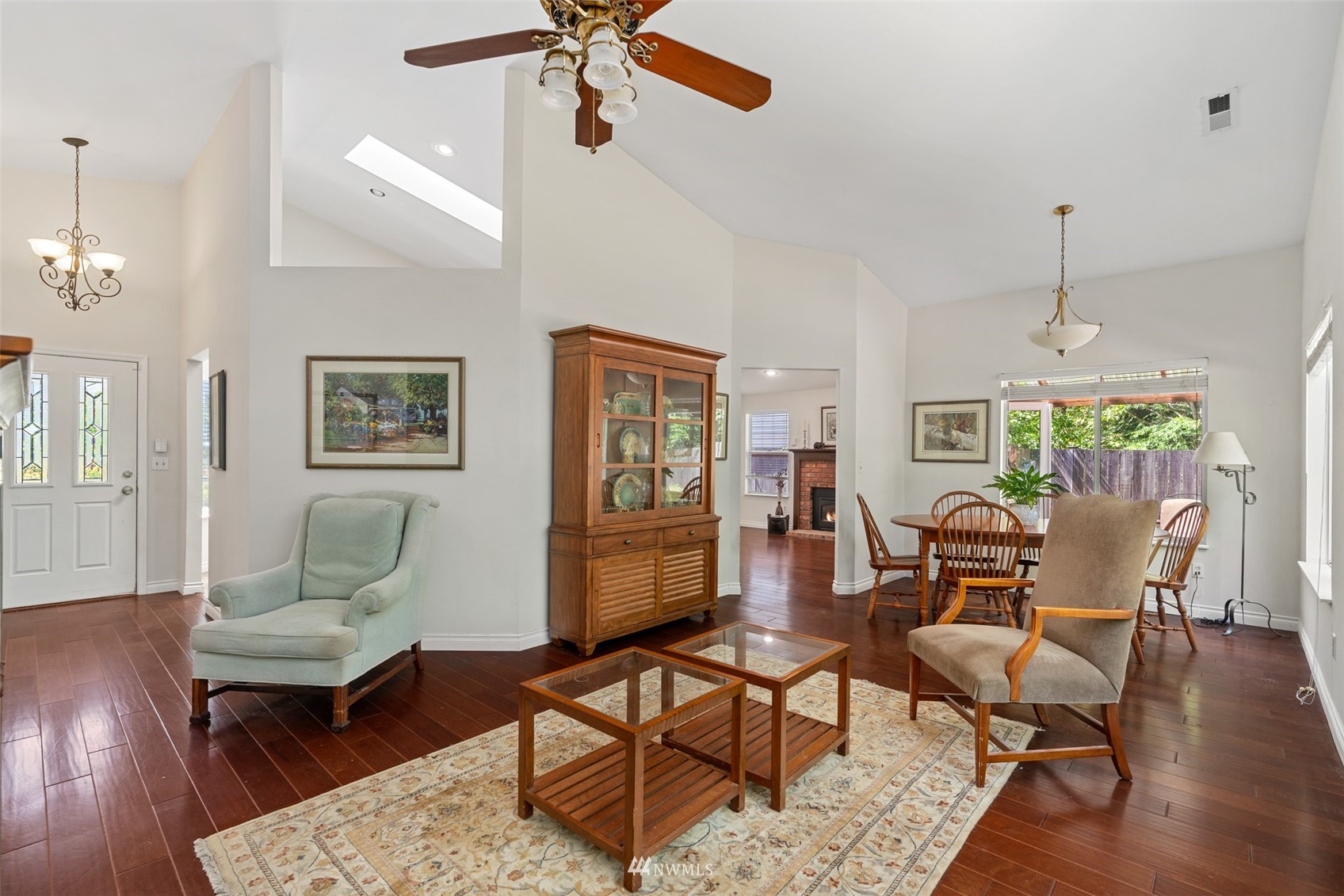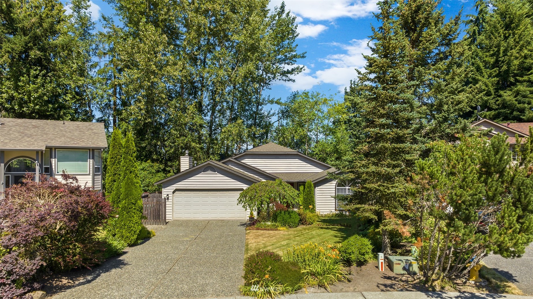 Located in the Silver Firs community, this well designed home has a lot to offer. Spacious living, Vaulted ceilings and Skylights provide both accommodation for larger gatherings and natural light throughout the home. Open Kitchen with eating space, Stainless appliances and newer cabinets. Family room with gas fireplace connects to the covered patio for year round enjoyment. Large primary bedroom with hardwood floors, double vanity en-suite and Walk-in Closet. Long driveway and attached two car garage provides plenty of parking space. Fully fenced yard backed against mature trees allows for additional privacy and creates a peaceful setting. Close to parks and nearby walking trails.