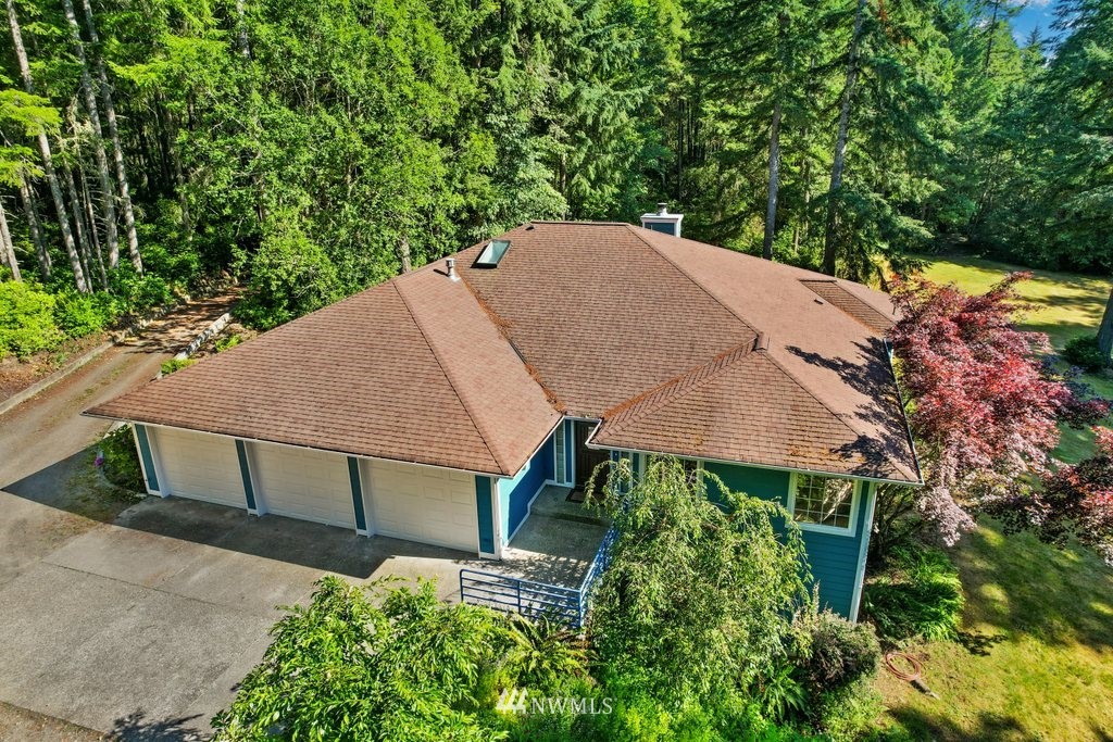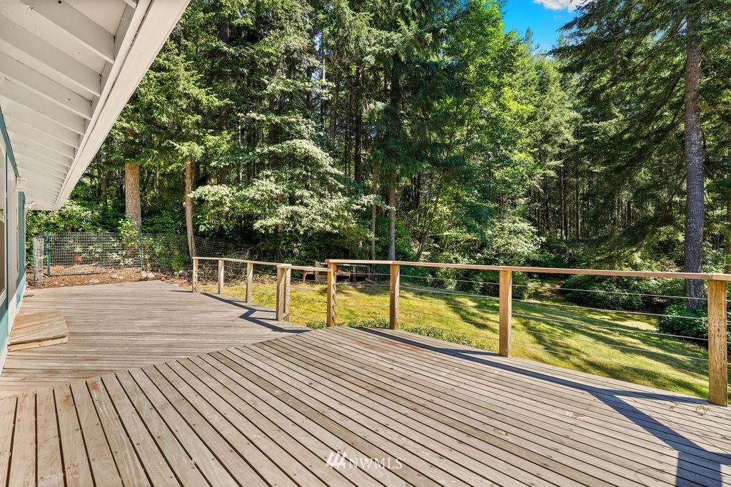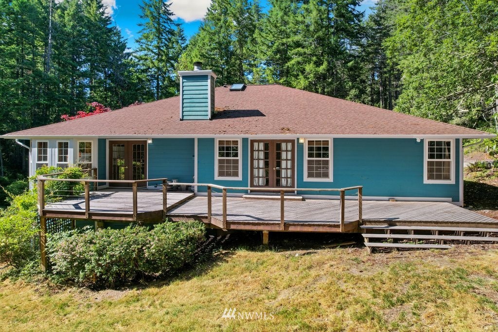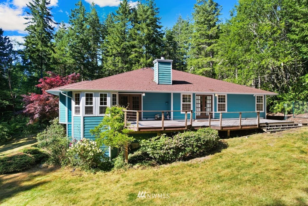 Welcome to this 3 bed, 2 bath home on nearly 2.5 acres. Perfect location near Klahowya Secondary School, and minutes to Bangor, freeway, and easy access to Seattle Ferry and PSNS. Home lives in one level, w/3 car garage. On entry you are greeted with a unique foyer w/rounded walls. A large living room sits at the front of the house and leads back to the open concept kitchen and family room area, with a breakfast bar and breakfast nook. Down the hall are 2 generous sized guest rooms, and the primary suite with its own en-suite. Hardwood floors were just refinished and most carpets replaced. Large entertaining deck overlooking property. Around back there is access to the unfinished basement…Shop? Storage? Finish? Don’t miss this beauty!