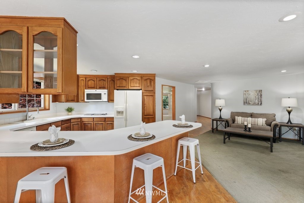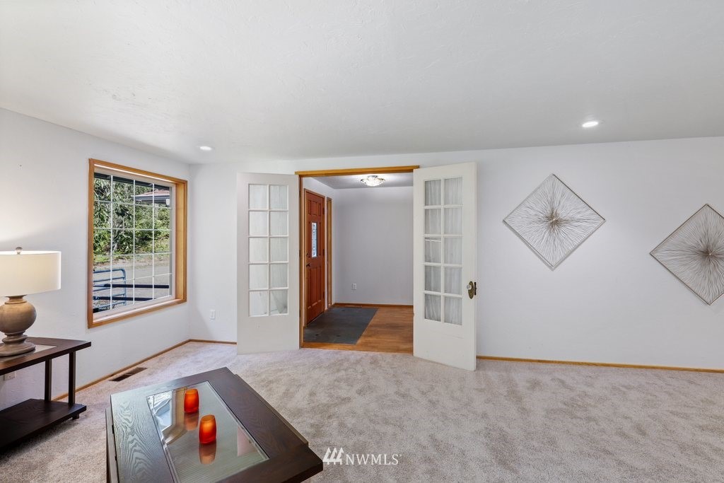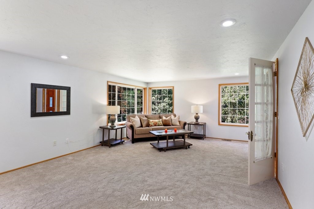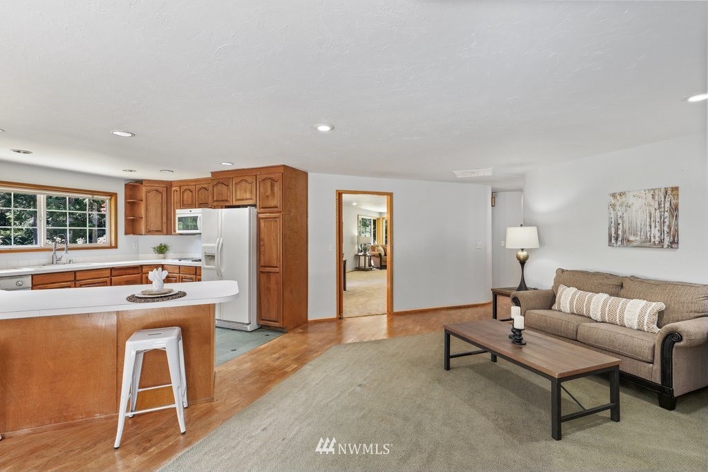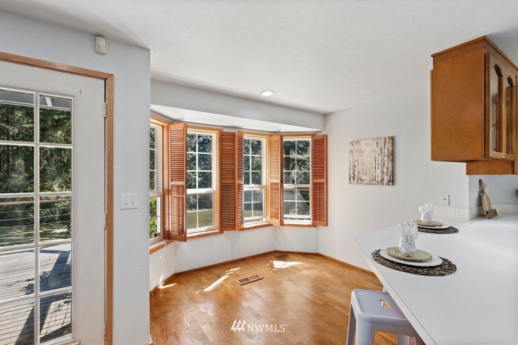 Welcome to this 3 bed, 2 bath home on nearly 2.5 acres. Perfect location near Klahowya Secondary School, and minutes to Bangor, freeway, and easy access to Seattle Ferry and PSNS. Home lives in one level, w/3 car garage. On entry you are greeted with a unique foyer w/rounded walls. A large living room sits at the front of the house and leads back to the open concept kitchen and family room area, with a breakfast bar and breakfast nook. Down the hall are 2 generous sized guest rooms, and the primary suite with its own en-suite. Hardwood floors were just refinished and most carpets replaced. Large entertaining deck overlooking property. Around back there is access to the unfinished basement…Shop? Storage? Finish? Don’t miss this beauty!